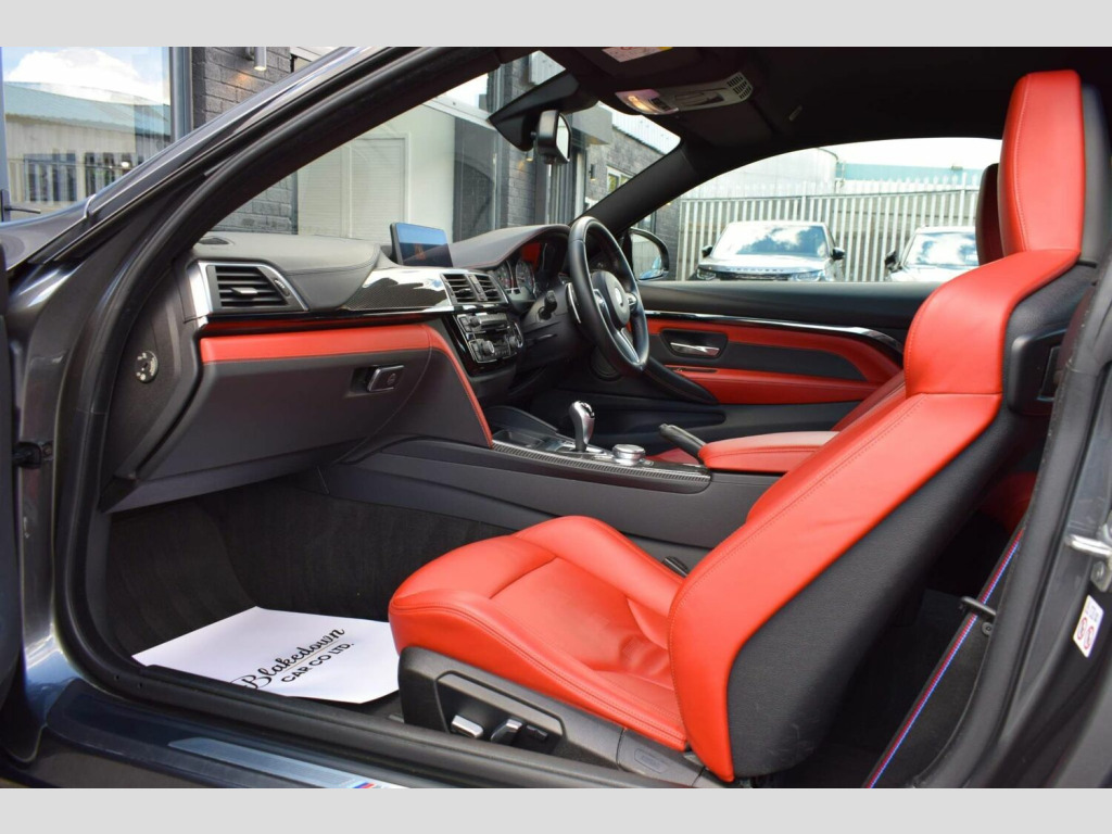 February 2018 BMW M4 3.0 BiTurbo Competition DCT finished in sought after Metallic Mineral Grey with full Sakhir Orange Merino Leather interior. Just 22850 miles covered and supported by BMW service history including running in service stored in the iDrive. Excellent spec with a long list of sought after optional extras to include: Loudspeaker System - Harman/Kardon, Adaptive LED Headlights with High-Beam Assistant, Active Security Package, Advanced Parking Package, Comfort Access with Smart Opener, Lane Change Warning System, Interior Trim Finisher - Carbon Fibre with Black Chrome Finisher, Driving Assistant, Reversing Assist Camera, High-Beam Assistant and Full Merino Leather - Sakhir Orange. Presented in superb condition inside and out and supplied with two keys. This car has been through our usual strict pre delivery inspection process to ensure all consumables are checked and in excellent order with plenty of life. Other equipment includes: 20in Alloy Wheels - M Light Star-Spoke Style 666M - Forged, Exterior Mirrors - Electrically Folding with Anti Dazzle, Exterior Trim - High Gloss Shadowline, Heat Protection Glazing with Green Tint, M Sports Exhaust Finished with Black Chrome Tailpipe Finishers, Windscreen Washer Jets - Heated, Air Conditioning - Automatic - Dual Zone, Automatically Dimming Rear View Mirror, Floor Mats - Velour, Lumbar Support, Heated Seats, Professional Navigation and Media, Rain Sensor with Automatic Headlight Activation, Electric Seats, Start-Stop Button with Comfort Go Keyless Engine Start, Active M Differential, Adaptive M Suspension and more.