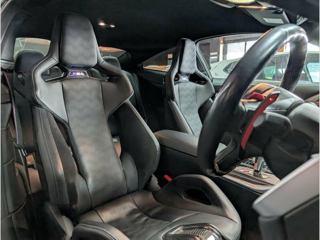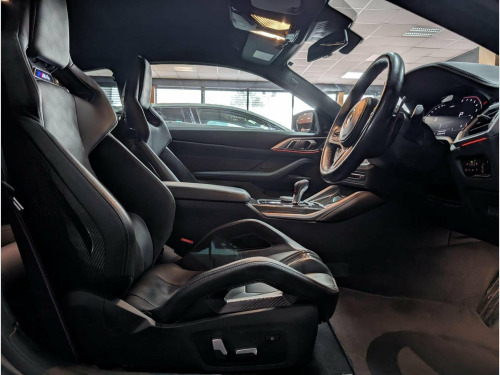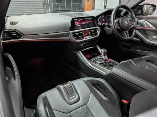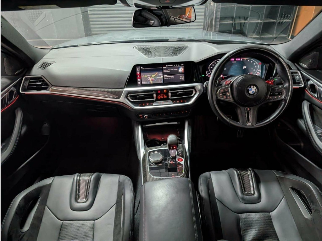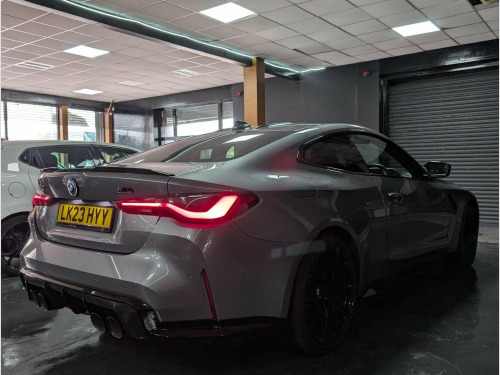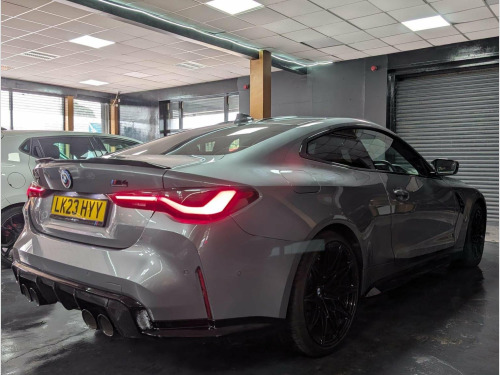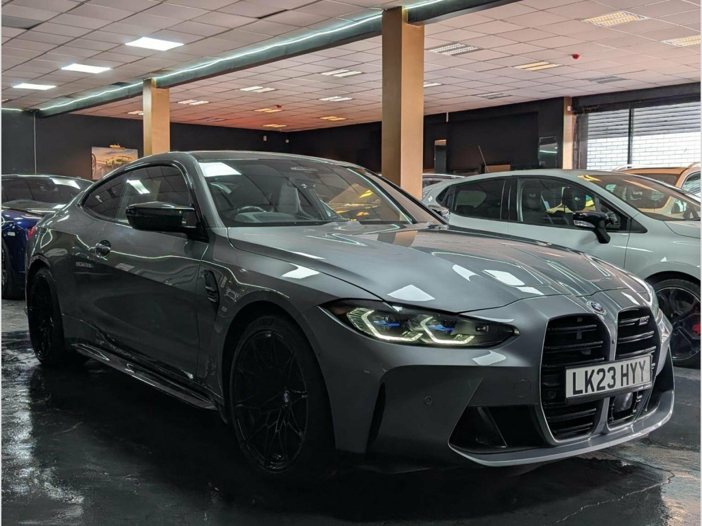 ( Fitted with bmw Teletrac tracker )With only one previous owner and a full dealership service history, this 2023 BMW M4 Competition BiTurbo is a superb example of this performance vehicle. Featuring a 3.0L petrol engine and four-wheel drive, this Euro 6 emission class vehicle comes with a 3-month warranty for your peace of mind. The last service was completed on 16th July 2024 at 13,530 miles, and a clear vehicle history check provides additional reassurance. This M4 is equipped with the Ultimate Package, including adaptive cruise control, LED and laser headlights, and keyless entry. Parking is made easy with 360-degree cameras and front and rear sensors. Inside, youll find M Carbon bucket seats with memory function and a heated steering wheel for added comfort. The Connected Package Professional integrates Android Auto and Apple CarPlay. This particular model stands out with its low insurance group, potentially saving you money on premiums. The large boot space offers practicality, setting it apart from other sports coupes. Furthermore, its impressive acceleration, achieving 0-62mph in just 3.5 seconds, demonstrates its superior performance capabilities. HPI CLEAR... A £90 admin fee applies to all transactions**WE ACCEPT MOST MAJOR BANK CARDS** LOW RATE FINANCE AVAILABLE…VIEWING STRICTLY BY APPOINTMENT ONLY...PLEASE CALL TO ENQUIRE AS THERE MAY BE A DELAY IN ANSWERING EMAIL ENQUIRIES