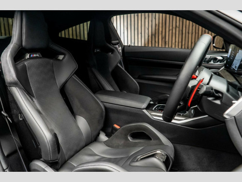 This 2025 BMW M4 BiTurbo Competition is a truly exceptional example, having been cherished by just one owner from new and boasting remarkably low mileage for its age, with only 2126 miles on the clock. Powered by a potent 3.0 litre petrol engine and featuring a dynamic four wheel drive system, this Euro 6 compliant M4 delivers exhilarating performance. Inside, you'll find supportive M Carbon Bucket Seats with memory function, complemented by striking Carbon Fibre interior trim and a heated steering wheel for those cooler days. The M Carbon Exterior Styling adds a distinctive visual flair, while the Technology Package includes advanced LED headlights and convenient keyless entry.This M4 Competition stands out from similar vehicles thanks to its impressive acceleration, achieving 0-62mph in a mere 3.5 seconds, showcasing its sporting prowess. Furthermore, its low CO2 emissions are noteworthy for a car of this calibre, and it benefits from a low insurance group, making it more accessible to a wider range of drivers. Practicality is also a strong point, with generous boot space offering ample room for your luggage.. 19in Front - 20in Rear Alloy Wheels - M Double Spoke - 826 - Forged - Jet Black with Mixed Tyres, Active Guard, Active M Differential, Adaptive M Suspension, Air Conditioning - Automatic with Three-Zone, Airbags, Alarm System, Ambient Lighting, Armrest - Rear Centre with Two Cupholders, Armrests, Automatic Start-Stop Button, BMW ConnectedDrive Online Services, BMW Emergency Call, BMW Live Cockpit Professional with Head-Up Display, BMW TeleServices, Battery in Luggage Compartment, Bumper System - Front and Rear, Centre Lock Switch, Closing System with Central Locking, Condition Based Service, Connected Package Professional, Crash Sensor, Cruise Control including Speed Limiting Function - LIM Button, Cupholder, DAB Radio, DSC - Dynamic Stability Control Plus, Door Sill Strips, Double-Jointed Spring-Strut Front Axle, Driving Experience Switch, Electric Memory Seats, Electric Window, Electronic Differential Lock, Electronic Engine Immobiliser, Extended Storage, Exterior Items, Exterior Trim - Extended High Gloss Shadowline, Exterior Trim - High-Gloss Shadowline, Floor Mats - Velour, Folding Wing Mirrors with Auto-Dimming, Front Heated Seats, Front Lumbar Support, Galvanic Controls, Glove Compartment - Illuminated, Harman Kardon Surround Audio Sound System, Headlight Beam-Throw Control, Heat Protection - Sun Protection Glazing, Interior Lighting, Interior Trim - Aluminium Rhombicle Anthracite, LED Rear Lights, Language Version English, Locking Wheel Bolts, Luggage Compartment Lights, M Drive, M Drive Professional, M Headliner - Anthracite, M Sport Differential, M Sport Seat Belts, M Sport Seats, M Steering Wheel, Model Logo - Rear Right M4 Competition Inscription, Multifunction for Steering Wheel, Oil Sensor For Level and Grade, Parking Assistant, Parking Brake - Electromechanical, Personal eSim, Power Socket 12v, Power Sockets, Rear Backrest - Foldable and Dividable by 40-20-40, Rear-View Mirror with Auto-Dimming, Reversing Light, Runflat Indicator, Safety Battery Terminal Clamp, Shifting Point Display, Smartphone Integration, Steering Column Adjustment, Sun Protection Glass, Sun Visors with Ticket Holder and Illuminated Vanity Mirror, Third Brake Light, Through-Loading System, Tool Kit Located in Luggage Compartment, Tyre Pressure Sensors, Tyre Repair Kit, Variable Sport Steering, Warning Triangle, Washer Jets - Heated, Welcome Light, Wireless Charging Tray, M Carbon Bucket Seats, Technology Package, Interior Trim - Carbon Fibre, Steering Wheel - Heated, High-Beam Assistant, Full Paint Protection Film, M Carbon Exterior Styling.