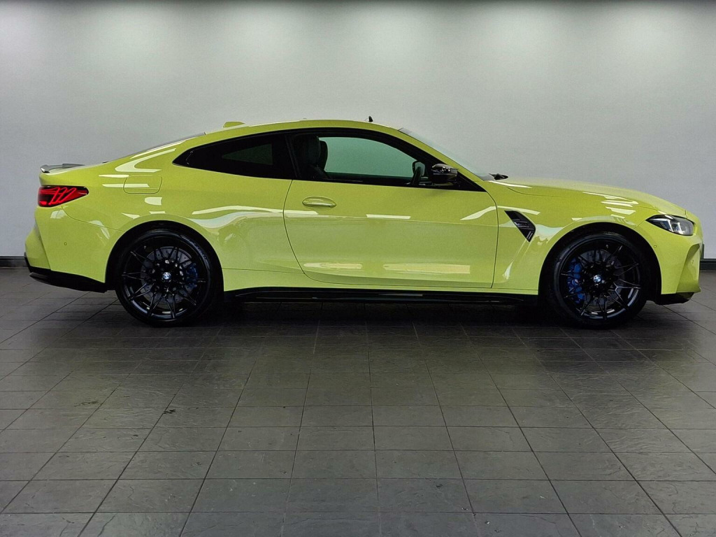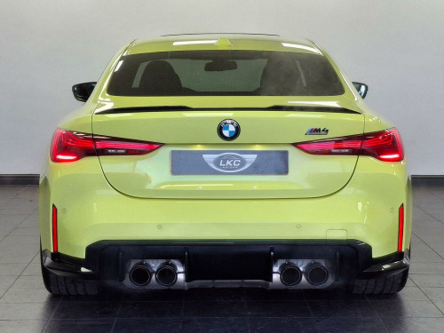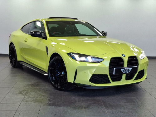 What a Colour and Fantastic Specification***1 Owner***Balance of Manufacturers Warranty***Electric Glass Sunroof***Heated Steering Wheel***Technology Pack***20 Alloys***Privacy Glass***This 2025 BMW M4 BiTurbo Competition is a remarkable example, having had only one owner from new. This exceptional four wheel drive coupe boasts a powerful 3.0 litre petrol engine, meeting Euro 6 emission standards. Inside, youll find a wealth of technology, including LED headlights and keyless entry, all part of the Technology Package. Comfort is further enhanced by an electric glass sunroof, automatic three zone air conditioning, and electric memory seats, ensuring a personalised driving experience for everyone. The M4 Competition offers a truly exhilarating drive, highlighted by its impressive 0-62mph acceleration in just 3.5 seconds, demonstrating its superior performance compared to other vehicles in its class. This model also benefits from a low insurance group, making it an accessible choice. Practicality is not overlooked, with a large boot space providing ample room for luggage or shopping. The heated steering wheel adds an extra touch of comfort during colder journeys.