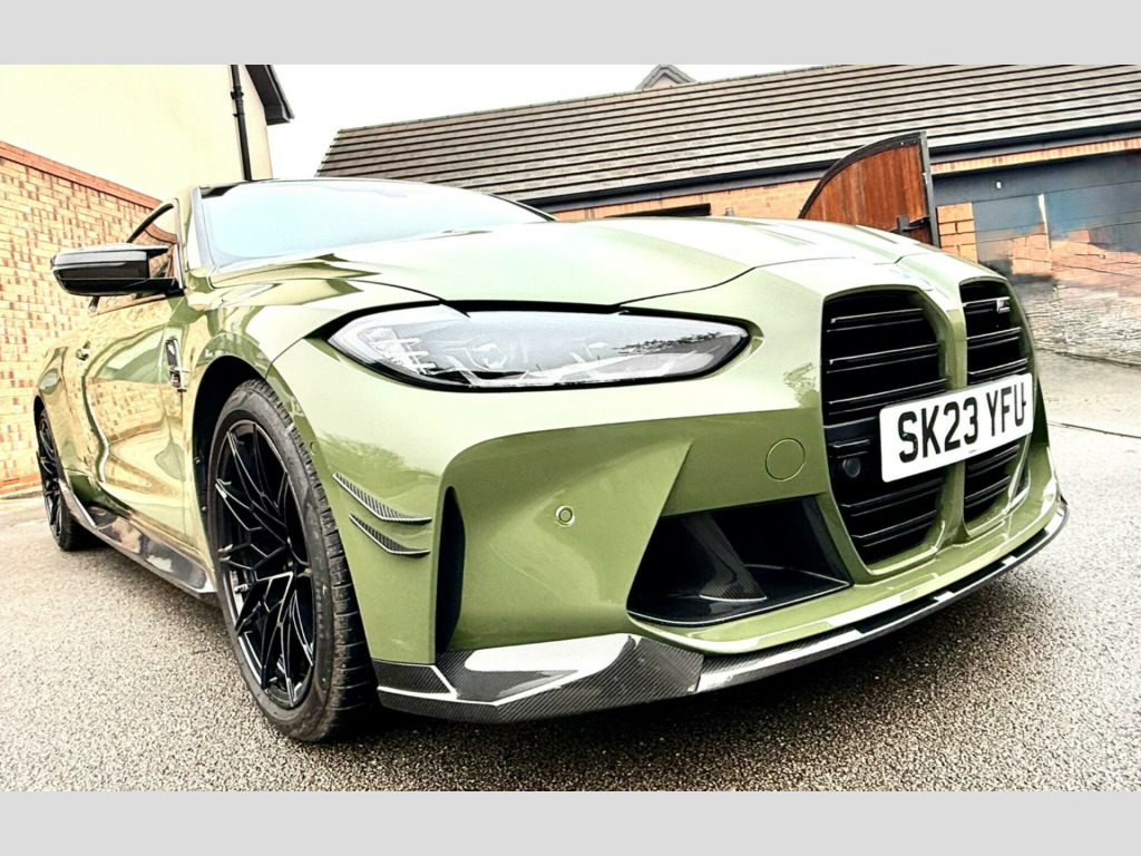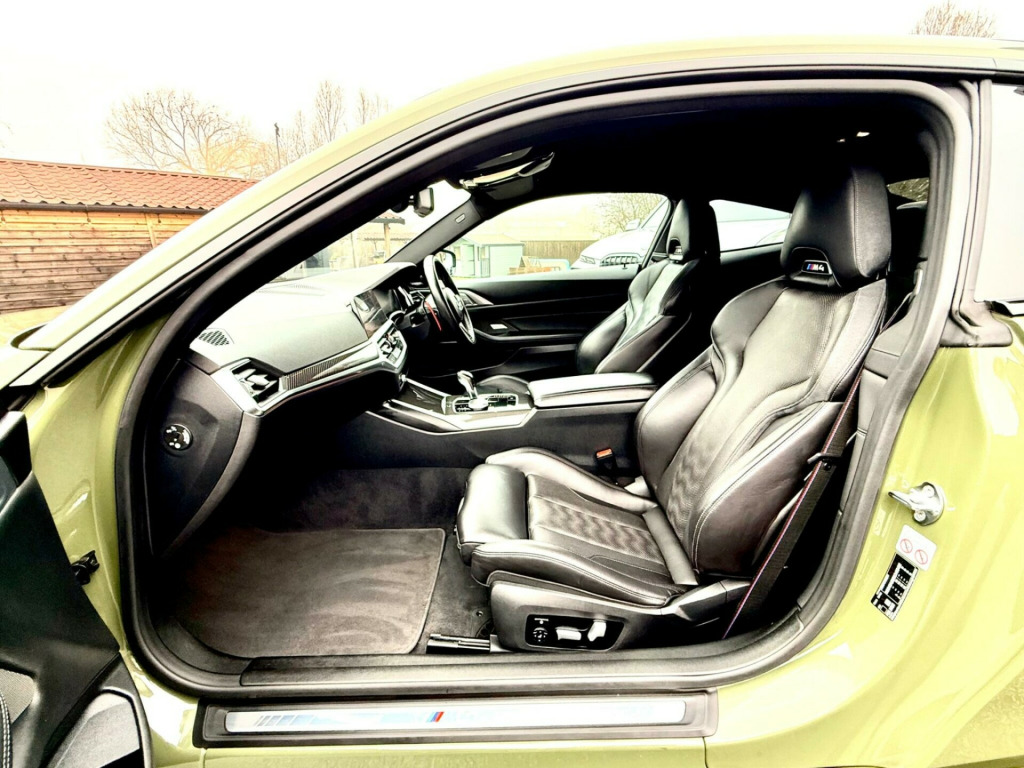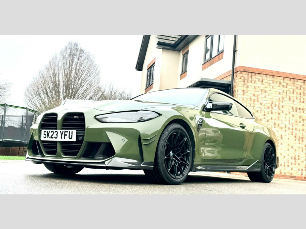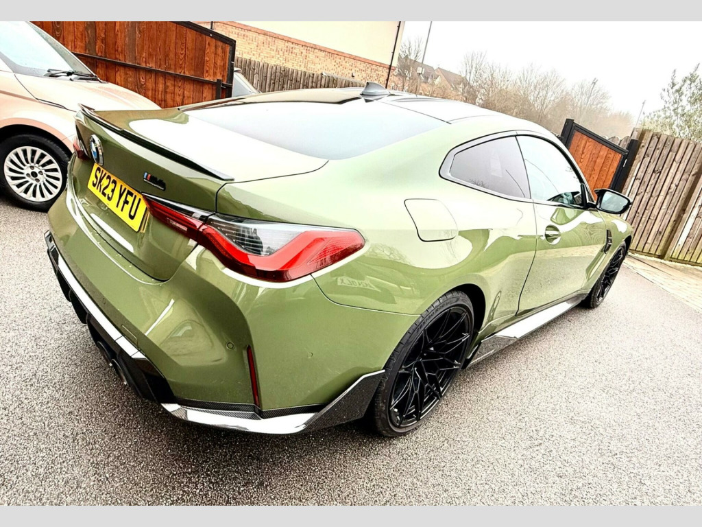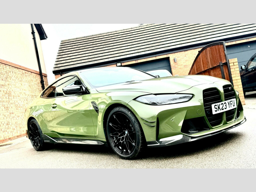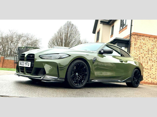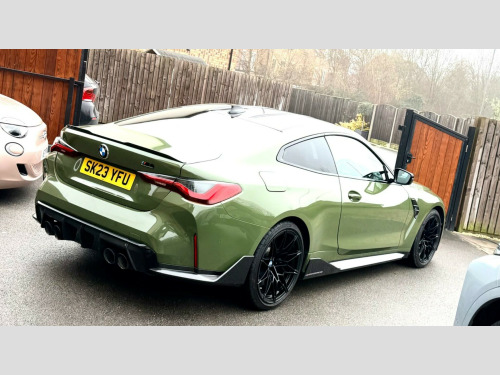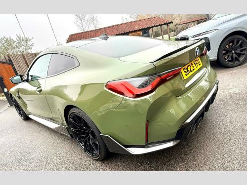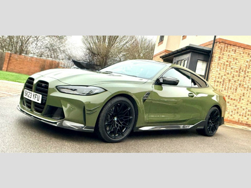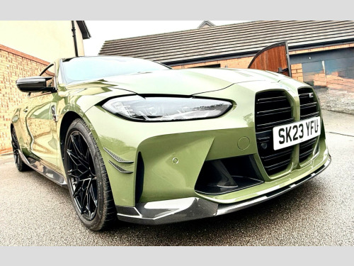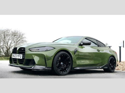 This 2023 BMW M4 BiTurbo Competition is presented with a clear vehicle history check, offering peace of mind for its next owner. This striking M4 features a powerful 3.0 litre petrol engine paired with a four wheel drive drivetrain, ensuring dynamic performance in all conditions. Inside, you'll find a wealth of comfort and technology, including a heated steering wheel, a Head Up Display to keep your eyes on the road, and electric memory seats for personalised driving positions. The premium branded sound system is provided by Harman Kardon, delivering an immersive audio experience.The M4 Competition stands out with its impressive acceleration, reaching 0-62mph in just 3.5 seconds, a figure that highlights its superior performance compared to many other vehicles in its class. Furthermore, this model benefits from a low insurance group, making it a more economical choice to own and run. Practicality is also a strong point, with generous boot space designed to accommodate your needs. This Euro 6 compliant vehicle combines exhilarating driving dynamics with everyday usability. In mfort package, steering wheel - heated, m brakes with black calipers, extended merino leather - black, parking assistant plus, m carbon exterior styling, m carbon pack, 19in front - 20in rear alloy wheels - m double spoke - 826 - forged - jet black with mixed tyres, acoustic glass, active guard plus, adaptive m suspension, air conditioning - automatic with three-zone, airbags, alarm system, ambient lighting, armrests, automatic start-stop button, bmw connecteddrive online services, bmw emblem on engine compartment lid and tailgate, bmw emergency call, bmw individual lights - shadowline, bmw kidney - frameless with horizontal double grille slates - black high-gloss with model badge, bmw live cockpit professional, bmw teleservices, battery in luggage compartment, bumper system - front and rear, centre armrest in rear - folding with 2 cup holders, centre lock switch, closing system with central locking, condition based service, connected package professional, crash sensor, cruise control including speed limiting function - lim button, cupholder, dab radio, dsc - dynamic stability control plus, door sill finishers with aluminium inserts and model inscriptions, door sill strips, double-jointed spring-strut front axle, driving assistant, driving experience switch, electric memory seats, electric window, electronic differential lock, electronic engine immobiliser, enhanced bluetooth and wireless charging, extended storage, exterior mirror caps and rear spoiler in high-gloss black, exterior trim - extended high gloss shadowline, exterior trim - high-gloss shadowline, floor mats - velour, folding wing mirrors with auto-dimming, follow-me-home function, front heated seats, front lumbar support, front and rear apron plastic in body colour, galvanic controls, glove compartment - illuminated, harman kardon surround audio sound system, head-up display, headlight beam-throw control, headlining - anthracite, heat protection - sun protection glazing, high-beam assistant, illuminated bow-type door handles - in body colour - drivers side with door lock, interior trim - black high gloss, interior trim - carbon fibre, led rear lights, language version english handbook, lower edges of bumpers - side sills - edge binding of diffuser and diffuser in black high-gloss, luggage compartment lights, m compound brakes with red high gloss, m drive, m drive professional, m seat belts, m sport differential, m sport seats, m steering wheel, model badges in black, model logo - rear right m4 competition inscription, multifunction for steering wheel, oil sensor for level and grade, parking assistant, parking brake - electromechanical, power socket 12v, power sockets, rear backrest - foldable and dividable by 40-20-40, rear-view mirror with auto-dimming, reversing light, roof aerial bulge and roof mouldings in black high-gloss, runflat indicator, safety battery terminal clamp, shifting point display, side impact protection, smartphone integration, steering column adjustment, strakes in front side panel - black matt-black high-gloss with model badge, sun protection glass, sun visors with ticket holder and illuminated vanity mirror, tailpipe finishers in black chrome, third brake light, through-loading system, tool kit located in luggage compartment, tyre pressure sensors, tyre repair kit, variable sport steering, warning triangle, washer jets - heated, welcome light, wifi hotspot