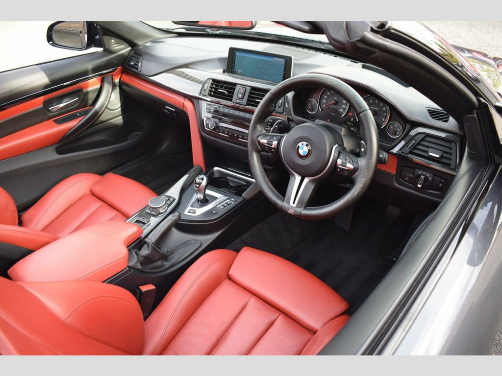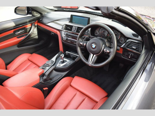 Rom Motors are delighted to present this stunning BMW M4 convertible for sale. Finished in beautiful Mineral Grey metallic, it's completed with upgraded Extended Sakhir Orange Interior amongst a host of fantastic optional extras. These include all important Convertible Comfort Pack for Heated Steering Wheel, Wind Deflector & Warm Air Scarf. Full Carbon Interior, Harman Kardon Surround Sound, Heads Up Display, Adaptive LED Headlights, Comfort Access, Front & Rear PDC with Reversing Camera, Speed Limit Display and more! Completed with excellent Full Service History! 12V Power Socket - Centre Console, 12V Power Socket - Passenger Footwell, 19in Alloy Wheels - M Light Double Spoke, 20GB Memory, ABS - Anti Lock Braking System, ASC - Automatic Stability Control, Active M Differential, Adaptive M Sport Suspension, Air Breather - Black High Gloss, Air Conditioning - Automatic with Two-Zo, Airbags - Driver, Airbags - Front Side, Airbags - Passenger, Airbags - Passenger Deactivation, Alarm - Thatcham Cat 1 and Immobiliser, Armrest - Front with Storage Compartment, Automatically Dimming Rear View Mirror, Auxiliary Input, BMW ConnectedDrive Online Services, BMW Emergency Call, BMW Professional Radio - Single CD and M, BMW TeleServices, Battery Safety Cut Off, Blu