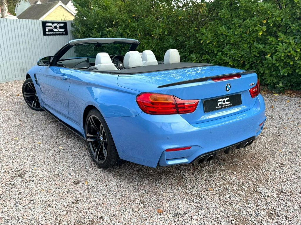 Peverel Car Company are delighted to offer this stunning BMW M4 3.0 Bi Turbo 431ps Convertible DCT Finished in stunning Yas Marina Blue with the contrasting Silverstone Dakota Leather Upholstery. This Stunning car has been further enhanced with the bespoke additions of 19 Inch M Sport Alloy Wheels finished in Gloss Black, Gloss Black M4 Performance Front Splitter, Gloss Black M Performance Style Upper Front Bumper Canards, Carbon Fibre Design M Performance Style Door Mirror Caps, Gloss Black M Performance Kidney Grilles, M Performance Side Skirts finished in Gloss Black, M4 Performance Rear Lip Spoiler finished in Gloss Black, Gloss Black Rear Bumper Lower Canards, Rear Diffuser finished in Gloss Black and M Sports Exhaust System. This powerhouse of a car is absolutely stunning and has been meticulously maintained by its previous owner. This BMW M4 comes with an impressive specification including; BMWs Satellite Navigation/DAB Media System with iDrive Control, Head Up Display, Power Folding Convertible Roof, Stow Away Wind Deflector, Electric Front Seats with Drivers Seat Memory and Electric Lumber and Side Bolster Adjust, Heated Front Seats, Heated Warm Air Collar, Heated Steering Wheel, Height Adjustable Front Drivers and Passenger Seats, DCT Gearbox, Reversing Rear View Camera with Front & Rear Parking Sensors with Park Assist, Automatic Lane Change Warning System, Cruise Control with Speed Limiter, Dual Zone Automatic Climate Control Air Conditioning, Bluetooth Telep Extended Storage, Speaker System - BMW Advanced, Adaptive LED Headlights with High-Beam A, 12V Power Socket - Centre Console, 12V Power Socket - Passenger Footwell, 19in Alloy Wheels - M Light Double Spoke, 20GB Memory, ABS - Anti Lock Braking System, ASC - Automatic Stability Control, Active M Differential, Adaptive M Sport Suspension, Air Breather - Black High Gloss, Air Conditioning - Automatic with Two-Zo, Airbags - Driver, Airbags - Front Side, Airbags - Passenger, Airbags - Passenger Deactivation, Alarm - Thatcham Cat 1 and Immobiliser, Armrest - Front with Storage Compartment, Automatically Dimming Rear View Mirror, Auxiliary Input, BMW ConnectedDrive Online Services, BMW Emergency Ca