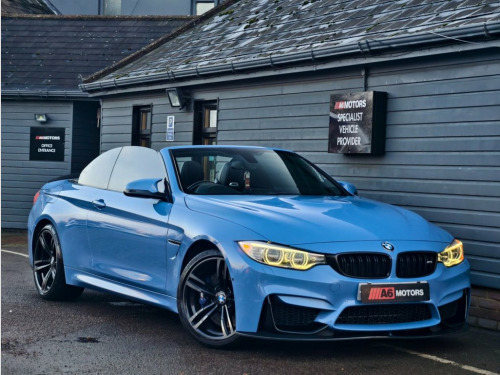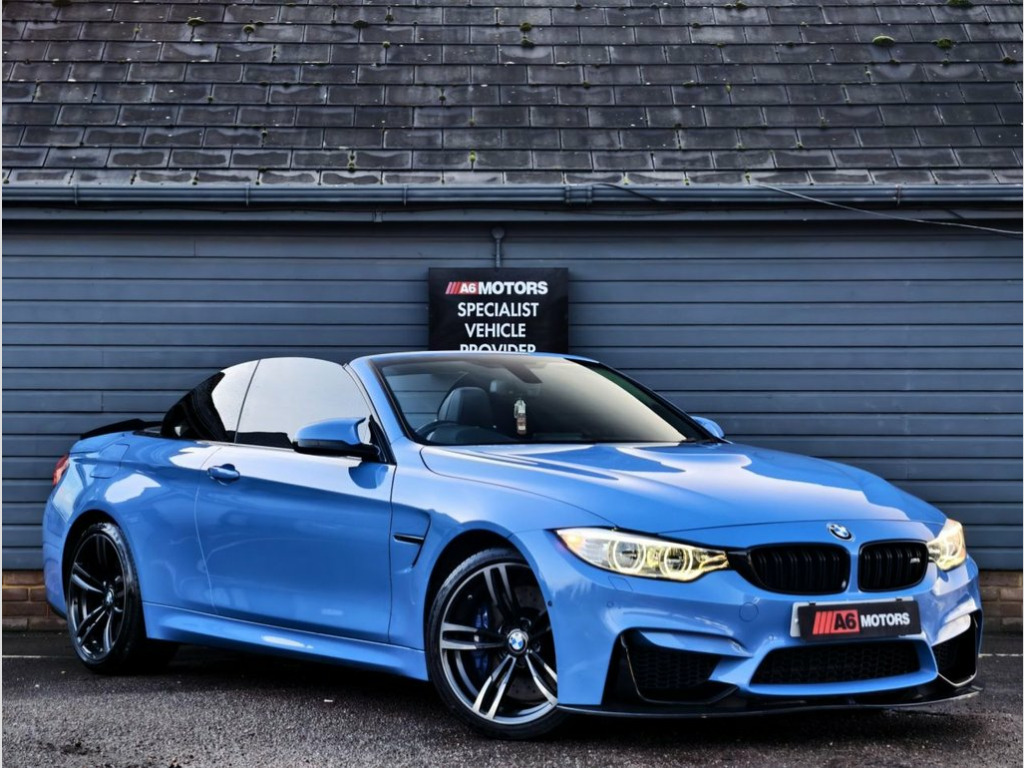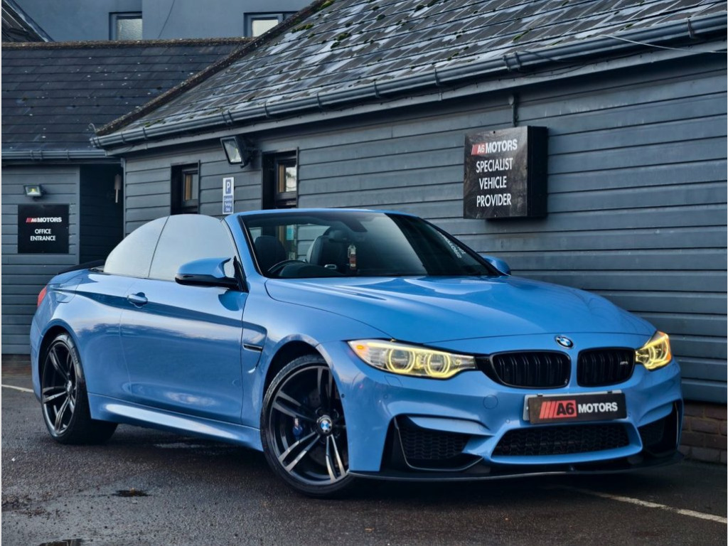 SAME DAY FINANCE AVAILABLE WITH £0 DEPOSIT. CALL OUR FINANCE TEAM FOR A QUOTATION TODAY. REQUEST A PERSONALISED VIDEO TODAY. STUNNING YAS MARINA BLUE BMW M4 CABRIOLET. GOOD OVERALL CONDITION. THIS LOVELY EXAMPLE IS SUPPLIED HPI CLEAR & WITH A NATIONWIDE WARRANTY. GOOD CONDITION THROUGH OUT. DRIVES WELL. 12V Power Socket - Centre Console, 12V Power Socket - Passenger Footwell, 19in Alloy Wheels - M Light Double Spoke, 20GB HDD Memory, ABS - Anti Lock Braking System, ASC - Automatic Stability Control, Active Carbon Microfilter, Active M Differential, Adaptive M Sport Suspension, Air Breather, Air Conditioning - Automatic with Two-Zo, Airbags - Driver, Airbags - Front Side, Airbags - Passenger, Airbags - Passenger Deactivation, Alarm System Thatcham 1 with Remote Cont, Ambient Light - Centre Console Storage C, Ambient Light - Front, Ambient Light - Rear, Armrest - Front and Rear Integrated into, Armrest - Front with Storage Compartment, Automatic Lock when Driving Away Selecta, Automatically D