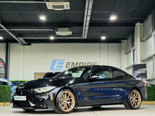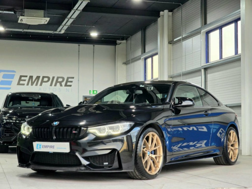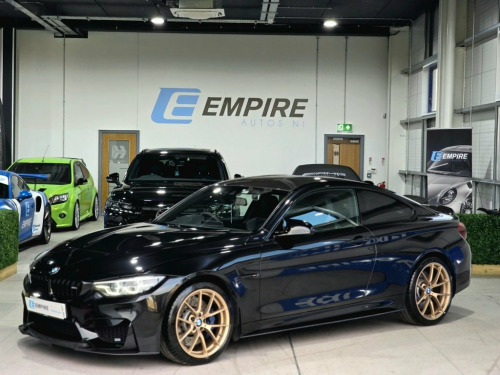 2018 BMW M4 CS Black Sapphire Metallic | 57,000 Miles | Properly Set Up Example This is a serious BMW M4 CS, finished in Black Sapphire Metallic (475) and sitting on the factory Gold Matt forged BMW M wheels (Style 763M) — the same rose-gold/gold finish seen on the M2 CS. The CS model represents one of BMW M's finest modern cars: lighter, sharper and more focused than the Competition, while remaining far more usable than a GTS. This particular example has been sensibly enhanced and professionally refined, not enthusiast-abused. Model Overview The M4 CS is powered by the CS-specific S55 twin-turbo engine producing 454bhp, paired with the M DCT gearbox and CS-tuned suspension and steering. Extensive use of carbon fibre reduces weight and lowers the centre of gravity, delivering a genuinely different driving experience to a standard M4. Factory CS Specification Carbon fibre bonnet, roof and boot lid CS-specific aero package Heads-Up Display Reversing camera Icon Adaptive LED headlights M DCT transmission Lightweight construction throughout Service History Full BMW service history Most recent service completed by Swift Performance (England) A respected BMW M specialist known for correct, long-term solutions rather than shortcuts. Swift Performance Work & Upgrades This is where the car stands apart. All enhancements have been carried out with reliability, geometry and drivability in mind — not dyno numbers or social media trends. Crank Hub pinned Essential pre 12V Power Socket in Front Centre Console, 19in Front -20in Rear Alloy Wheels - M L, 8 Programmable Favourite Buttons, Active M Differential, Adaptive M Suspension, Aerodynamic Carbon-Fibre Reinforced Plas, Air Conditioning - Automatic - Single Zo, Airbags - Driver and Passenger, Alarm System - Thatcham 1 with Remote Co, Antenna, Anthracite Alcantara Interior Trim Inclu, BMW ConnectedDrive Online Services, BMW Emergency Call, BMW Organic Light, BMW Professional Radio with Single CD Pl, BMW TeleServices, Battery Safety Cut Off, Brake Pad Wear Indicator - Front and Rea, Bumper System - Front and Rear, CS Designation on the Right Side of the , CS Exclusive High Performance Tyres - Mi, Carbon-Fib