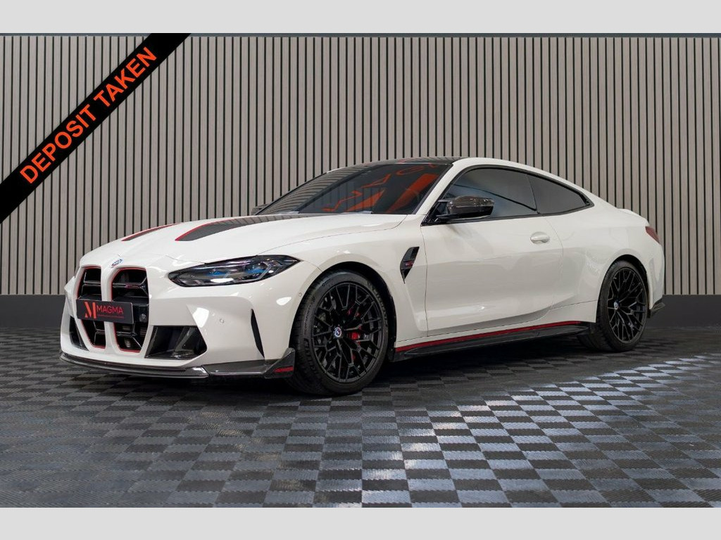 Introducing one of the finest cars we've had the pleasure to stock, our BMW M4 CSL finished in the beautiful Alpine White. The CSL certainly sits at the pinnacle of BMW performance and road driving experience, in addition to being a track ready monster. Being just 1 of 100 UK cars and 1000 globally it's a very rare example. the CSL is a big step up from its standard Variant With an Extra 40 horsepower over the standard M4 competition now sitting at 550BHP and being 100KG lighter than its standard model, some of that weight saving comes from the new titanium backbox for the exhaust which saves 4.3kg over the standard setup. It's louder too, with different modes to adjust the volume There are a lot of upgrades to the suspension on the BMW CSL over the standard M4, It sits 8mm lower to the ground and it gets adaptive dampers as standard. Having just 1 owner from new, this car has been meticulously maintained it has also benefited from having a full body PPF from delivery. Despite the CSL coming with a wealth of standard factory options, this car does benefit from some additional factory specification, such as the BMW M 50 year anniversary badges, 19in Front -20in Rear Alloy Wheels - M Light - Star Spoke - 827M, the M carbon bucket seat comfort pack which allows for electric adjustment and heating, as well as the Ultimate road pack which consists of features such as BMW Head-Up Display, Driving Assistant pack, Parking Assistant, Folding Wing Mirrors with automatic dimming, Wirele 19in Front -20in Rear Alloy Wheels - M L, Adaptive M Suspension, Air Conditioning - Automatic - Dual Zone, Airbags, Alarm System, Ambient Lighting, Armrests, Automatic Start-Stop Button, BMW ConnectedDrive Online Services, BMW Emergency Call, BMW Live Cockpit Professional, BMW TeleServices, Battery in Luggage Compartment, Bumper System - Front and Rear, CSL Specfic Engine Mounting, Centre Lock Switch, Closing System with Central Locking, Condition Based Service, Connected Package Professional, Crash Sensor, Cruise Control with Braking Function, DAB Radio, DSC - Dynamic Stability Control Plus, Door Sill Strips, Double-Jointed Spring-Strut Front Axle, Driving Experience Switch, EPS - Electric