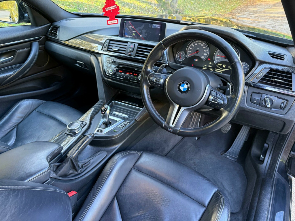 This 2014 BMW M4 BiTurbo is presented with a clear vehicle history check, offering peace of mind for its next owner. Under the bonnet, a powerful 3.0 litre petrol engine delivers exhilarating performance, meeting the Euro 6 emission standards. This M4 comes equipped with a suite of advanced features, including Adaptive Headlights for improved visibility, Internet and Online Entertainment for connected journeys, and a Head Up Display to keep essential information in your line of sight. The Bluetooth Hands Free Facility ensures seamless connectivity for calls and audio streaming.The impressive acceleration of this M4, achieving 0-62mph in just 4.1 seconds, clearly sets it apart from many other vehicles in its class. Furthermore, its surprisingly large boot space provides practicality for everyday use, a notable advantage over its competitors. The M4 also benefits from a low insurance group, making it a more accessible performance car for many drivers. ad-up display, interior trim - carbon fibre, adaptive headlights, online entertainment, sun protection glazing, high-beam assistant, armrest - front with sliding adjustment, internet, full merino leather - black, speaker system - bmw advanced, 19in alloy wheels - m light double spoke style - 437m - jet black, interior trim finisher - black chrome, extended merino leather - black, 12v power socket in front centre console and passenger footwell, 19in alloy wheels - m light double spoke style - 437m - ferric grey, 20gb memory, abs - anti lock braking system, asc - automatic stability control, air breather - body colour, air conditioning - automatic - dual zone, airbags - curtain, airbags - driver, airbags - front side, airbags - passenger, airbags - passenger deactivation, alarm - thatcham cat 1 and immobiliser, armrest - front and rear integrated into door trim, armrest - front with storage compartment, automatically dimming rear view mirror, auxiliary input, bmw connecteddrive online services, bmw emergency call, bmw mobility system, bmw professional radio - single cd and mp3, bmw remote services, bmw teleservices, battery safety cut off, bluetooth hands free facility, bottle holders - front door storage compartments, brake assist, brake drying, brake pad wear indicator, bumpers - body colour, cbc - cornering brake control, central locking - remote, comfort go keyless start, crash sensor, cruise control with brake function, cup holders x2, dab - digital radio, dbc - dynamic brake control, dsc - dynamic stability control plus, dtc - dynamic traction control, daytime driving lights, door handles - body colour, door mirrors - body coloured housing, door sill finishers - m designation, dynamic brake lights, electric windows - front open and close fingertip control, enhanced bluetooth telephone preparation with usb audio interface and voice control, exhaust tailpipes - quad - chrome, extended lighting, exterior mirrors - automatically dimming - folding, exterior trim - high gloss shadowline, first aid kit, floor mats - velour, follow me home headlight function, full black panel display, gear knob - leather, grab handles - in roof lining x4, handbrake - leather, head restraints - intergrated - rear, headlight - beam-throw control - automatic levelling, headlight wash, headlights - auto on, headlining - m anthracite, high level third brake light, hill start assistant, isofix - rear, information plus, interior lighting - front and rear centre, interior trim - blue shadow, interior trim finisher - black high gloss, kidney grille - chrome with double black vertical slats, led tail lights, lights-on audio warning, luggage compartment - lashing eyes, luggage compartment - light, lumbar support - driver and front passenger, m aerodynamic bodystyling, m dynamic mode, m instrument cluster, m rear spoiler, media package - bmw professional, navigation system - bmw professional multimedia, non smoker package, obc - on board computer, optimum shift indicator, pdc - park distance control - front, pdc - park distance control - rear, personal profile, rain sensor with automatic headlight activation, real time traffic information, seats - front electric adjustment with driver memory, seats - front heated, seats - illuminated m logo, servotronic, shark fin aerial, side impact protection, speakers x6, steering column - reach and rake manual adjustment, steering wheel - multifunction controls, storage compartment - behind rear seat backrest, sun visors with illuminated vanity mirrors and ticket pocket, suspension - adaptive - m sport, tmc - traffic information, tpws - tyre pressure warning system, toolkit, usb connection, voice control - audio, warning triangle, welcome light, windows - heated protection glazing with green tint, windscreen washer jets - heated, windscreen with grey shade band, xenon headlights, idrive controller - 8 favourite buttons