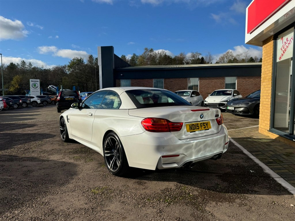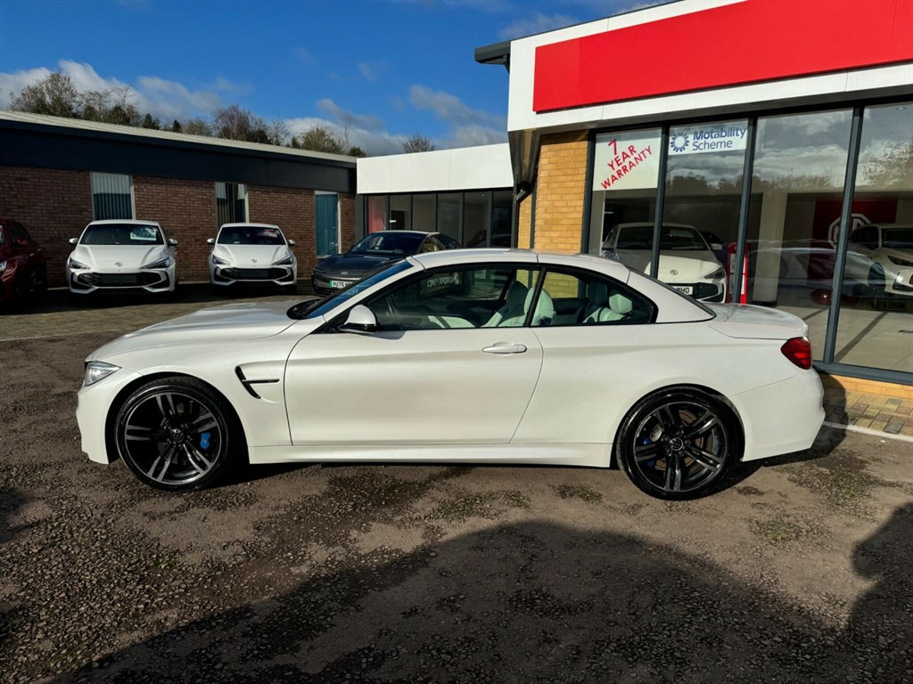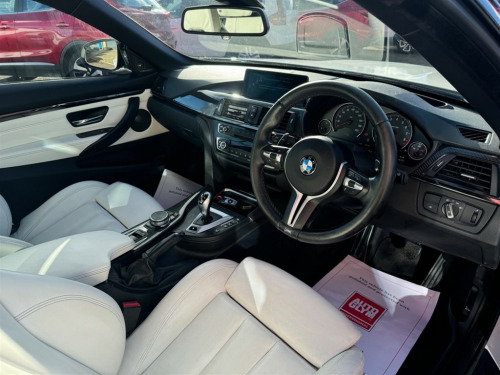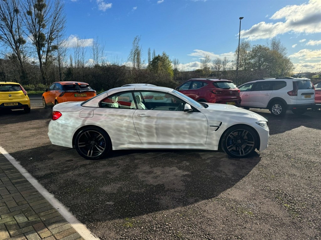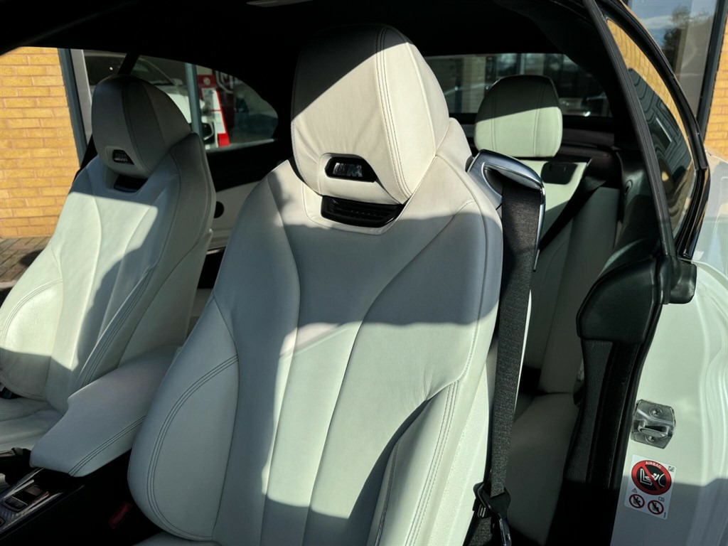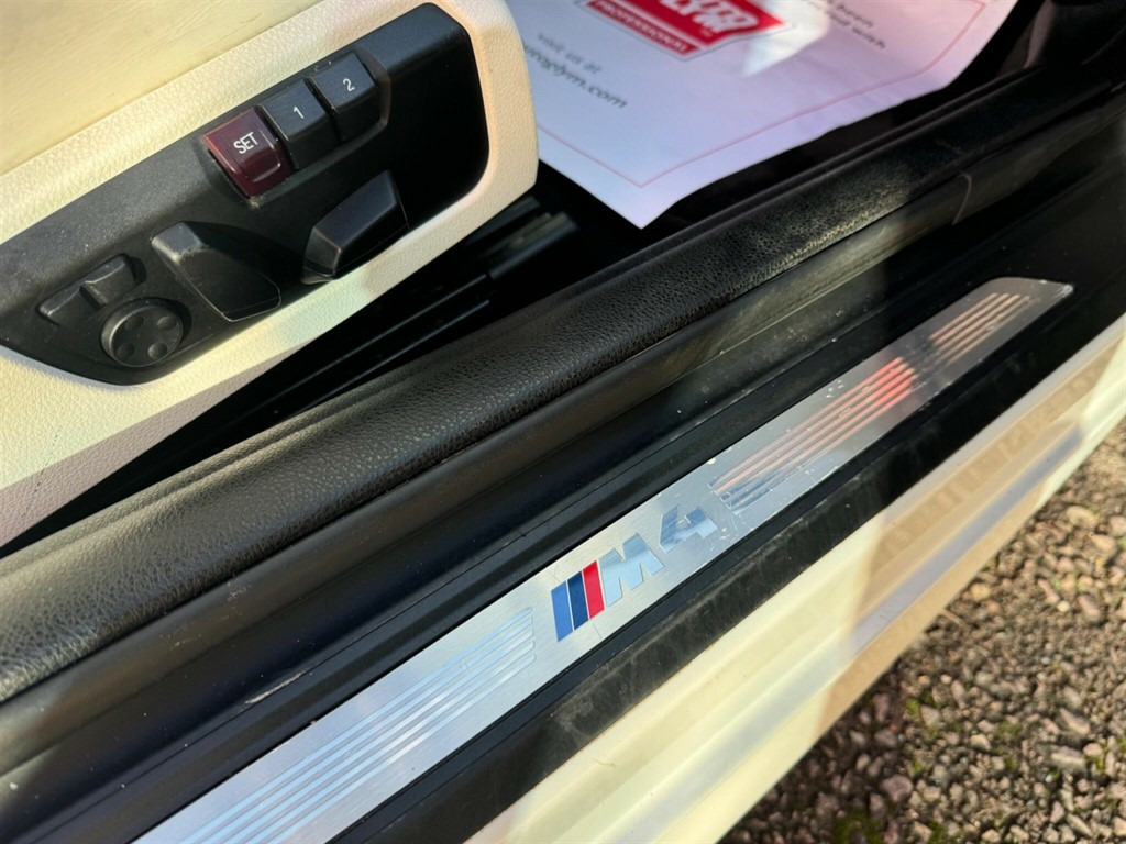 This stunning BMW M4 is not your typical vehicle. the stunning looks paired with the jaw dropping performance makes this vehicle in a league of its own. This is an unmodified example as the previous owner thought it was perfect how it left the factory, the beautiful pearlescent white paint and white leather interior really helps separate this model from other examples. This vehicle will have a fresh service, 12 months MOT and all 4 wheels refurbished before sale, as well as 3 months warranty for peace of mind. This BMW M4 offers exceptional value with its remarkably low mileage of just 49,592 miles for its age. Powered by a potent 3.0L Petrol engine and meeting Euro 6 emission standards, this M4 combines performance with efficiency. Inside, you'll find a host of desirable features designed to enhance your driving experience, including a Head Up Display for convenient information access, and front and rear Park Distance Control to assist with parking manoeuvres. Enjoy your journeys with the premium Harman Kardon speaker system and maintain perfect comfort with the automatic two zone climate control. The performance of this M4 is truly impressive, achieving 0-62mph in a swift 4.4 seconds, demonstrating its dynamic capabilities. This acceleration figure highlights how this vehicle outperforms many others in its class. This combination of exhilarating performance, advanced technology, and sensible ownership considerations makes this BMW M4 a compelling choice. 12V Power Socket - Centre Console,12V Power Socket - Passenger Footwell,19in Alloy Wheels - M Light Double Spoke Style - 437M - Ferric Grey,20GB Memory,ABS - Anti Lock Braking System,ASC - Automatic Stability Control,Active M Differential,Adaptive M Sport Suspension,Air Breather - Black High Gloss,Air Conditioning - Automatic with Two-Zone Control,Airbags - Driver,Airbags - Front Side,Airbags - Passenger,Airbags - Passenger Deactivation,Alarm - Thatcham Cat 1 and Immobiliser,Armrest - Front with Storage Compartment,Automatically Dimming Rear View Mirror,Auxiliary Input,BMW ConnectedDrive Online Services,BMW Emergency Call,BMW Professional Radio - Single CD and MP3,BMW TeleServices,Battery Safety Cut Off,Bluetooth Hands Free Facility,Bottle Holders - Front Door Storage Compartments,Brake Assist,Brake Drying,Brake Pad Wear Indicator,Bumpers - Body Colour,CBC - Cornering Brake Control,Central Locking - Remote,Child Seat ISOFIX Attachment - Rear,Comfort Go Keyless Engine Start,Crash Sensor - Activating Central Locking-Hazard Warning Lights-Fuel Cut Off,Cruise Control with Brake Function,Cup Holders - Front,DAB Digital Radio,DBC - Dynamic Brake Control,DSC - Dynamic Stability Control Plus,DTC - Dynamic Traction Control,Daytime Running Lights,Display - 8.8in Colour Screen,Door Handles - Body Colour,Door Mirrors - Body Coloured,Door Mirrors - Folding - Automatically Dimming,Door Mirrors - Integrated Indicator Side Repeaters,Door Sill Finishers - M Designation,Dynamic Brake Lights,Electric Windows - Front and Rear with Open-Close Fingertip Control,Enhanced Bluetooth Telephone Preparation with USB Audio Interface and Voice Control,Exhaust Tailpipes - Quad - Chrome,Extended Lighting,Exterior Trim - High-Gloss Shadowline,First Aid Kit,Floor Mats - Velour,Follow Me Home Headlight Function,Front Fog Lights,Full Black Panel Display,Gear Knob - Leather,Glove Box Opener with Chrome Trim,Handbrake - Leather,Head Restraints - Front and Rear,Headlight - Beam-Throw Control - Automatic Levelling,Headlights - Automatic Activation,Headlights - Washer System,Headlining - Anthracite,Heated Windscreen Washer Jets,High Level Third Brake Light,Hill Start Assist,Information Plus,Interior Trim - Blue Shadow,Interior Trim Finisher - Black High Gloss,Kidney Grille - Chrome with Black Vertical Slats,LED Tailights,Lights-on Audio Warning,Luggage Compartment - Lashing Eyes x2,Luggage Compartment - Light,Luggage Compartment - Storage Tray,M Aerodynamic Bodystyling,M Drive Manager,M Instrument Cluster,M Mobility Tyre Sealing System,MDM - M Dynamic Mode,Media Package - BMW Professional,Multifunction Controls for Steering Wheel,Navigation System - BMW Professional Multimedia,Non Smokers Package,OBC - On-Board Computer,Optimum Shift Indicator,PDC - Park Distance Control - Front,PDC - Park Distance Control - Rear,Personal Profile,Rain Sensor,Real Time Traffic Information,Remote Services,Rollover Protection System,Roof - Retractable Hard Top,Seat Adjustment - Front Electric with Driver Memory,Seat Backrest Width Adjustment,Seats - Front 4-Way Electric Lumbar Support,Seats - Front Heated,Seats - Illuminated M Logo,Servotronic Steering,Side Impact Protection,Speakers x6,Steering Column with Manual Reach and Rake Adjustment,Sun Visors with Illuminated Vanity Mirrors and Ticket Holder,TMC - Traffic Information,TPWS - Tyre Pressure Warning System,Tool Kit Located in Luggage Compartment,USB Connection,Voice Control - Phone,Warning Triangle,Welcome Light,Windows - Heated Protection Glazing with Green Tint,Windscreen with Grey Shade Band,Xenon Headlights,iDrive Controller - 8 Favourite Buttons,Head-Up Display,Convertible Comfort Package,Speaker System - Harman Kardon,Interior Trim - Carbon Fibre,Adaptive Headlights,Warm Air Collar,Reversing Assist Camera,Interior Trim Finisher - Aluminium Blade with Black Chrome Finisher,Wind Deflector,Speed Limit Display,19in Alloy Wheels - M Light Double Spoke Style - 437M - Jet Black,Steering Wheel - Heated,High-Beam Assistant,Internet,Individual Extended Merino Leather - Opal White with Black Interior