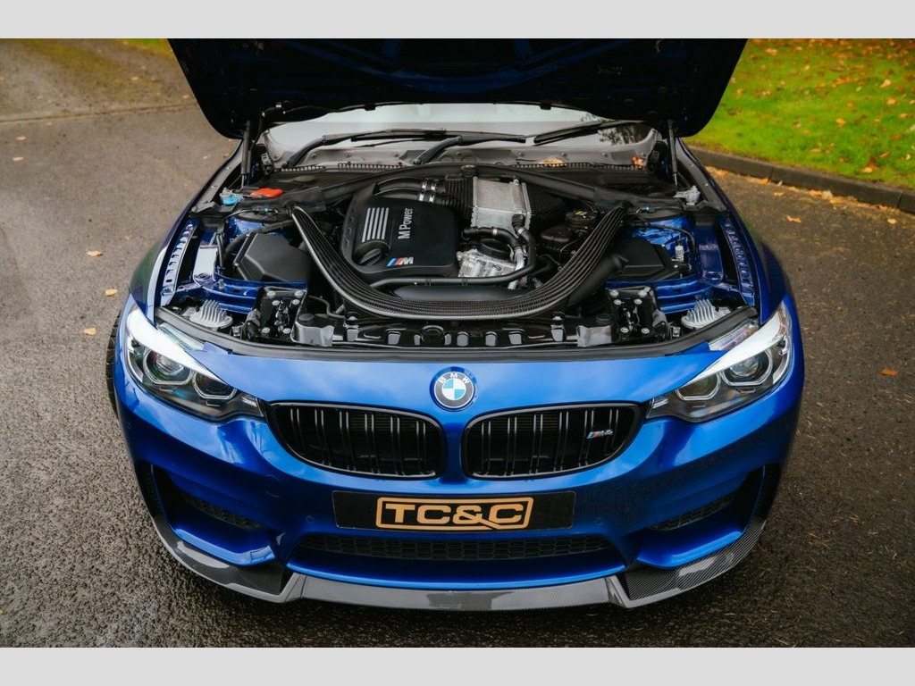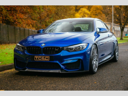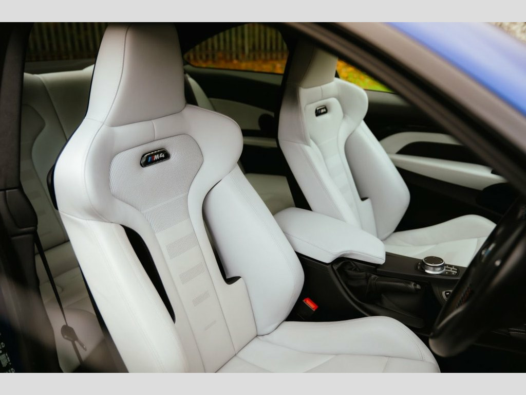 This low-mileage BMW M4 Competition is a truly incredible example, finished in San Marino Blue. Brilliantly maintained and presented, it comes with a comprehensive service history with visits recorded at 1K, 16K, 24K & 27K miles. Boasting 444BHP, a 0-60 time of 4.0 seconds, and an Active Autowerke exhaust system, this is the perfect combination of beauty & beast. Supplied with two keys, a valid MOT and a minimum six-month warranty. This M4 Comp's impressive specification includes electric heated front seats and memory function, satellite navigation, Bluetooth connectivity, a reversing camera, keyless entry and start, dual-zone climate control with air conditioning, adaptive LED headlights, cruise control with braking function, and a multifunction steering wheel with paddle shifters. Further refinements include front and rear parking sensors, automatic wipers, DAB radio with CD/AUX input, switchable driving modes, electric power-folding mirrors, and electric windows - all adding to that desirable combination of comfort, convenience, and sporting flair. The exterior presents beautifully, sporting the gleaming San Marino Blue, enhanced by the carbon fibre exterior kit, M Sport badging, and gloss black grilles. This M4 sports a more aggressive look & feel than it would typically from factory, sitting on lowering springs and wheel spacers ensuring that the eye-catching 20-inch diamond cut wheels are better positioned for both a visual and performance enhancement 12V Power Socket in Front Centre Console, 20in Alloy Wheels - M Light Star-Spoke S, 8 Programmable Favourite Buttons, Access to BMW Connected Plus (12 Month S, Active M Differential, Adaptive M Suspension, Air Breather, Air Conditioning - Automatic - Dual Zone, Airbags, Alarm System - Thatcham 1 with Remote Co, Armrest - Front with Sliding Adjustment, Automatically Dimming Rear View Mirror, AUX-In Connection, Battery Safety Cut Off, BMW ConnectedDrive Online Services, BMW Emergency Call, BMW Individual High-Gloss Shadowline wit, BMW Professional Radio with Single CD Pl, BMW TeleServices, Bottle Holders Integrated into Door Trim, Brake Pad Wear Indicator - Front and Rea, Bumper System Front a