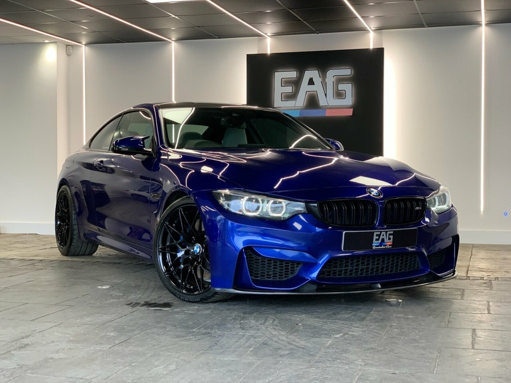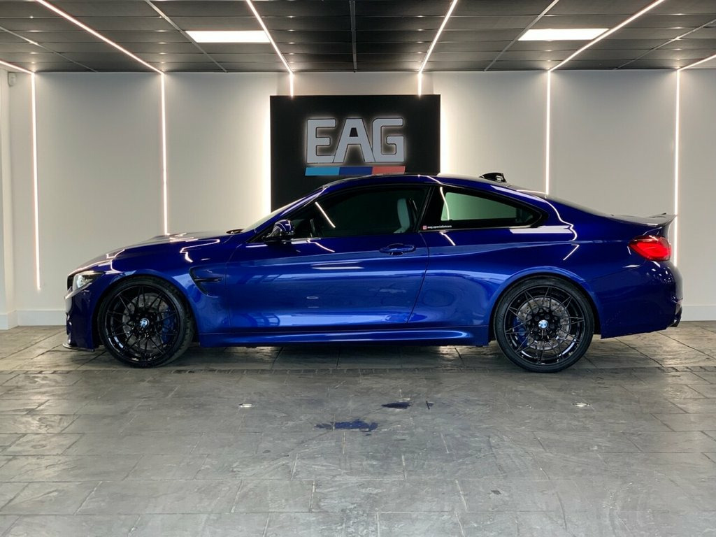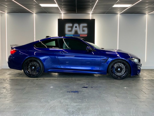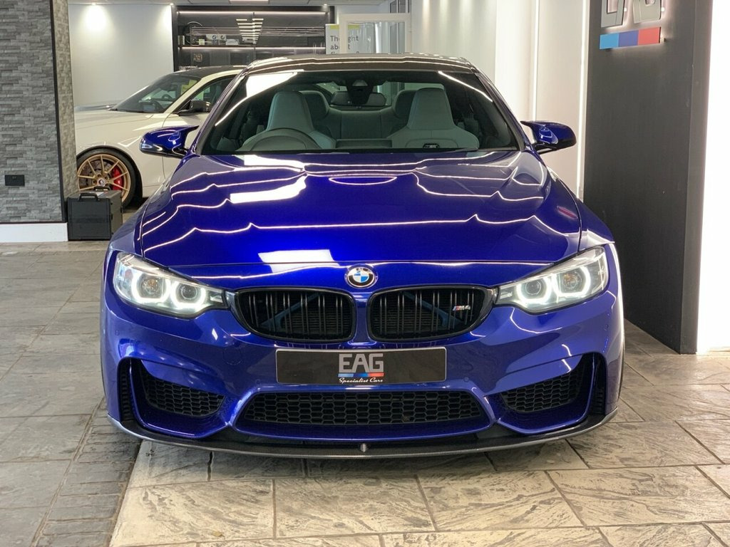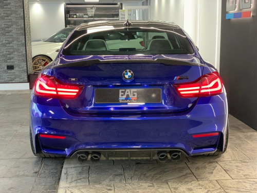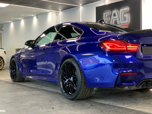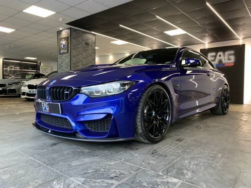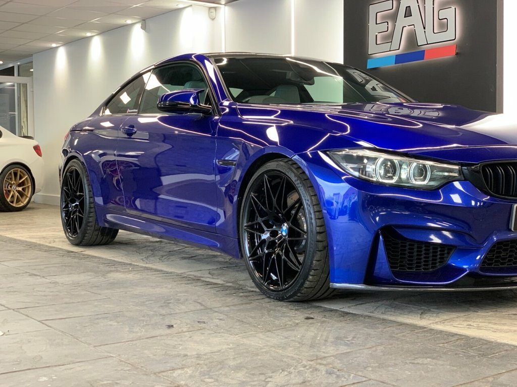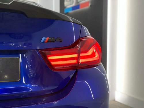 2019 (69) BMW M4 COMPETITION finished in San Marino Blue metallic with Silverstone Merino leather and 666M alloy wheels. Styled externally with a full M Performance style carbon exterior package and finished with Eibach Pro lowering springs and wheel spacers all round for an improved stance and handling. Factory spec includes; comfort access, sun protection glass, interior and exterior mirrors with auto dimming, fully electric and heated front seats with drivers memory, retractable front armrest, M seat belt stitching, front and rear park distance control, rain sensing wipers, cruise control with brake function, professional navigation, wireless telephone charging, DAB radio and Bluetooth. 2 owner. Full service history. PCP and HP finance available from 9.9% APR (subject to status) 12V Power Socket in Front Centre Console, 20in Alloy Wheels - M Light Star-Spoke S, 8 Programmable Favourite Buttons, AUX-In Connection, Access to BMW Connected Plus (12 Month S, Active M Differential, Adaptive M Suspension, Air Breather, Air Conditioning - Automatic - Dual Zone, Airbags, Alarm System - Thatcham 1 with Remote Co, Armrest - Front with Sliding Adjustment, Automatically Dimming Rear View Mirror, BMW ConnectedDrive Online Services, BMW Emergency Call, BMW Individual High-Gloss Shadowline wit, BMW Professional Radio with Single CD Pl, BMW TeleServices, Battery Safety Cut Off, Bottle Holders Integrated into Door Trim, Brake Pad Wear Indicator - Front and Rea, Bumper System Front a