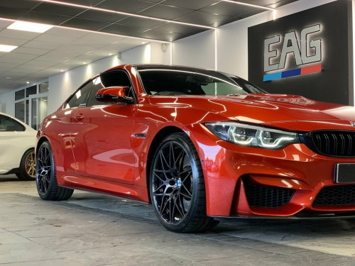2020 (20) BMW M4 COMPETITION Finished in Sakhir Orange with Black Merino Leather and 666M alloys. This example is a BMW Ultimate Package which features the following spec; heated steering wheel, adaptive M chassis, comfort access, reversing camera, sun protection glazing, fully electric and heated front seats with driver memory, storage compartment package, M seat belts, carbon fibre interior trims, park distance control, cruise control with brake function, adaptive LED ICON headlights with high beam assistant, driving assistant, surround view, park assist, navigation system professional, head-up display, Harman/Kardon surround sound system, telephony with wireless charging, DAB and Bluetooth connectivity. 2 owners. Full Service History. PCP and HP Finance available from 9.9% (subject to status) 12V Power Socket in Front Centre Console, 20in Alloy Wheels - M Light Star-Spoke S, 8 Programmable Favourite Buttons, AUX-In Connection, Access to BMW Connected Plus (12 Month S, Active M Differential, Adaptive M Suspension, Air Breather, Air Conditioning - Automatic - Dual Zone, Airbags, Alarm System - Thatcham 1 with Remote Co, Armrest - Front with Sliding Adjustment, Automatically Dimming Rear View Mirror, BMW ConnectedDrive Online Services, BMW Emergency Call, BMW Individual High-Gloss Shadowline wit, BMW Professional Radio with Single CD Pl, BMW TeleServices, Battery Safety Cut Off, Bottle Holders Integrated into Door Trim, Brake Pad Wear Indicator - Front and Rea, Bumper System Front a