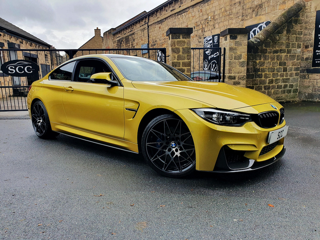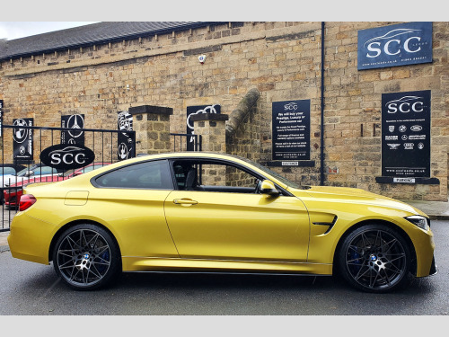 Introducing the stunning BMW M4 in Austin Yellow, now available at SCC Leeds for £38,995. This striking and unmistakable colour is one of the most iconic BMW M finishes ever produced, turning heads wherever it goes and ensuring this car stands out from the crowd. The price reflects not only its ultra-low mileage and full BMW main dealer history but also the impeccable cosmetic condition of a car that has been truly cherished and babied its entire life. At the heart of the M4 of course lies its legendary 3.0L TwinPower Turbo straight-six engine, delivering blistering acceleration, razor-sharp handling, and the unmistakable M driving experience. Whether carving through twisty roads or cruising on the motorway, the M4 never fails to thrill. Specification is everything on an M car, and this example has been beautifully & carefully equipped. Highlights include the Harman Kardon Loudspeaker System, providing an immersive surround sound experience so your music matches the drama of the drive. The Extended Merino Leather in Black adds a touch of refinement and comfort, ensuring every journey feels special, while the M Head-Up Display keeps your focus firmly on the road ahead by projecting vital information such as speed and navigation directly onto the windscreen. On the outside, the 20-inch M Light Star-Spoke Style 666 M Forged Alloy Wheels in black give the car a purposeful stance while improving agility and handling thanks to their lightweight design. Combined with the aggressive body lines, flared arches and, of course, the dazzling Austin Yellow paintwork, this M4 is a true showpiece of BMW M design. A rare opportunity to own one of the most desirable colours in the M division palette, this BMW M4 blends style, technology, and breathtaking performance in one unforgettable package. Contact SCC Leeds today at 01943 884551 to arrange a viewing or test drive, and experience for yourself why the Austin Yellow M4 is such an icon. 12V Power Socket in Front Centre Console and Passenger Footwell,8 Programmable Favourite Buttons,AUX-In Connection,Access to BMW Connected Plus (12 Month Subscription From New),Active M Differential,Adaptive M Suspension,Air Breather,Air Conditioning - Automatic - Dual Zone,Airbags,Alarm System - Thatcham 1 with Remote Control and Engine Immobiliser,Armrest - Front with Sliding Adjustment,Automatically Dimming Rear View Mirror,BMW ConnectedDrive Online Services,BMW Emergency Call,BMW Individual High-Gloss Shadowline with Extended Contents,BMW Professional Radio with Single CD Player - with MP3 Playback Compatibility,BMW TeleServices,Battery Safety Cut Off,Bottle Holders Integrated into Door Trim Storage Compartments - Front - Up to 1 litre,Brake Pad Wear Indicator - Front and Rear,Bumper System Front and Rear - Replaceable Deformation Elements for Impacts Up to 9mph,Carbon-Fibre Reinforced Plastic - CFRP - Roof,Central Locking Switch - Doors - Fuel Filler Cap - Luggage Compartment,Check Control Warning System for Monitoring of Lights and Door-Luggage Compartment Open Warning,Child Proof Locking System - Rear Doors,Child Seat ISOFIX Attachment - Rear with Passenger Airbag Deactivation,Competition Package,Condition Based Service,Control Display - 8.8in Colour Display Screen,Crash Sensor,Cruise Control with Brake Function,Cup Holders - Front - Two with Removable Oddments Tray-Lid,DAB Digital Radio,DSC - Dynamic Stability Control Plus,Direction Indicator - Side Repeaters - Integrated in Exterior Mirrors,Direction Indicator Lenses - LED,Door Sill Finishers - M Designation,Dynamic Brake Lights,EPS - Electric Power Steering,Electric Windows - Front and Rear with Open-Close Fingertip Control - Anti-Trap Facility and Comfort Closing Function,Enhanced Bluetooth Telephone Preparation with Wireless Charging,Extended Lighting,Exterior Mirrors - Electrically Folding with Anti Dazzle,Exterior Parts in Body Colour,Exterior Trim - High-Gloss Shadowline,First Aid Kit and Warning Triangle,Floor Mats - Velour,Full Black Panel Display,Gearshift Lever with M Badge,Glove Box,Grab Handles - Integrated in Roof Lining x4,Handbrake Lever and Gear Lever in Leather,Headlining - Anthracite,Heat Protection Glazing with Green Tint,High Level Third Brake Light,Interior Lighting - Front Centre Over Interior Mirror with Soft-Light and Rear Centre,Interior Trim Finisher - Blue Shadow with Black High Gloss Finisher,Kidney Grille - Chrome with Double Black Vertical Slats and M4 Badging,LED Headlights,LED Taillights with New 3D L-Shaped LED Light Design,Lights-On Warning by Audio Warning Signal When Ignition is Switched Off,Lightweight M Sports Seats - with Breakthrough Elements in the Seat Back,Loudspeaker System - BMW Advanced,Luggage Compartment - Lashing Eyes,Luggage Compartment - Light,M Aerodynamics Package,M Designation,M Double Clutch Transmission with Drivelogic,M Drive Manager,M Instrument Cluster,M Rear Spoiler - Integrated into Bootlid,M Seat Belts,M Servotronic,M Sports Exhaust Finished with Black Chrome Tailpipe Finishers,M-Specific Rear Seat with Two Integrated Headrests and One Removable Centre Headrest,M-Specific Seats for Driver and Passenger,Media Package - BMW Professional,Model Designation,Navigation System - BMW Professional Multimedia,Non Smokers Package,OBC - On-Board Computer,Oil Sensor For Level and Grade - Warning by Check Control System,Optimum Shift Indicator,PDC - Park Distance Control - Front and Rear,Personal Profile,Rain Sensor with Automatic Headlight Activation,Real Time Traffic Information,Rear Backrest - Lightweight Construction - Foldable and 60:40 Dividable,Rear Fog Light,Rear Suspension - Five-Link,Remote Control Including Integrated key with Inset in Chrome - 2,Remote Services,Seat Adjustment - Front Electric with Driver Memory,Seat Belt Security Check for Driver,Seat Belts - M Stripes,Seat Heating for Driver and Front Passenger,Seats - Backrest Width Adjustment - Front,Shark Fin,Side Armrests - Front and Rear Integrated into Door Trim,Side Impact Protection,Start-Sto