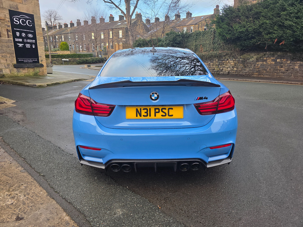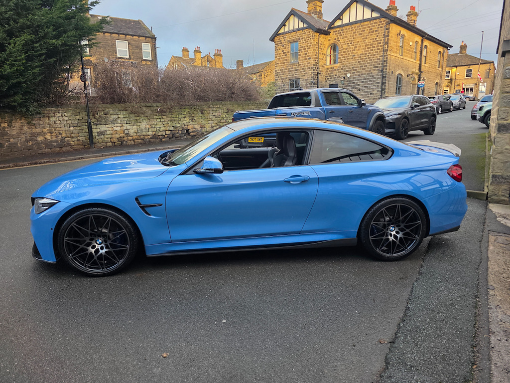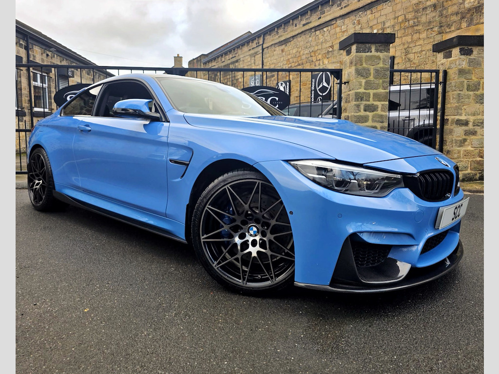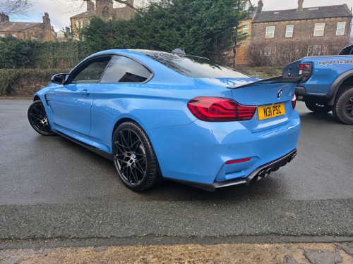 2020 (70) BMW M4 Competition – Ultimate Package! Yas Marina Blue - 24,000 Miles 3 owners & FULL mainly BMW history plus the running in check at 1k miles. This 2020 BMW M4 Competition with the Ultimate Package is a standout example of BMW M performance. With just under 24,000 miles, this is a high-spec, performance-focused coupe that delivers serious pace, sharp handling and everyday usability. Aesthetics on this car for us make it. No Temu bodykit here. Its subtle - M4 Comp Ultimates have a lot of carbon BUT this has extended aero - Full CT Carbon aero package! Sitting on BMW optioned wheels (not the standard wheel these were a cost option from factory and subtly different) 20-inch M Light Star-Spoke Style 666 M Forged Alloy Wheels in Black, the M4 has an aggressive, purposeful stance while offering outstanding grip and stability. This is enhanced by the wheel spacers (extra long bolts installed - std bolts also come with the car). The exhaust is standard but the tips have been changed to gloss black with a subtle electroplated finish. The car is running a standard engine MAP but has had the important M4 GTS gearbox flash making it much more compliant than the standard car and a much nicer car through the gears and all but omitting the standard more clunky feel these M cars can have at normal road speeds. The paddle shifters have also been upgraded with magantic type so the really click nice and give an amazing feel over the standard slightly floppy response. Performance, Technology & Safety Ultimate Package Driving Assistant for added confidence and safety Adaptive LED Headlights with High-Beam Assistant Harman Kardon Premium Sound System Track-inspired performance with everyday refinement Interior & Comfort The cabin is finished in Extended Merino Leather – Black, combining luxury with motorsport influence. Carbon Fibre interior trim with Black Chrome finisher adds a premium, performance edge, while Comfort Access with Smart Opener provides effortless keyless entry. This M4 Competition perfectly balances raw aggression and premium comfort, making it one of the most desirable modern M cars on the road. SERVICE HISTORY & MECHANICALS:- 6 SERVICES AND PDI 09/2020, 10/2020, 04/2021, 08/2021 - ALL BMW 12/2022, 11/2024 - BOTH BMW SPECIALISTS LAST SERVICED 28.11.2024 @ 20086 MILES 4 NEW MICHELIN PILOT SPORT 4 S TYRES FITTED. MOT UNTIL SEPTEMBER 2026 - ITS HAD 3 TESTS IN ITS LIFE AND BEVER HAD AN ADVISORY ITEM NOTED. GHOST IMOBILSOR FITTED Finance & Buying Options Competitive finance packages available Low monthly payments Flexible deposits & terms Part exchange welcome Call 01943 884551 today to arrange a viewing or test drive. SCC Leeds – Guiseley, West Yorkshire Cars in Yas Marina Blue with this level of specification do not stay available for long — early enquiry is highly recommended! 12V Power Socket in Front Centre Console and Passenger Footwell,8 Programmable Favourite Buttons,AUX-In Connection,Access to BMW Connected Plus (12 Month Subscription From New),Active M Differential,Adaptive M Suspension,Air Breather,Air Conditioning - Automatic - Dual Zone,Airbags,Alarm System - Thatcham 1 with Remote Control and Engine Immobiliser,Armrest - Front with Sliding Adjustment,Automatically Dimming Rear View Mirror,BMW ConnectedDrive Online Services,BMW Emergency Call,BMW Individual High-Gloss Shadowline with Extended Contents,BMW Professional Radio with Single CD Player - with MP3 Playback Compatibility,BMW TeleServices,Battery Safety Cut Off,Bottle Holders Integrated into Door Trim Storage Compartments - Front - Up to 1 litre,Brake Pad Wear Indicator - Front and Rear,Bumper System Front and Rear - Replaceable Deformation Elements for Impacts Up to 9mph,Carbon-Fibre Reinforced Plastic - CFRP - Roof,Central Locking Switch - Doors - Fuel Filler Cap - Luggage Compartment,Check Control Warning System for Monitoring of Lights and Door-Luggage Compartment Open Warning,Child Proof Locking System - Rear Doors,Child Seat ISOFIX Attachment - Rear with Passenger Airbag Deactivation,Competition Package,Condition Based Service,Control Display - 8.8in Colour Display Screen,Crash Sensor,Cruise Control with Brake Function,Cup Holders - Front - Two with Removable Oddments Tray-Lid,DAB Digital Radio,DSC - Dynamic Stability Control Plus,Direction Indicator - Side Repeaters - Integrated in Exterior Mirrors,Direction Indicator Lenses - LED,Door Sill Finishers - M Designation,Dynamic Brake Lights,EPS - Electric Power Steering,Electric Windows - Front and Rear with Open-Close Fingertip Control - Anti-Trap Facility and Comfort Closing Function,Enhanced Bluetooth Telephone Preparation with Wireless Charging,Extended Lighting,Exterior Mirrors - Electrically Folding with Anti Dazzle,Exterior Parts in Body Colour,Exterior Trim - High-Gloss Shadowline,First Aid Kit and Warning Triangle,Floor Mats - Velour,Full Black Panel Display,Gearshift Lever with M Badge,Glove Box,Grab Handles - Integrated in Roof Lining x4,Handbrake Lever and Gear Lever in Leather,Headlining - Anthracite,Heat Protection Glazing with Green Tint,High Level Third Brake Light,Interior Lighting - Front Centre Over Interior Mirror with Soft-Light and Rear Centre,Interior Trim Finisher - Blue Shadow with Black High Gloss Finisher,Kidney Grille - Chrome with Double Black Vertical Slats and M4 Badging,LED Headlights,LED Taillights with New 3D L-Shaped LED Light Design,Lights-On Warning by Audio Warning Signal When Ignition is Switched Off,Lightweight M Sports Seats - with Breakthrough Elements in the Seat Back,Loudspeaker System - BMW Advanced,Luggage Compartment - Lashing Eyes,Luggage Compartment - Light,M Aerodynamics Package,M Designation,M Double Clutch Transmission with Drivelogic,M Drive Manager,M Instrument Cluster,M Rear Spoiler - Integrated into Bootlid,M Seat Belts,M Servotronic,M Sports Exhaust Finished with Black Chrome Tailpipe Finishers,M-Specific Rear Seat with Two Integrated Headrests and One Removable Centre Headrest,M-Specific Seats for