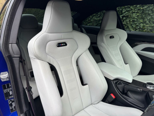 2019 BMW M4 Competition finished in San Marino Blue Specifications on this car include - Upgraded Virtual Cockpit Digital Dash & Carbon Steering Wheel (Comes with the originals just incase new owner wants to change them back to standard | Carbon Spoiler & 3 Piece Diffuser | Online Entertainment | Carbon Fibre Interior Trim | High-Beam Assistant | Speed Limit Display | M Head-Up Display | Reversing Assist Camera & much more listed in the standard spec section below, Supplied with two keys and all correct documentation, Built In Tracker, Full BMW Service History, HPI Clear. This vehicle has passed a thorough inspection which includes exterior and interior inspection, mechanical inspection & document and history inspection. All our cars comes with a HPI report to prove they havent been written off & are clear of finance. We are available on whats app - 07827 958980 or alternative feel free to give us a call or drop us a email using the message seller button above. We offer some of the lowest finance rates in the country on all of our vehicles. Please get in contact with us & one of our finance experts will help you build the ideal package for you based on your monthly affordability, We would love to take your vehicle in a part exchange no matter what make, model or condition or if you just want to sell your vehicle then please get in contact with us for more information. We Are Open By Appointment Only So Please Get In Contact With Us To Book A Viewing. We offer nationwide delivery on all of our cars & extended warranty packages