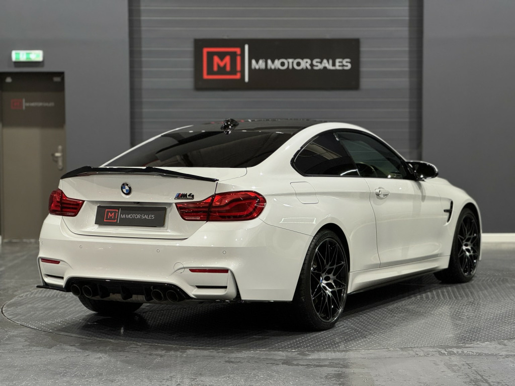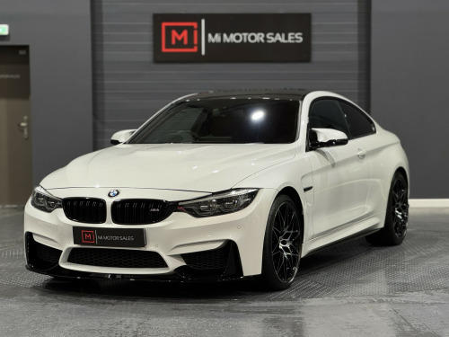 Mi Motor Sales is thrilled to offer this extremely well maintained BMW M4 3.0 BiTurbo GPF Competition Coupe 2dr Petrol DCT Euro 6 (s/s) (450 ps) finished in Mineral White with a mere 43,300 miles covered. It boasts FULL service history including a Run-In Service and as part of our preparation processed it has received a fresh service, an A/C service and Re-Gas, A 3 stage machine polish with a 6-month ceramic coating applied plus will come with a new 12-month advisory free MOT to the new owner. Plus has had all 4 wheels refurbished in Diamond cut with the factory shadow tint applied. , With this being the COMPETITION model it is loaded with features which include Competition alloy wheels with Michelin tyres, Adaptive IKON LED Headlights, Gloss black M Exterior styling, Rear privacy glass, Cruise Control with Brake Function, PDC - Park Distance Control - Front and Rear, Carbon roof, M Sports Exhaust Finished with Black Chrome Tailpipe Finishers, M Double Clutch Transmission with Drivelogic, Adaptive M Suspension, Active M Differential, Heated front seats, Electric front seats with drivers memory function, Headlining - Anthracite, Air Conditioning - Automatic - Dual Zone, M Seat Belts, BMW Professional Radio with Single CD Player - with MP3 Playback Compatibility, M Head-Up Display, Loudspeaker System - Harman Kardon, Reversing Assist Camera, Control Display - 8.8in Colour Display Screen and Apple CarPlay Preparation. , Every effort has been made to ensure the above details of the car are correct however, please check with the physical vehicle. For a full list of features, click the specifications tab below. Delivery available. Motor Sales is a long-standing family run business and is part of the Mi Conversions Group. All our vehicles undertake a 117-point PDI process and when required, a fresh engine service and Air Conditioning service. We can offer very competitive finance packages including 0% interest deals (subject to terms) from several finance partners and lenders. As standard we include a 3-month, third party warranty included in the final selling price but can extend to 12, 24 or 36 months. As we are only a small team, we do operate on a View by Appointment only basis from our Dorset premises (DT2 8BL). This allows us to give you our full attention so feel free to get touch.
