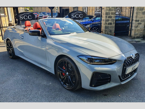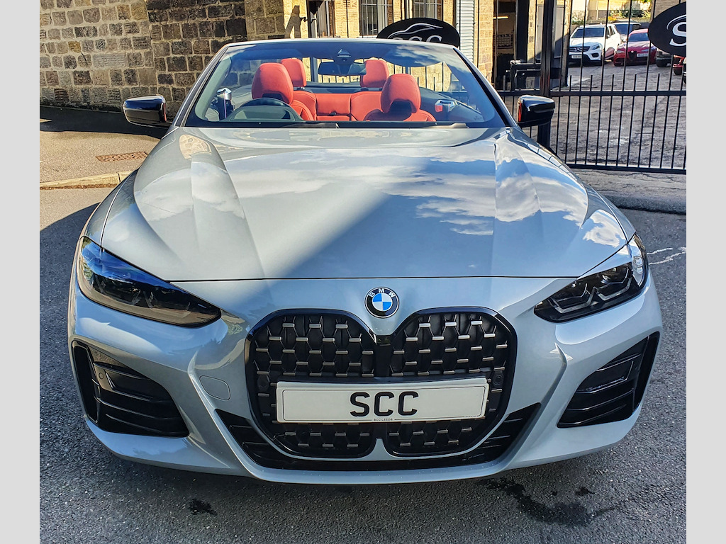 ****OPTIONAL SPEC - THE MOST DESIRABLE COLOUR COMBINATION ON THE MARKET - TECHNOLOGY PACK, COMFORT PACK, HEATED STEERING WHEEL, HARMON KARDON SOUND PACKAGE, WIND DEFLECTOR, INDIVIDUAL SHADOWLINE LIGHTING PACKAGE, GYEON Q2 MOHS EVO CERAMIC COATING APPLIED*** Discover the thrilling driving experience of the BMW 4 Series Convertible, now available for £41,995 at SCC Leeds. This stunning vehicle, finished in the eye-catching Brooklyn Grey, combines elegance with performance, powered by a robust 3.0L petrol/electric hybrid engine delivering an impressive 369 BHP. With just 5,165 miles on the clock and an 8-speed automatic transmission, this car promises a smooth and exhilarating ride. Among its standout features, the BMW Individual High-Gloss Shadowline with Extended Contents enhances the vehicle's aesthetic appeal, giving it a striking, polished look that is sure to turn heads. The Comfort Package provides ultimate convenience, ensuring that every journey is not only stylish but also comfortable for both driver and passengers. Enjoy an elevated audio experience with the Loudspeaker System by Harman Kardon, delivering crystal-clear sound that makes every drive a pleasure. Additionally, the Adaptive M Suspension is designed to adapt to various driving conditions, allowing you to enjoy a dynamic driving experience whether you're cruising on the motorway or navigating city streets. With combined fuel consumption of 35.3mpg, this vehicle also ensures that you can enjoy performance without compromising on efficiency. Don’t miss out on the opportunity to own this remarkable BMW 4 Series Convertible. Contact SCC Leeds today at 01943884551 to arrange a viewing or to find out more about this exceptional vehicle. Your dream car awaits! 19in Alloy Wheels - M Double Spoke Style - 792 - Bicolour Cerium Grey with Mixed Tyres,Active Guard Plus,Adaptive M Suspension,Air Conditioning - Automatic with Three-Zone,Airbags,Alarm System,Ambient Lighting,Armrests,Attentiveness Assistant,Automatic Start-Stop Button,BMW Connected Package Professional,BMW ConnectedDrive Online Services,BMW Emblem on Engine Compartment Lid and Tailgate,BMW Emergency Call,BMW ID,BMW Kidney Grille with Mesh Grille - Front Side of the Nuggets in Matt Aluminium and Frame in Chrome High-Gloss,BMW Live Cockpit Professional,BMW TeleServices,BMW iDrive,Battery in Luggage Compartment,Bumper System - Front and Rear,Centre Armrest in Rear - Folding with 2 Cup Holders,Centre Lock Switch,Closing System with Central Locking,Condition Based Service,Crash Sensor,Cruise Control,Cup Holders in Centre Console - Front - 2 Cupholder Inserts with Clamping Elements - Inlay Matt Black,DAB Tuner,DSC - Dynamic Stability Control Plus,Door Sill Strips - M Sport Entry Sills,Double-Jointed Spring-Strut Front Axle,Driving Experience Switch,EPS - Electric Power Steering,Electric Memory Seats,Electric Vehicle Immobiliser,Electric Window,Electronic Differential Lock,Exhaust Tailpipe Finishers - Visible,Exterior Trim - High-Gloss Shadowline,Floor Mats - Velour,Folding Wing Mirrors with Auto-Dimming,Follow-Me-Home Function,Front Apron - Plastic in Body Colour,Fuel Filler Cap - Right - Rear - in Body Colour,Gearshift Paddles,Glove Compartment - Illuminated,Headlight Beam-Throw Control - Automatic - Load Dependant Regulating Reaction - Dynamic Compensation of Braking Dive and Acceleration Squat,Headlining - Anthracite,Heat Protection - Sun Protection Glazing,HiFi Loudspeaker System,Illuminated Bow-Type Door Handles - in Body Colour - Drivers Side with Door Lock,Instrument Panel in Sensatec,Interior Lighting,Interior Rear-View Mirror with Automatic Anti-Dazzle Function,Interior Trim - Aluminium Tetragon,LED Headlights,LED Rear Lights,Lashing Eyelets in Luggage Compartment,License Plate Panel Integrated into Front Bumper and Tailgate,Luggage Compartment - Light,M Seat Belts,M Sport Brakes with Red Calipers,M Sport Differential,M Sport Exterior Styling,M Sport Leather Steering Wheel,Model Logo,Multifunction for Steering Wheel,Oil Sensor For Level and Grade,One-Piece Front Bumper Cover including Towing Eye Cover in Body Colour,Parking Assistant,Parking Brake - Electromechanical,Power Socket 12v,Power Sockets,Preparation For High-Beam Assistant,Reversing Light,Shifting Point Display,Side Frame Decorative Moulding - Black Matt,Smartphone Integration,Speed Limiter,Split Folding Rear Seat - 40-20-40,Sport Seats - Front,Steering Column Adjustment,Sun Visors with Illuminated Vanity Mirrors and Ticket Holder,Third Brake Light,Toolkit Located in Luggage Compartment,Tyre Pressure Sensors,Variable Sport Steering,Warning Triangle,Washer Jets - Heated,Welcome Light,Window Recess Finisher - Black Matt,BMW Individual High-Gloss Shadowline with Extended Contents,BMW Individual Lights - Shadowline,Comfort Package,Enhanced Bluetooth with Wireless Charging,Interior Trim - BMW Individual - Piano Black,Loudspeaker System - Harman Kardon,Steering Wheel - Heated,Technology Package,Warm Air Collar,WiFi Hotspot,Wind Deflector,Brooklyn Grey