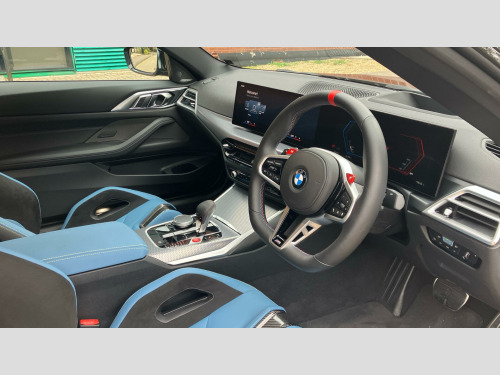 This 2024 BMW M4 BiTurbo Competition is a truly exceptional example, boasting an incredibly low mileage of just 1671 miles and a full dealership service history, ensuring its provenance is second to none. As a BMW manufacturer approved vehicle, it comes with the reassurance of a 24 month warranty. Under the bonnet, you'll find a powerful 3.0L petrol engine paired with a sophisticated four wheel drive system, all meeting Euro 6 emissions standards. Inside, experience the supportive embrace of M Carbon Bucket Seats, complete with electric memory functions for both driver and passenger. Convenience is further enhanced by a wireless charging tray and automatic air conditioning, while the Parking Assistant, featuring front and rear cameras and sensors, makes manoeuvring effortless.