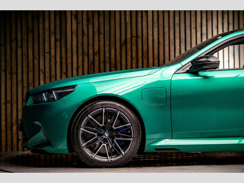This 2025 BMW M5 presents an exceptional opportunity with its remarkably low mileage of just 2250 miles, indicating it has barely been run in. This impressive saloon features a powerful 4.4 litre petrol plug in hybrid engine, paired with a four wheel drive drivetrain, all meeting the Euro 6 emission class. The vehicle benefits from a Comfort Package, which includes heated seats for ultimate comfort, and M Multifunctional Seats for both the driver and front passenger, complete with memory settings. For an immersive audio experience, it boasts a Bowers and Wilkins Surround Sound System, and maintaining the perfect cabin environment is effortless with the automatic air conditioning offering four zone control.The performance of this M5 is truly remarkable, achieving 0-62mph in a swift 3.6 seconds, a testament to its advanced engineering and a clear indicator of its superior acceleration compared to many other vehicles in its class. This exceptional acceleration, combined with the luxurious appointments and the low mileage from its single owner, makes this BMW M5 a standout choice for those seeking a blend of exhilarating performance and refined comfort.. 20in-21in Alloy Wheels - M Light 951 M Bicolour Midnight Grey with Mixed Tyres, AC Fast Charge Preparation, Acoustic Protection for Pedestrians, Active Guard, Adaptive Suspension, Air Conditioning - Automatic with Four Zone Control, Airbags, Alarm System, Ambient Lighting, Automatic Tailgate, BMW Connected Package Professional, BMW ConnectedDrive Online Services, BMW Emergency Call, BMW Iconic Glow Exterior Package, BMW Iconic Sounds - Electric, BMW Live Cockpit Professional with Head-Up Display, BMW TeleServices, Badge - Front and Rear, Bowers and Wilkins Surround Sound System, Charging Cable - Professional - Mode 3 for Public Charging - Up to 22kW, Comfort Access, Contrast Roof - Black, Cruise Control with Braking Function, DAB Digital Radio, Door Handles Flush with the Door Surface, Driving Assistant, Driving Assistant Plus Preparation, EPS - Electric Power Steering, Electric Windows - Front and Rear, Exterior Trim - Extended High Gloss Shadowline, Exterior Trim - High Gloss Shadowline, Floor Mats in Velour, Headlights - Adaptive LED, Interior Camera, Locking Wheel Bolts, Lumbar Support - Driver and Front Passenger, M Drive Professional, M Headliner - Anthracite, M Leather Steering Wheel, M Light Shadowline, M Multifunctional Seats for Driver and Front Passenger, M Seat Belts, M Sport Differential, Mirror Triangle in Black High-Gloss, Parking Assistant Plus, Personal eSim, Safety Systems, Seat Heating - Front, Standard Compound Brake System with Blue Brake Calipers, Steering Wheel - Heated, Sun Protection Glass, TPMS - Tyre Pressure Monitoring System, Through-Loading System, Trim - Dark Silver M Accent Combined with Aluminium Rhombicle, Tyre Repair Kit, Warning Triangle and First Aid Kit, Wireless Charging Tray, Comfort Package. Full service history