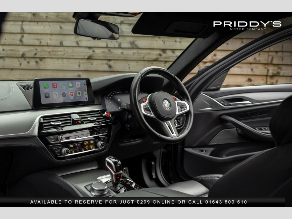 ** This vehicle has recently passed our meticulous pre-purchase inspection and has now arrived on site, where it has undergone a second detailed assessment and extended test drive. The photographs capture the car exactly as it arrived — already presenting beautifully, as only the finest examples ever make it into our selection. It is now undergoing final preparation behind the scenes and will require only light finishing touches before being ready for handover. Given its superb condition and desirability, we recommend reserving early to secure it ahead of other discerning buyers **, , , , There are fast saloons, and then there are cars that redefine what a four-door can be. This F90 BMW M5 Competition sits firmly in the latter category. Built around BMWs 4.4-litre twin-turbo V8, producing a staggering 617hp, this is a car that blends supercar pace with everyday usability in a way very few ever have. Its the benchmark for a reason. , This is a genuinely well-kept, honest example. Not modified, not messed with, simply enjoyed and properly looked after. The stance is menacing yet restrained, the design purposeful rather than shouty, and the overall presence is exactly what an M5 should be — understated, muscular, and quietly intimidating. It looks right, feels right, and carries itself with real authority. , Press the start button and the character changes instantly. The V8 fires with intent, delivering a deep, rich soundtrack that never feels artificial. On the move, its devastatingly quick but beautifully composed. The steering, suspension and drivetrain adapt to your mood, from calm and refined to ferociously focused at the touch of a button. Few cars manage this duality so convincingly. When people say you cant match how a BMW drives, this is exactly what they mean. , The interior mirrors that sense of occasion. Full Merino leather wraps the cabin, extending across the dashboard and door cards, creating an environment that feels genuinely special. Heated front and rear seats, heated steering wheel, four-zone climate control and ambient lighting ensure comfort is never compromised, while memory seats for both driver and passenger add everyday ease. The M Sport seatbelts and digital cockpit subtly remind you that this is something far more serious than an executive saloon. , Technology is comprehensive and properly integrated. The head-up display with speed limit recognition keeps your focus where it should be, Apple CarPlay fills the widescreen display seamlessly, and the digital dash brings clarity without gimmicks. The 360-degree camera system with 3D modelling makes tight manoeuvres effortless, while blind spot assistance and keyless entry add another layer of confidence and convenience. , One of the M5 Competitions party tricks is its drivetrain. Switchable between four-wheel drive for relentless traction or rear-wheel drive for a purer, more playful experience, it offers two personalities in one car — refined weapon or unfiltered performance machine, depending entirely on your mood. , This is not an over-sold car. It doesnt need to be. Its a properly cared-for example of one of the greatest performance saloons ever built, presented exactly as it should be. , A car for those who know what an M5 really represents. , , , Why Buy from Priddys Motor Company, , , Excellence isnt optional — its standard.