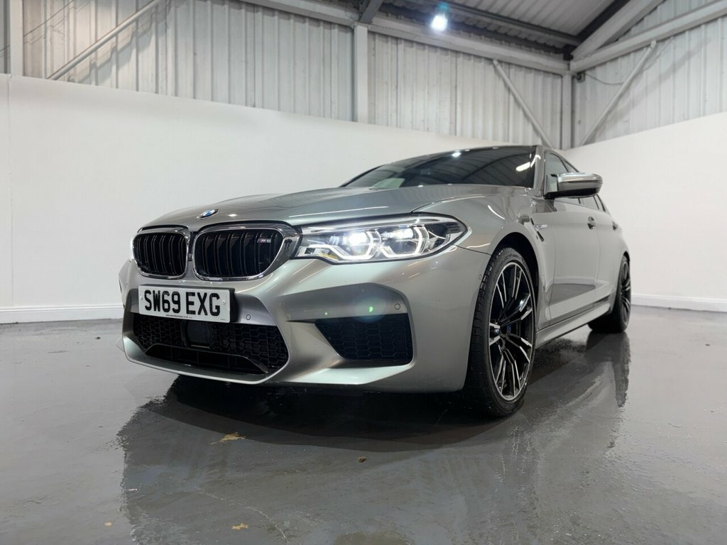 The BMW M5 4.4 V8 Saloon is a high-performance four-door that perfectly blends supercar pace with everyday luxury. Supplied with two keys, this example benefits from a comprehensive BMW iDrive service history recorded at 1, 7, 15 and 22 thousand miles, and will be serviced by BMW at its current mileage for added peace of mind. Powered by a 600 PS 4.4-litre V8 engine and paired with the smooth Steptronic gearbox and xDrive all-wheel drive system, it delivers relentless performance while remaining refined and composed. The specification is extensive and includes a heads-up display, electric memory seats, 20-inch alloy wheels, privacy glass and a carbon fibre roof. Parking and manoeuvring are made easy with front and rear parking sensors along with reverse and surround view cameras, while adaptive LED headlights and satellite navigation enhance everyday driving. Inside, comfort is exceptional with heated front and rear seats, a heated steering wheel, wireless phone charging and cruise control, all complemented by the outstanding Bowers & Wilkins sound system. Additional highlights include active lane assist, Driving Assistant Plus, BMW Gesture Control, the M Sport exhaust system and the sought-after BMW Display Key. This is a stunning example of BMW's flagship performance saloon, offering incredible power, cutting-edge technology and premium comfort in one complete package. 20GB Hard Disc Drive HDD Memory, 20in Alloy Wheels - Double Spoke Style -, Access to BMW Connected Plus (12 Month S, Active Air Stream Kidney Grille, Active Guard, Additional 12V Power Socket, Air Conditioning - Automatic with Four Z, Airbags, Alarm System - Thatcham 1 with Remote Co, All Round Anti-Corrosion System, Ambient Lighting, Anti Roll Bars - Front and Rear, Armrests, BMW ConnectedDrive Online Services, BMW ConnectedDrive Services, BMW Emergency Call, BMW Gesture Control, BMW Icon Adaptive LED Headlights, BMW Professional Radio with Single CD Pl, BMW TeleServices, Battery in Luggage Compartment with Jump, Bootlid Operation - Powered, Brake Assist, Brake Force Display, Carbon Fibre R