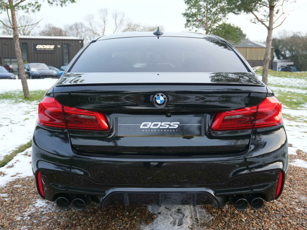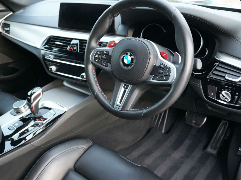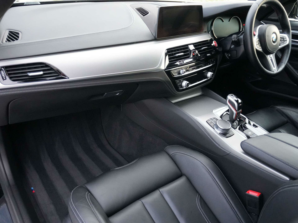 2019 (69) BMW M5 Auto24,000 miles - 2 owners from new - Full service historyFinished in Black Sapphire Metallic with Black Merino leather interior, this low-mileage BMW M5 combines everyday usability with super-saloon performance, supported by a strong specification and desirable factory options.Key details:- 2019 / 69 plate- 24,000 miles- BMW M5- 4.4-litre twin-turbocharged V8 petrol engine (600 bhp)- 8-speed automatic transmission- M xDrive all-wheel driveSpecification highlights:- Black Sapphire Metallic exterior- Black Merino leather interior- M Sport exhaust system- Sun protection glazing- Heated front seats- Heated rear seats- Heated steering wheel- Electric driver's seat with memory- M seat belts- Harman Kardon surround sound system- Head-up display- 360 camera system (Parking Assistant Plus)- Blind spot monitoring- Power tailgate- Through-loading system- Ambient interior lighting- 20'' M alloy wheels- Driving Assistant Plus- Adaptive cruise control- Lane departure warningHistory & ownership:- 2 owners from new- Full service historyDisclaimer: Whilst every effort has been taken to ensure accuracy of all our vehicles information, some inaccuracies may occur. It is important that you do not rely on this information but check with Boss motor company limited about any items which may affect your decision to buy this vehicle.Fuel consumption and power usage figures are for guidance only. Factors such as driving style, weather, loading, traffic conditions, all affect the rate at which fuel or power is consumed. It is likely that some journeys will result in greater fuel consumption for the same distance than other journeys. You would be wise to ensure the power range remains above 20% at all times., w display key, comfort package, driving assistant plus, m seat belts, m sport exhaust system, seat heating - front and rear, steering wheel - heated, sun protection glazing, through-loading system, black sapphire, full merino leather - black with black interior, 20gb hard disc drive hdd memory, 20in alloy wheels - double spoke style - 706m bicolour, active air stream kidney grille, active guard, additional 12v power socket, air conditioning - automatic with four zone control, airbags, alarm system - thatcham 1 with remote control and engine immobiliser, all round anti-corrosion system, ambient lighting, anti roll bars - front and rear, armrests, bmw connecteddrive online services, bmw connecteddrive services, bmw emergency call, bmw gesture control, bmw icon adaptive led headlights, bmw teleservices, battery in luggage compartment with jump start facility in engine bay, bootlid operation - powered, brake assist, brake force display, carbon fibre roof, child seat isofix attachment - outer rear seats - includes top tether, comfort access with smart opener, control display - 10.25in colour touch sensitive display screen, crash sensor - activating central locking - hazard warning lights - fuel cut off - interior lights, cruise control with brake function, cup holders - front x2 and rear x2, dab digital radio, dsc - dynamic stability control - stabilises the vehicle in extreme situations - controls traction, daytime running lights - led, deformation zones - front and rear, door sill finishers - illuminated with m5 designation, double-wishbone suspension - front, driving assistant, dynamic brake lights with led technology, dynamic damper control, electric windows - front and rear with open-close fingertip control - anti-trap facility and comfort closing function, electro mechanical parking brake with automatic drive-away and auto-hold function, engine cover with m designation, enhanced bluetooth telephone preparation with wireless charging, exhaust tailpipes - 2x twin chrome, exterior door handle illumination, exterior mirrors - folding with anti dazzle, exterior trim - high gloss shadowline, favourite buttons, first aid kit and warning triangle, floor mats - velour, follow me home headlight function, footwell lights - front and rear, glove compartment - lockable and illuminated, head restraints - front anti-whiplash, head-up display, headlining - anthracite alcantara, high-beam assistant, integral rear axle, interior rear-view mirror with automatic anti-dazzle function, interior trim - aluminium carbon structure with highlight trim finisher pearl chrome, launch control, locking wheel bolts - thatcham approved, loudspeaker system - harman kardon, lumbar support - driver and front passenger, m leather steering wheel, m multifunctional seats for driver and front passenger, m rear spoiler, m servotronic power steering, m specific exterior mirrors - foldable - electrically adjustable and heated, mobility kit, multifunction controls for steering wheel, obc - on-board computer, obd - on board diagnosis, oil sensor for level and grade, pdc - park distance control - front and rear, parking assistant plus, power sockets - 12v in front - 2x rear and 1x luggage compartment, rain sensor with automatic headlight activation, reading lights - front and rear, reversing assist camera, seat adjustment - front electric with driver memory, seat belts - front - inertia reel with pyrotechnical belt latch tensioner - belt force limiter and belt restrainer, seat belts - rear - three with inertia reel, seat heating - front, side gills with m5 designation, side impact protection, speed limit function, steering column with electric adjustment of height and length, steering wheel - gearshift paddles, tpms - tyre pressure monitoring system, two tone horn, vdc - variable damper control, wifi hotspot preparation, windscreen washer jets - heated, idrive touch controller with shortcut buttons, access to bmw connected plus (12 month subscription from new), bmw professional radio with single cd player - mp3 and dvd playback compatibility, concierge service, digital cockpit, navigation system - bmw professional multimedia, real time traffic information, remote services