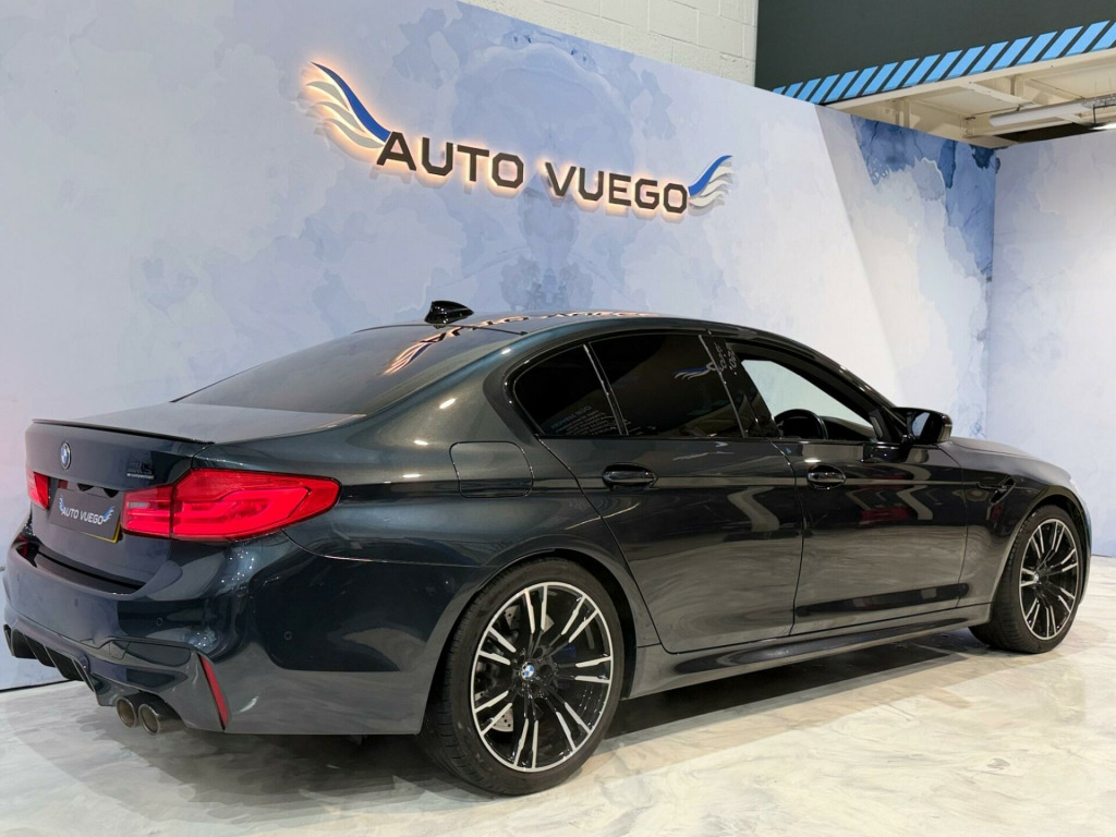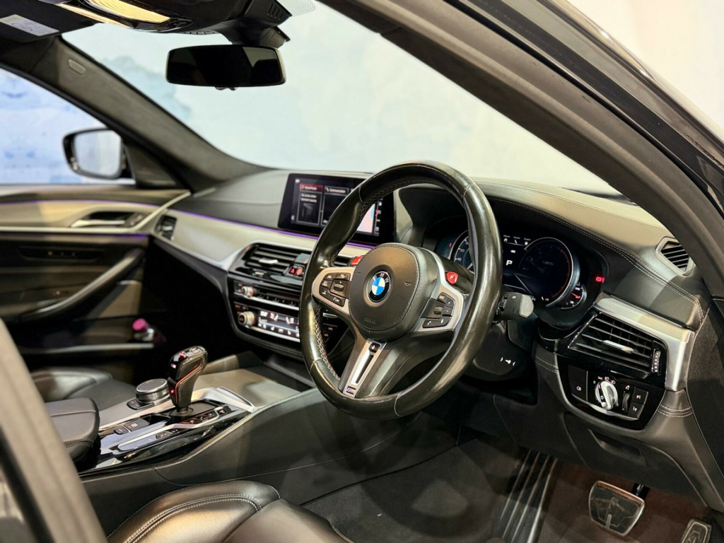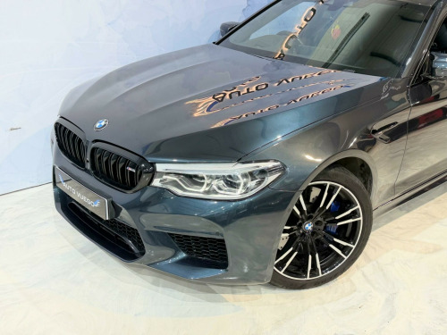 This 2019 BMW M5 V8 presents an exceptional opportunity with remarkably low mileage for its age, having covered just 34,000 miles. This impressive saloon boasts a powerful 4.4 litre petrol engine, delivering exhilarating performance with a 0-62mph acceleration time of only 3.4 seconds, all managed through its sophisticated four wheel drive system. As a Euro 6 compliant vehicle, it meets modern emissions standards. Inside, you'll find a host of advanced features designed for comfort and convenience, including Driving Assistant Plus which incorporates Blind Spot Assistance and Adaptive Cruise Control, alongside automatic air conditioning with four zone control, ensuring a pleasant environment for all occupants. The enhanced Bluetooth telephone preparation with wireless charging and a reversing assist camera further elevate the driving experience.The BMW M5 V8 offers a compelling blend of dynamic capability and practicality. Its impressive acceleration highlights how this vehicle outperforms many others in its class, providing a truly engaging drive. The generous boot space ensures that this performance saloon is also highly practical for everyday use and longer journeys. The inclusion of features like Blind Spot Assistance and Parking Assistance underscores the M5's commitment to safety and ease of use, making it a well rounded choice for those seeking both performance and refinement. gb hard disc drive hdd memory, 20in alloy wheels - double spoke style - 706m bicolour, access to bmw connected plus (12 month subscription from new), active air stream kidney grille, active guard, additional 12v power socket, air conditioning - automatic with four zone control, airbags, alarm system - thatcham 1 with remote control and engine immobiliser, all round anti-corrosion system, ambient lighting, anti roll bars - front and rear, armrests, bmw connecteddrive online services, bmw connecteddrive services, bmw emergency call, bmw gesture control, bmw icon adaptive led headlights, bmw professional radio with single cd player - mp3 and dvd playback compatibility, bmw teleservices, battery in luggage compartment with jump start facility in engine bay, bootlid operation - powered, brake assist, brake force display, carbon fibre roof, child seat isofix attachment - outer rear seats - includes top tether, comfort access with smart opener, concierge service, control display - 10.25in colour touch sensitive display screen, crash sensor - activating central locking - hazard warning lights - fuel cut off - interior lights, cruise control with brake function, cup holders - front x2 and rear x2, dab digital radio, dsc - dynamic stability control - stabilises the vehicle in extreme situations - controls traction, daytime running lights - led, deformation zones - front and rear, digital cockpit, door sill finishers - illuminated with m5 designation, double-wishbone suspension - front, driving assistant, dynamic brake lights with led technology, dynamic damper control, electric windows - front and rear with open-close fingertip control - anti-trap facility and comfort closing function, electro mechanical parking brake with automatic drive-away and auto-hold function, engine cover with m designation, enhanced bluetooth telephone preparation with wireless charging, exhaust tailpipes - 2x twin chrome, exterior door handle illumination, exterior mirrors - folding with anti dazzle, exterior trim - high gloss shadowline, favourite buttons, first aid kit and warning triangle, floor mats - velour, follow me home headlight function, footwell lights - front and rear, glove compartment - lockable and illuminated, head restraints - front anti-whiplash, head-up display, headlining - anthracite alcantara, high-beam assistant, integral rear axle, interior rear-view mirror with automatic anti-dazzle function, interior trim - aluminium carbon structure with highlight trim finisher pearl chrome, launch control, locking wheel bolts - thatcham approved, loudspeaker system - harman kardon, lumbar support - driver and front passenger, m leather steering wheel, m multifunctional seats for driver and front passenger, m rear spoiler, m servotronic power steering, m specific exterior mirrors - foldable - electrically adjustable and heated, mobility kit, multifunction controls for steering wheel, navigation system - bmw professional multimedia, obc - on-board computer, obd - on board diagnosis, oil sensor for level and grade, pdc - park distance control - front and rear, parking assistant plus, power sockets - 12v in front - 2x rear and 1x luggage compartment, rain sensor with automatic headlight activation, reading lights - front and rear, real time traffic information, remote services, reversing assist camera, seat adjustment - front electric with driver memory, seat belts - front - inertia reel with pyrotechnical belt latch tensioner - belt force limiter and belt restrainer, seat belts - rear - three with inertia reel, seat heating - front, side gills with m5 designation, side impact protection, speed limit function, steering column with electric adjustment of height and length, steering wheel - gearshift paddles, tpms - tyre pressure monitoring system, two tone horn, vdc - variable damper control, wifi hotspot preparation, windscreen washer jets - heated, idrive touch controller with shortcut buttons, driving assistant plus, comfort package, m sport exhaust system, sun protection glazing, through-loading system, seat heating - front and rear, m seat belts, apple carplay preparation, bmw display key, steering wheel - heated, full merino leather - black with black interior