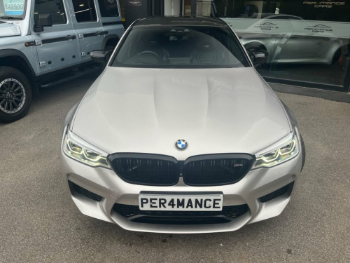 PER4MANCE CARS ARE DELIGHTED TO OFFER THIS STUNNING 2018 BMW M5 4.4I V8 SALOON (625PS) FINISHED IN INDIVIDUAL RHODINITE SILVER WITH FULL BLACK INDIVIDUAL MERINO LEATHER INTERIOR WITH PIANO BLACK TRIM FINISHER, THIS BMW COMES WITH EXTENDED BMW WARRANTY UNTIL APRIL 2026, ONLINE ENTERTAINMENT, M CARBON ENGINE COVER, SUN PROTECTION GLAZING, CERAMIC FINISH FOR CONTROLS, HEATED STEERING WHEEL, THROUGH - LOADING SYSTEM, BMW PROFESSIONAL MULTIMEDIA WITH SATELLITE NAVIGATION, APPLE CAR PLAY, BLUETOOTH AND DAB, HARMAN KARDON, HEAD UP DISPLAY, CRUISE CONTROL WITH BRAKE FUNCTION, REVERSE CAMERA, FRONT AND REAR PARK ASSIST, TYRE PRESSURE MONITOR, 20" BI-COLOUR ALLOY WHEELS, CARBON FIBRE ROOF, M REAR SPOILER, POWER FOLDING DOOR MIRRORS, BMW ADAPTIVE LED HEADLIGHTS, 4 ZONE CLIMATE CONTROL, AMBIENT LIGHTING, DRIVERS MEMORY SEATS, HEATED FRONT SEATS, M SEAT BELTS AND MUCH, MUCH MORE... CAR MAY NOT BE ON SITE PLS CALL! Full dealer facilities available, Finance available, please apply via our website or call for a quote. We have a team of experienced buyers who hand pick our cars from all parts of the UK so you can buy with confidence all vehicles are HPI Clear and prepared to the highest standard. We believe in providing our customers with a personal and first class level of service,Full dealer facilities available, Part exchanges welcomed. CONTACT OUR EXPERIENCED SALES TEAM ON 0333 988 7777 OR EMAIL [email protected]. 20GB Hard Disc Drive HDD Memory, 20in Alloy Wheels - Y-Spoke Style 789 M , Access to BMW Connected Plus (12 Month S, Active Air Stream Kidney Grille, Active Guard, Additional 12V Power Socket, Air Conditioning - Automatic with Four Z, Airbags, Alarm System - Thatcham 1 with Remote Co, All Round Anti-Corrosion System, Ambient Lighting, Anti Roll Bars - Front and Rear, Armrests, BMW ConnectedDrive Online Services, BMW ConnectedDrive Services, BMW Emergency Call, BMW Gesture Control, BMW Icon Adaptive LED Headlights, BMW Individual High-Gloss Shadowline wit, BMW Professional Radio with Single CD Pl, BMW TeleServices, Battery in Luggage Compartment with Jump, Bootlid Operation - Powered, Brake A