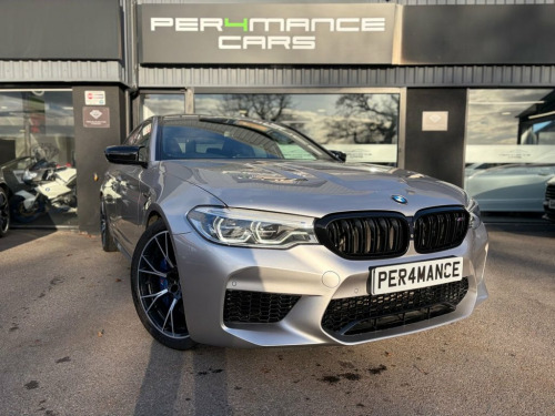 PER4MANCE CARS ARE DELIGHTED TO OFFER THIS STUNNING 2018 BMW M5 4.4I V8 SALOON (625PS) FINISHED IN INDIVIDUAL RHODINITE SILVER WITH FULL BLACK INDIVIDUAL MERINO LEATHER INTERIOR WITH PIANO BLACK TRIM FINISHER, THIS BMW COMES WITH EXTENDED BMW WARRANTY UNTIL APRIL 2026, ONLINE ENTERTAINMENT, M CARBON ENGINE COVER, M5 CS BONNET, SUN PROTECTION GLAZING, CERAMIC FINISH FOR CONTROLS, HEATED STEERING WHEEL, THROUGH - LOADING SYSTEM, BMW PROFESSIONAL MULTIMEDIA WITH SATELLITE NAVIGATION, APPLE CAR PLAY, BLUETOOTH AND DAB, HARMAN KARDON, HEAD UP DISPLAY, CRUISE CONTROL WITH BRAKE FUNCTION, REVERSE CAMERA, FRONT AND REAR PARK ASSIST, TYRE PRESSURE MONITOR, 20" BI-COLOUR ALLOY WHEELS, CARBON FIBRE ROOF, M REAR SPOILER, POWER FOLDING DOOR MIRRORS, BMW ADAPTIVE LED HEADLIGHTS, 4 ZONE CLIMATE CONTROL, AMBIENT LIGHTING, DRIVERS MEMORY SEATS, HEATED FRONT SEATS, M SEAT BELTS AND MUCH, MUCH MORE... CAR MAY NOT BE ON SITE PLS CALL! Full dealer facilities available, Finance available, please apply via our website or call for a quote. We have a team of experienced buyers who hand pick our cars from all parts of the UK so you can buy with confidence all vehicles are HPI Clear and prepared to the highest standard. We believe in providing our customers with a personal and first class level of service,Full dealer facilities available, Part exchanges welcomed. CONTACT OUR EXPERIENCED SALES TEAM ON 0333 988 7777 OR EMAIL [email protected]. 20GB Hard Disc Drive HDD Memory, 20in Alloy Wheels - Y-Spoke Style 789 M , Access to BMW Connected Plus (12 Month S, Active Air Stream Kidney Grille, Active Guard, Additional 12V Power Socket, Air Conditioning - Automatic with Four Z, Airbags, Alarm System - Thatcham 1 with Remote Co, All Round Anti-Corrosion System, Ambient Lighting, Anti Roll Bars - Front and Rear, Armrests, BMW ConnectedDrive Online Services, BMW ConnectedDrive Services, BMW Emergency Call, BMW Gesture Control, BMW Icon Adaptive LED Headlights, BMW Individual High-Gloss Shadowline wit, BMW Professional Radio with Single CD Pl, BMW TeleServices, Battery in Luggage Compartment with Jump, Bootlid Operation - Powered, Brake A