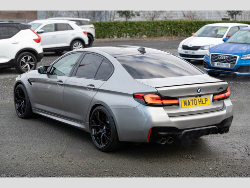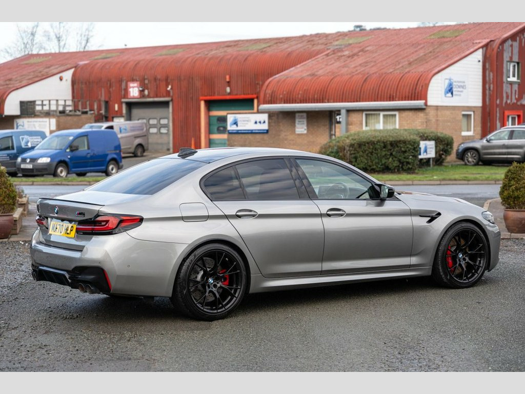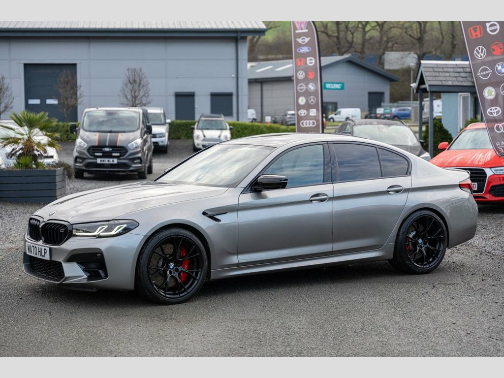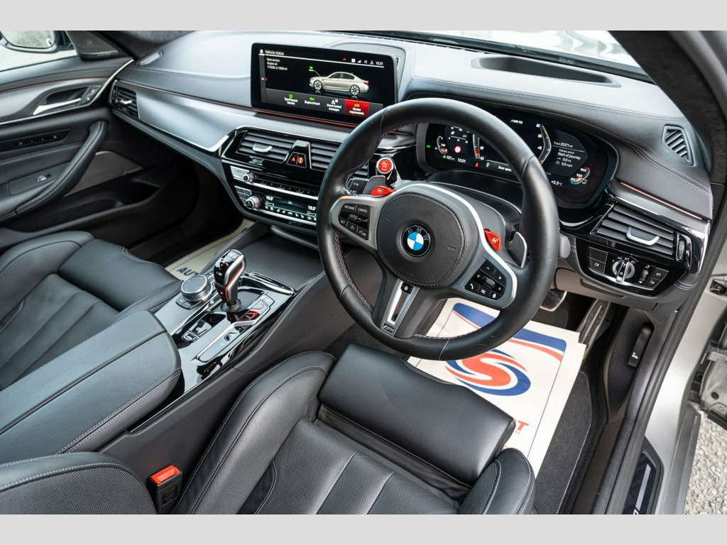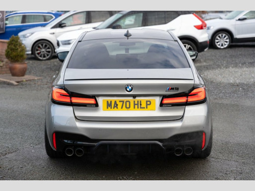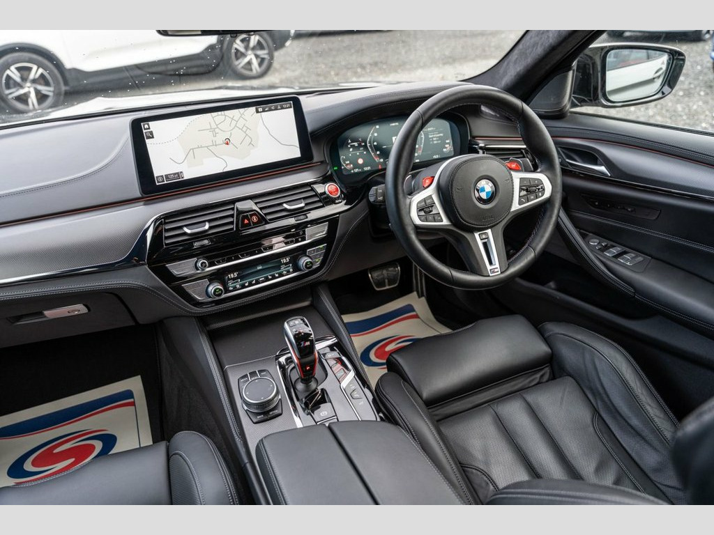 BMW M5 F90 Competition | 2020 | Low Mileage | BMW Warranty I Full BMW Service History Wynford Williams Cars are proud to offer this exceptional 2020 BMW M5 F90 Competition, a flagship high-performance saloon that delivers an outstanding balance of power, luxury, advanced technology and everyday usability. This particular example is presented in immaculate condition, has had only two owners from new, and benefits from a very low mileage of just 25,371 miles. The vehicle has been meticulously maintained throughout its life, comes with a full BMW main dealer service history, and is still covered by the official BMW manufacturer warranty, offering complete peace of mind. Performance & Driving Experience Under the bonnet sits BMW's renowned 4.4-litre twin-turbocharged V8, producing an impressive 625 horsepower. Combined with the advanced M xDrive all-wheel-drive system and an 8-speed M Steptronic automatic transmission, the M5 Competition delivers breathtaking performance while remaining refined, composed and confidence-inspiring in all driving conditions. Despite its performance credentials, the M5 Competition remains exceptionally comfortable and practical, making it a true all-round performance saloon. Specification Highlights This vehicle benefits from an extensive and highly desirable factory specification, including: M5 Competition Package Comfort Package Head-Up Display Soft Close Doors Front Seats with Massage Function Heated & Ventilated Front Seats H 20in Alloy Wheels - M Light Y-Spoke Styl, 32GB Hard Disc Drive HDD Memory, Active Guard, Adaptive Suspension, Air Conditioning - Automatic with Four Z, Airbags, Alarm System - Thatcham 1 with Remote Co, All Round Anti-Corrosion System, Ambient Lighting, Armrests, Automatic Operation of Tailgate, BMW Connected Package Professional, BMW ConnectedDrive Online Services, BMW ConnectedDrive Services, BMW Gesture Control, BMW Individual High-Gloss Shadowline, BMW Individual High-Gloss Shadowline wit, BMW Individual Lights - Shadowline, BMW Legal Emergency Call, BMW Live Cockpit Professional, BMW TeleServices, Battery in Luggage Compartment with Jump, Brake Force Display, Carbon Fibre Roof, Child Se