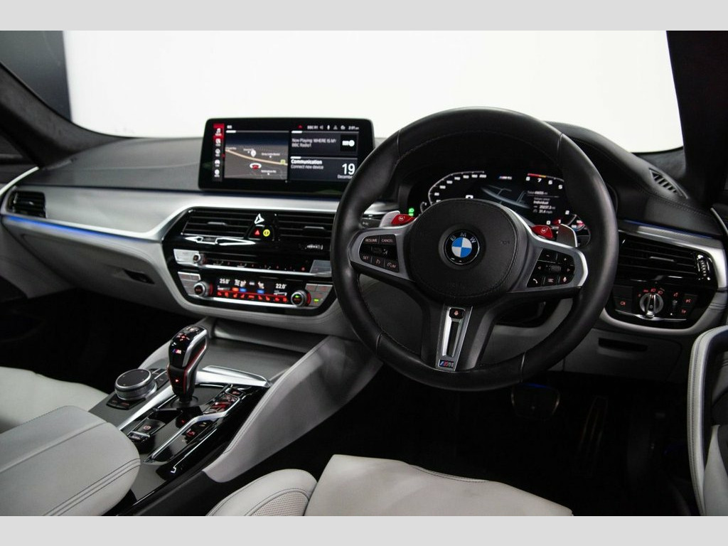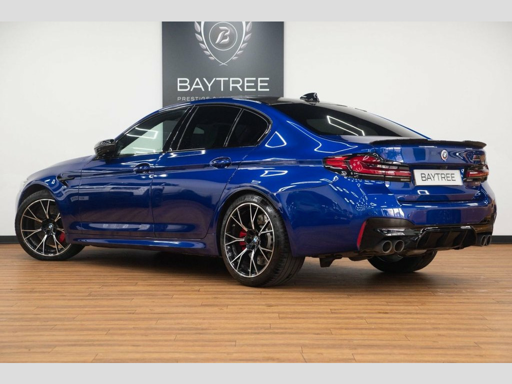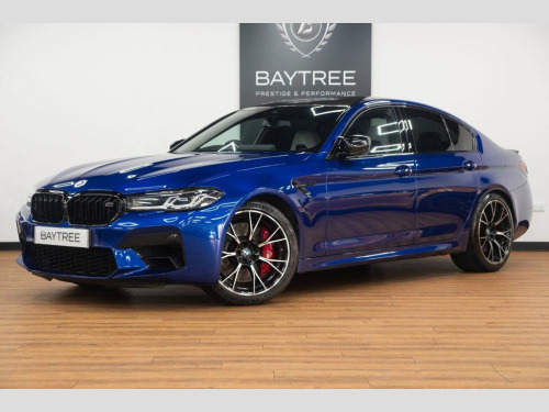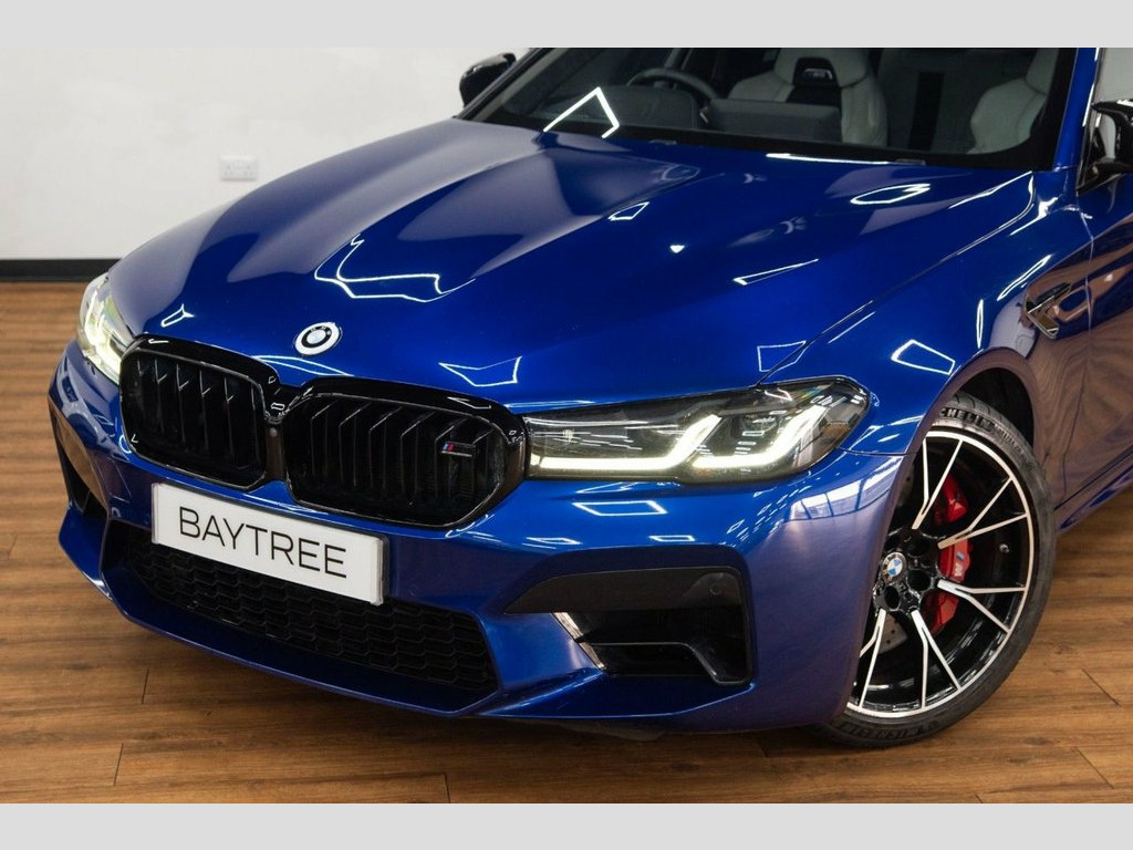 Baytree are delighted to offer for sale this exceptional BMW M5 4.4i V8 Competition, registered November 2021, elegantly presented in Marina Bay Blue with a sleek Silverstone with Black Leather Interior, featuring a set of striking 20" M Y-Spoke Forged Bi-Color Alloy Wheels. This vehicle has travelled 48,924 miles. This BMW boasts an impressive array of features, some of which include: Comfort Plus Package, (Heated/Ventilated Front Seats, Massage Functions, Heated Rear Seats, Four-zone Climate Control, Soft-Close Doors, Heated/Cooled Cupholders, and Comfort Access), Parking Assistant Plus, plus much more. For further details or to schedule a viewing, don't hesitate to contact us. 20in Alloy Wheels - M Light Y-Spoke Styl, 32GB Hard Disc Drive HDD Memory, Active Guard, Adaptive Suspension, Air Conditioning - Automatic with Four Z, Airbags, Alarm System - Thatcham 1 with Remote Co, All Round Anti-Corrosion System, Ambient Lighting, Armrests, Automatic Operation of Tailgate, BMW Connected Package Professional, BMW ConnectedDrive Online Services, BMW ConnectedDrive Services, BMW Gesture Control, BMW Individual High-Gloss Shadowline, BMW Individual High-Gloss Shadowline wit, BMW Individual Lights - Shadowline, BMW Legal Emergency Call, BMW Live Cockpit Professional, BMW TeleServices, Battery in Luggage Compartment with Jump, Brake Force Display, Carbon Fibre Roof, Child Se