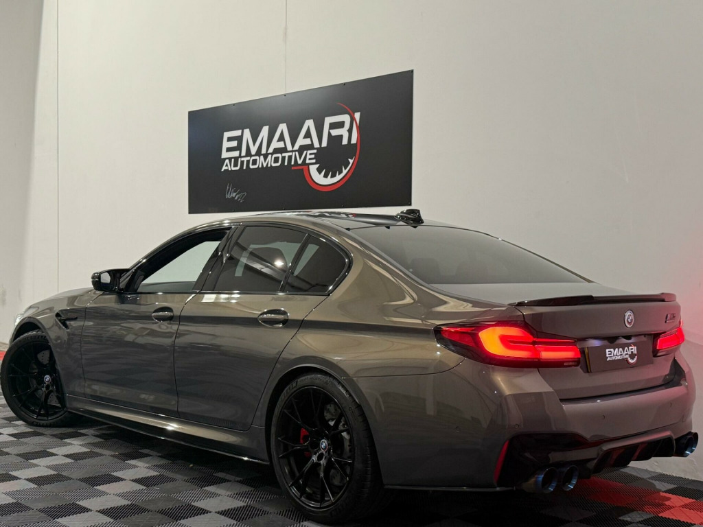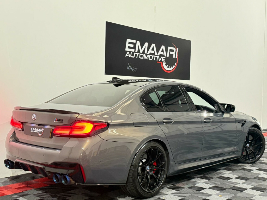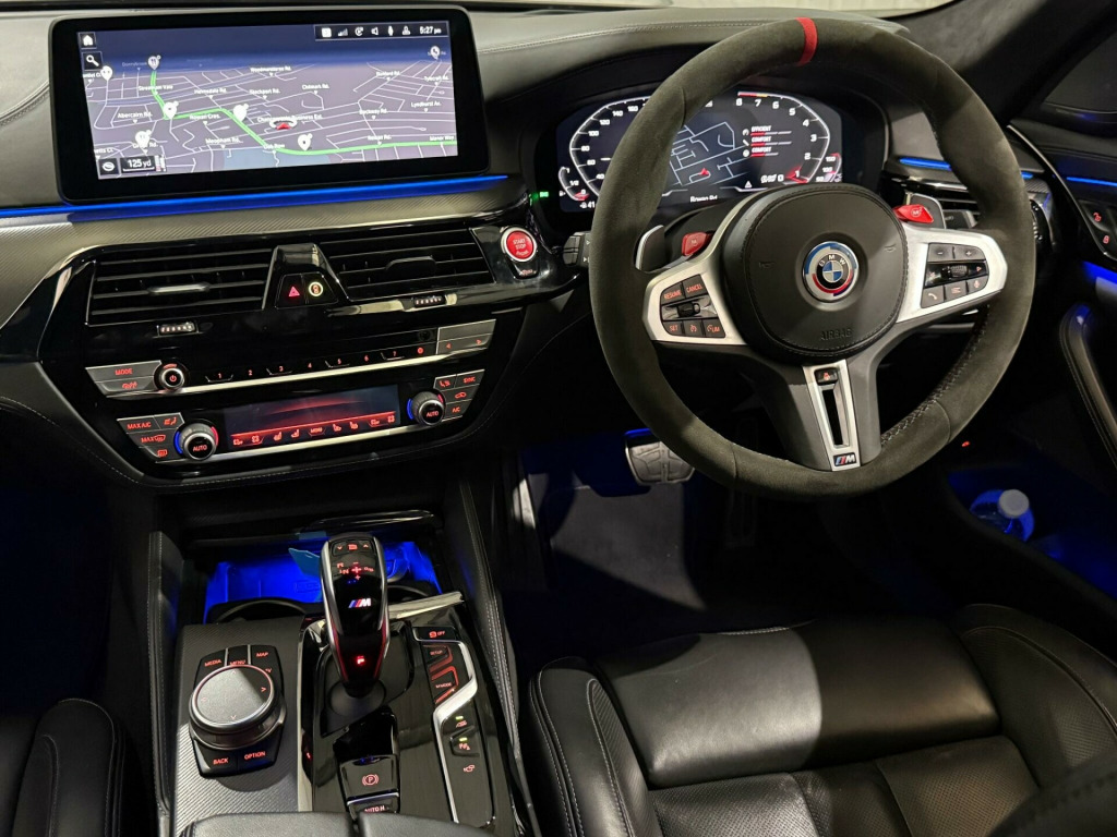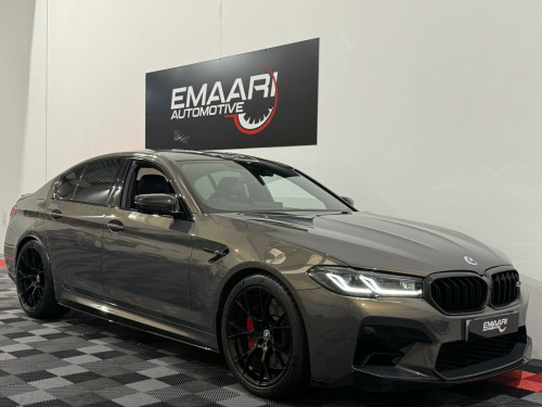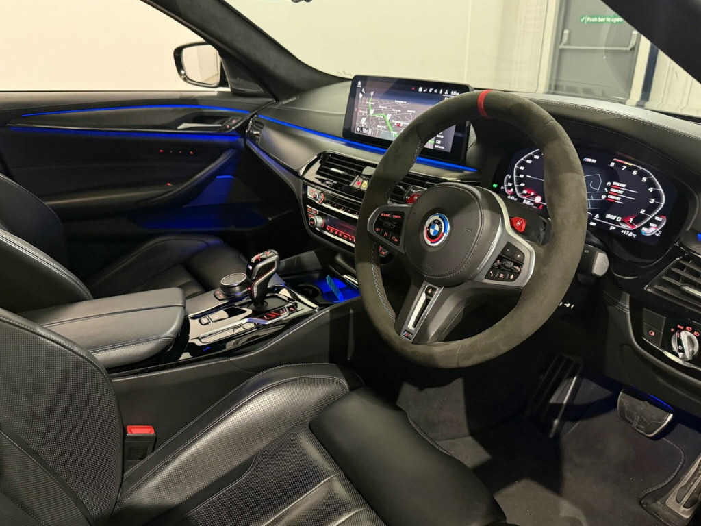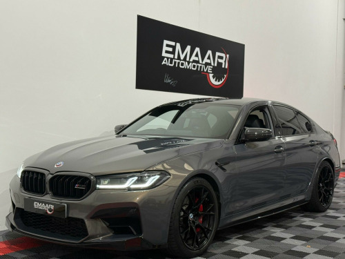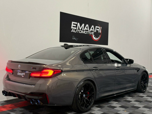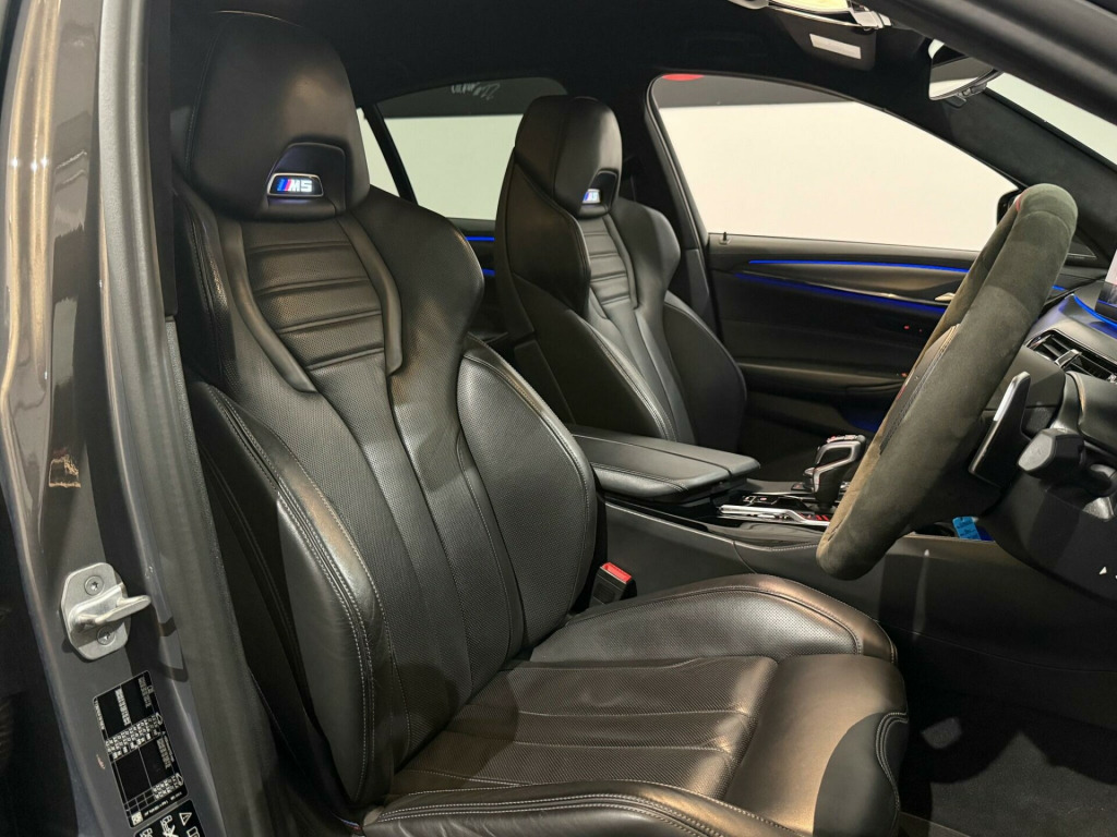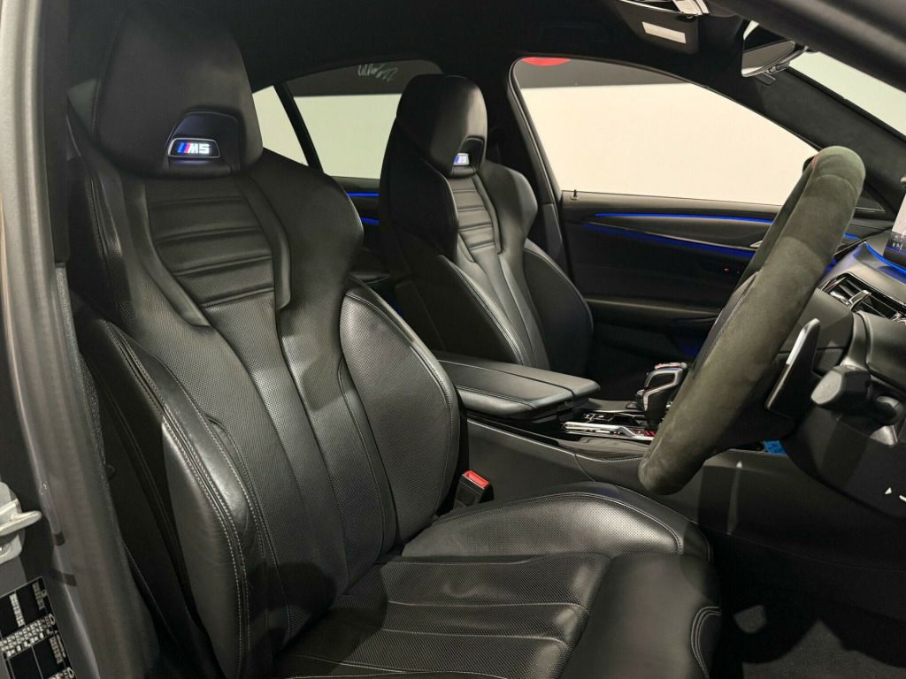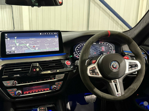 This 2020 BMW M5 i V8 Competition presents an exceptional opportunity with its remarkably low mileage of just 24,000 miles. This Euro 6 compliant saloon boasts a powerful 4.4L petrol engine and a sophisticated four wheel drive system, ensuring dynamic performance. Inside, you'll find the striking Interior Trim in Dark Aluminium Carbon Structure with a Dark Chrome highlight trim finisher. The Comfort Plus Package adds luxurious heated seats and a heated steering wheel, while the Comfort Access System allows for effortless keyless entry. For enhanced safety, the Driving Assistant includes Blind Spot Assistance, and the Adaptive LED headlights provide superior illumination.The M5 i V8 Competition truly excels in its performance capabilities, achieving a breathtaking 0-62mph in just 3.3 seconds, a figure that sets it apart from many other vehicles in its class. This impressive acceleration is complemented by a generous boot space, offering practicality alongside its sporting prowess. The combination of its advanced features, low mileage, and potent engine makes this BMW M5 a standout choice for those seeking a blend of luxury, performance, and everyday usability. mfort plus package, interior trim - dark aluminium carbon structure with highlight trim finisher dark chrome, full merino leather - black with black interior, 20in alloy wheels - m light y-spoke style 789 m bicolour with mixed tyres, 32gb hard disc drive hdd memory, active guard, adaptive suspension, air conditioning - automatic with four zone control, airbags, alarm system - thatcham 1 with remote control and engine immobiliser, all round anti-corrosion system, ambient lighting, armrests, automatic operation of tailgate, bmw connected package professional, bmw connecteddrive online services, bmw connecteddrive services, bmw gesture control, bmw individual high-gloss shadowline, bmw individual high-gloss shadowline with extended contents, bmw individual lights - shadowline, bmw legal emergency call, bmw live cockpit professional, bmw teleservices, battery in luggage compartment with jump start facility in engine bay, brake force display, carbon fibre roof, child seat isofix attachment - outer rear seats - includes top tether, comfort access system, crash sensor - activating central locking - hazard warning lights - fuel cut off - interior lights, cup holders - front x2 and rear x2, dab digital radio, dsc - dynamic stability control - stabilises the vehicle in extreme situations - controls traction, daytime running lights - led, deformation zones - front and rear, door sill finishers - illuminated with m5 designation, double-wishbone front axle, drive recorder, driving assistant, dynamic brake lights with led technology, electric windows - front and rear with open-close fingertip control - anti-trap facility and comfort closing function, electro-mechanical parking brake with automatic drive-away release and auto-hold function, engine cover with m designation, enhanced bluetooth with wireless charging, expanded exterior mirror package, exterior door handle illumination, favourite buttons, first aid kit and warning triangle, floor mats - velour, follow me home headlight function, footwell lights - front and rear, galvanic embellisher for controls, glove compartment - lockable and illuminated, harman kardon surround audio sound system, head restraints - front and rear, head-up display, headlights - adaptive led, headlining - bmw individual alcantara anthracite, high-beam assistant, integral rear axle, interior rear-view mirror with automatic anti-dazzle function, interior trim - aluminium carbon structure with highlight trim finisher pearl chrome, locking wheel bolts, m aerodynamics package, m compound brake - red high gloss, m leather steering wheel, m multifunctional seats for driver and front passenger, m seat belts, m servotronic power steering, m specific exterior mirrors - foldable - electrically adjustable and heated, m sport exhaust system, m steptronic sport transmission - 8-speed with drivelogic - gearshift passles switches on steering wheel, multi-function controls for leather steering wheel, obc - on-board computer, obd - on board diagnosis, oil sensor for level and grade, parking assistant plus, power sockets - 12v - 2 x rear and 1 x luggage compartment - 1 x double usb adapter with 2a charging current, powered by operating system 7.0, rain sensor with automatic headlight activation, reading lights - front and rear, red start-stop button, seat adjustment - electric with memory, seat belts - front - inertia reel with pyrotechnical belt latch tensioner - belt force limiter and belt restrainer, seat belts - rear - three with inertia reel, seat heating - front, side gills with m5 designation, side impact protection, speed limit function, steering column with electric adjustment of height and length, sun protection glass, tpms - tyre pressure monitoring system, telephony with wireless charging, through-loading system, two tone horn, tyre repair kit, wifi hotspot, windscreen washer jets - heated, idrive touch controller with shortcut buttons