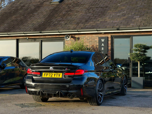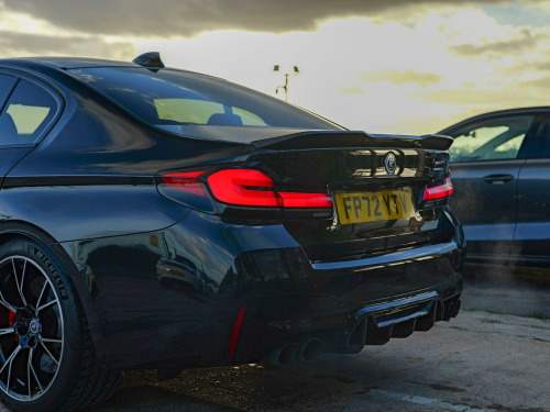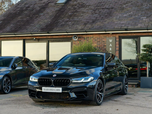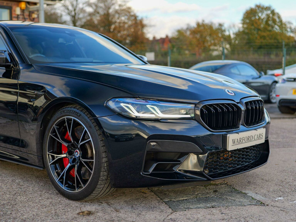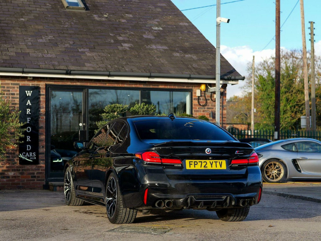 Warford Cars are proud to present this BMW M5 4.4i V8 Competition xDrive finished in Black Sapphire with Black Merino Leather. Standout features include; Carbon Fibre Roof, Carbon Fibre Spoiler, Carbon Fibre Side Sills, Carbon Fibre Front Air intakes, Carbon Fibre Rear Diffuser, Carbon Fibre Wing Mirrors, Sports Exhaust, 360 Reversing Camera, Heated/Ventilated and Message seats, Harman Kardon Surround Audio Sound System, Head-Up Display, Comfort Plus Package, Visibility Pack, Full Merino Black Leather Interior. The car has a full serviced with BMW on; 09/03/2023 at 1536 miles (running in service), 30/05/2024 at 9098 & a brake fluid change on 09/04/2025 at 14637. Viewings by appointment. Competitive Finance Options Available. Warranty Available. Professional GTechniq Accredited Detailing Available.