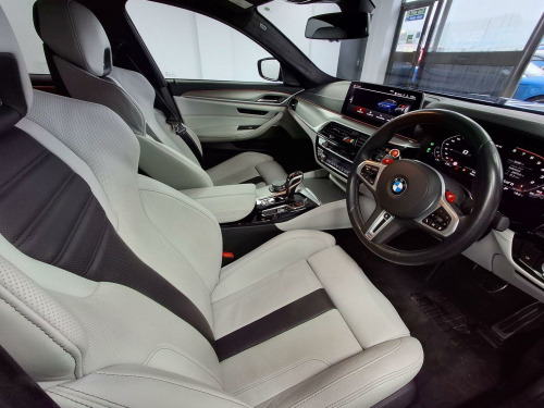 ***VAT Qualifying***1 Owner***Comfort Pack Plus***Visibility Pack***20 Alloys***Full Leather***12 Months MOT***6 Months Warranty***This 2022 BMW M5 i V8 Competition is a superb example, having had only one owner since new. It boasts a powerful 4.4 litre petrol engine and a sophisticated four wheel drive system, all meeting the Euro 6 emission class. This particular model, in Competition trim, comes equipped with desirable features such as a towbar, special BMW M 50 Year badges, and a Visibility Pack that includes advanced LED and Laser headlights. Furthermore, the Comfort Plus Package enhances your driving experience with heated seats and a heated steering wheel, complemented by automatic four zone air conditioning for ultimate comfort. Experience exhilarating performance with this M5, capable of accelerating from 0 to 62 miles per hour in a remarkable 3.3 seconds, a testament to its engineering prowess. The large boot space offers practicality for all your needs, making it as versatile as it is dynamic. These highlights demonstrate how this BMW M5 i V8 Competition stands out, offering a superior combination of speed, comfort, and advanced technology compared to other vehicles in its class.