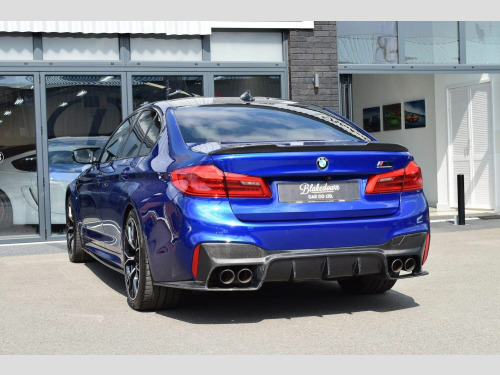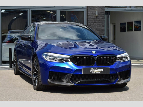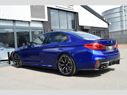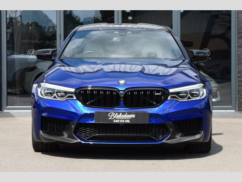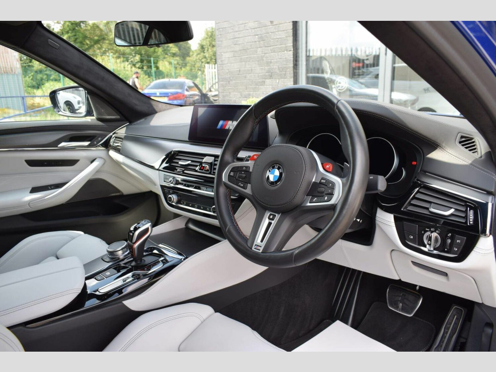 October 2019 69 BMW M5 4.4i V8 Competition Steptronic xDrive finished in beautiful Marina Bay Blue Metallic with Silverstone/Black Full Merino leather interior. Just 10200 miles covered by ONE owner from new. Running-in service completed by BMW in January 2020 and first scheduled service has been completed by BMW June 2021. Exceptional condition inside and out as you would expect and BMW warranty in place until October 2022. Two keys and all correct documentation etc present. In addition to the superb colour combination this M5 also benefits from a full exterior CT Carbon body styling kit at a cost of £1300 which sets this car apart beautifully and includes front splitter, side skirts, 3D style ear diffuser and boot lip spoiler. Superb spec with features to include: BMW Display Key, Sun Protection Glazing, Full Merino Leather - Silverstone with Black Interior, Seat Heating - Front and Rear, Heated Steering Wheel, Through Load System, 20GB Hard Disc Drive HDD Memory, 20in Alloy Wheels - Y-Spoke Style 789 M Bicolour, Four Zone Climate Control, All Round Anti-Corrosion System, BMW ConnectedDrive Services, BMW Gesture Control, BMW Icon Adaptive LED Headlights, Bootlid Operation - Powered, Carbon Fibre Roof, Comfort Access with Smart Opener, Control Display - 10.25in Colour Touch Sensitive Display Screen, Cruise Control with Brake Function, DAB Digital Radio, Driving Assistant, Dynamic Brake Lights with LED Technology, Dynamic Damper Control, Enhanced Bluetooth Telephone Preparation with Wireless Charging, Enhanced and Lowered Chassis -7mm with Improved Driving Dynamics, Exterior Mirrors - Folding with Anti Dazzle, Head-Up Display, High-Beam Assistant, Launch Control, Loudspeaker System - Harman Kardon, Lumbar Support - Driver and Front Passenger, M Multifunctional Seats for Driver and Front Passenger, M Sport Exhaust System, Navigation System - BMW Professional Multimedia, PDC - Park Distance Control - Front and Rear, Parking Assistant Plus, Rain Sensor with Automatic Headlight Activation, Reversing Assist Camera, Electric Seats and more. FINANCE FROM 6.9% APR | GTECHNIQ DETAILING & CERAMIC COATINGS | XPEL PAINT PROTECTION FILM