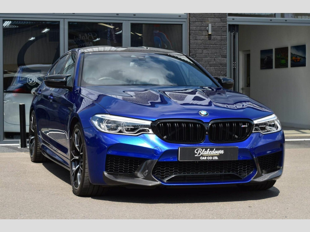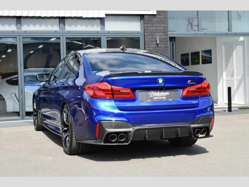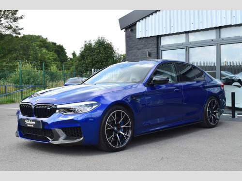 October 2019 69 BMW M5 4.4i V8 Competition Steptronic xDrive finished in beautiful Marina Bay Blue Metallic with Silverstone/Black Full Merino leather interior. Just 10200 miles covered by ONE owner from new. Running-in service completed by BMW in January 2020 and first scheduled service has been completed by BMW June 2021. Exceptional condition inside and out as you would expect and BMW warranty in place until October 2022. Two keys and all correct documentation etc present. In addition to the superb colour combination this M5 also benefits from a full exterior CT Carbon body styling kit at a cost of £1300 which sets this car apart beautifully and includes front splitter, side skirts, 3D style ear diffuser and boot lip spoiler. Superb spec with features to include: BMW Display Key, Sun Protection Glazing, Full Merino Leather - Silverstone with Black Interior, Seat Heating - Front and Rear, Heated Steering Wheel, Through Load System, 20GB Hard Disc Drive HDD Memory, 20in Alloy Wheels - Y-Spoke Style 789 M Bicolour, Four Zone Climate Control, All Round Anti-Corrosion System, BMW ConnectedDrive Services, BMW Gesture Control, BMW Icon Adaptive LED Headlights, Bootlid Operation - Powered, Carbon Fibre Roof, Comfort Access with Smart Opener, Control Display - 10.25in Colour Touch Sensitive Display Screen, Cruise Control with Brake Function, DAB Digital Radio, Driving Assistant, Dynamic Brake Lights with LED Technology, Dynamic Damper Control, Enhanced Bluetooth Telephone Preparation with Wireless Charging, Enhanced and Lowered Chassis -7mm with Improved Driving Dynamics, Exterior Mirrors - Folding with Anti Dazzle, Head-Up Display, High-Beam Assistant, Launch Control, Loudspeaker System - Harman Kardon, Lumbar Support - Driver and Front Passenger, M Multifunctional Seats for Driver and Front Passenger, M Sport Exhaust System, Navigation System - BMW Professional Multimedia, PDC - Park Distance Control - Front and Rear, Parking Assistant Plus, Rain Sensor with Automatic Headlight Activation, Reversing Assist Camera, Electric Seats and more. FINANCE FROM 6.9% APR | GTECHNIQ DETAILING & CERAMIC COATINGS | XPEL PAINT PROTECTION FILM