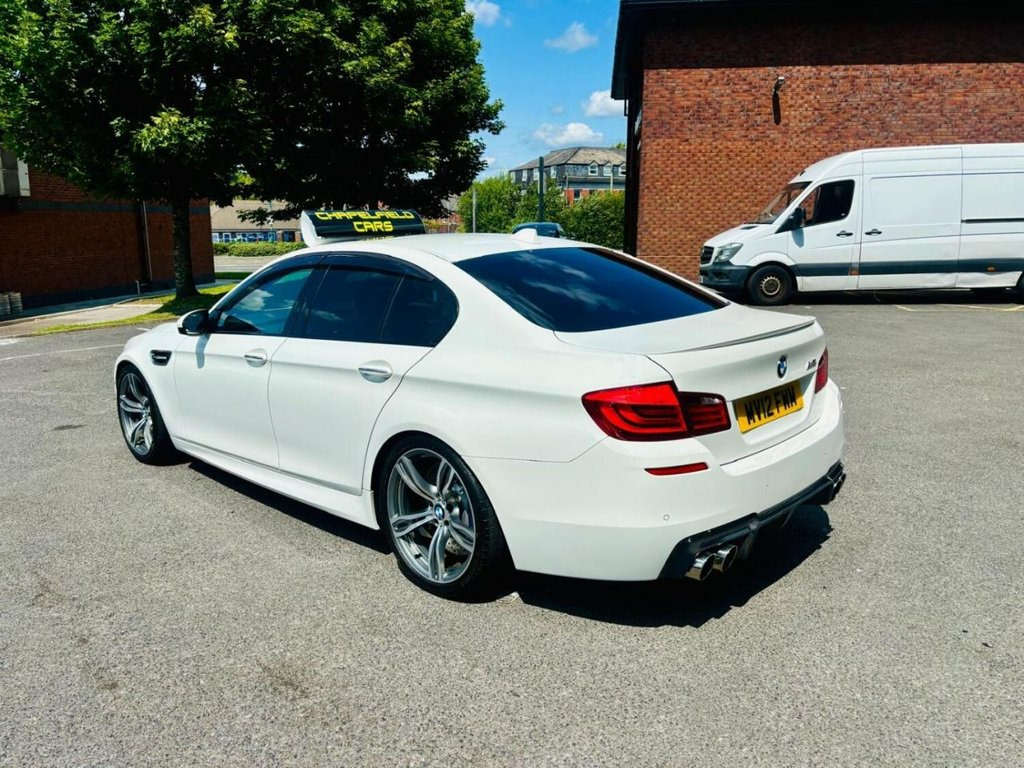 Chapelfield Car Sales are excited to offer this exceptional 2012 BMW M5, finished in white. As one of the most renowned high-performance cars on the UK market, the BMW M5 is a true driver's car. With a powerful 4395cc Petrol engine, this vehicle delivers impressive acceleration and responsive handling. The M5 is a well-regarded model, known for its precise steering and exceptional braking capabilities, making it a joy to drive on the UK's winding roads. The 2012 model year saw significant updates to the M5, including a new engine and revised chassis, making it a highly sought-after model among car enthusiasts. This particular example has been well-maintained and is presented in excellent condition. The white paintwork is immaculate, and the interior is finished to a high standard. If you're a discerning driver looking for a high-performance car that delivers on its promises, this 2012 BMW M5 is an excellent choice. With its impressive engine, precise handling, and premium features, it's an ideal vehicle for anyone who demands the best. We invite you to visit our showroom to experience this exceptional vehicle for yourself. Our knowledgeable and friendly staff will be happy to answer any questions you may have and provide you with a comprehensive overview of the car's features and history. 19in M Light Alloy Wheels, Aluminium shadow Interior Trim, BMW Assist- 6 months subscription, BMW hi- fi 10 Speaker System, Chrome line Exterior, Green tinted Glass, Heat insulated Glass, High gloss Madeira Walnut Wood Trim with, High gloss Natural Olive Carrara Wood Tr, High gloss shadow line, M Sports Front Seats Electric adjust &am, M Sports Front Seats Electric adjust wit, No smoker Package, Roof lining- Anthracite, Smokers Pack
