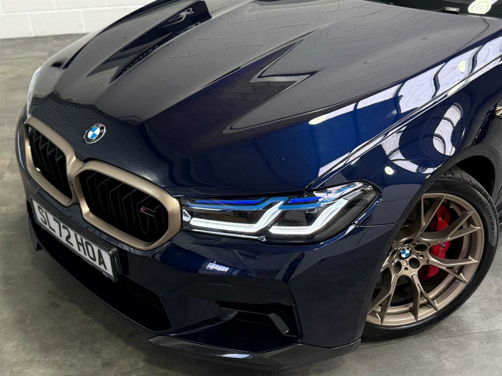 Full Service History, Sat Nav, CS Styling Kit, Carbon Kit, Head Up Display, Harman Kardon Sound System, Apple Car Play, Sport Exhaust, Ambient Lighting, Massage Seats, Rear Climate Control, 32GB Hard Disc Drive HDD Memory,Active Guard,Adaptive Suspension,Air Conditioning - Automatic with Four Zone Control,Airbags,Alarm System - Thatcham 1 with Remote Control and Electronic Engine Immobiliser,All Round Anti-Corrosion System,Ambient Lighting,Armrests,BMW Connected Package Professional,BMW ConnectedDrive Online Services,BMW ConnectedDrive Services,BMW Gesture Control,BMW Individual High-Gloss Shadowline,BMW Individual High-Gloss Shadowline with Extended Contents,BMW Individual Lights - Shadowline,BMW Legal Emergency Call,BMW Live Cockpit Professional,BMW TeleServices,Battery in Luggage Compartment with Jump Start Facility in Engine Bay,Brake Force Display,Carbon Fibre Roof,Child Seat ISOFIX Attachment - Outer Rear Seats - includes Top Tether,Comfort Access System,Crash Sensor - Activating Central Locking - Hazard Warning Lights - Fuel Cut Off - Interior Lights,Cup Holders - Front x2 and Rear x2,DAB Digital Radio,DSC - Dynamic Stability Control - Stabilises the Vehicle in Extreme Situations - Controls Traction,Daytime Running Lights - LED,Deformation Zones - Front and Rear,Door Handle Illumination,Door Handle Inserts in Body Colour,Door Sill Finishers - Illuminated with M5 Competition Designation,Double-Wishbone Front Axle,Drive Recorder,Driving Assistant,Dynamic Brake Lights with LED Technology,Electric Bootlid,Electric Windows - Front and Rear with Open-Close Fingertip Control - Anti-Trap Facility and Comfort Closing Function,Electro-Mechanical Parking Brake with Automatic Drive-Away Release and Auto-Hold Function,Engine Cover with M Designation,Enhanced Bluetooth and Wireless Charging,Favourite Buttons,First Aid Kit and Warning Triangle,Floor Mats - Velour,Folding Side Mirrors with Auto-Dimming,Follow Me Home Headlight Function,Footwell Lights - Front and Rear,Galvanic Embellisher for Controls,Glove Compartment - Lockable and Illuminated,Harman Kardon Surround Audio Sound System,Head-Up Display,Headlights - Adaptive LED,Headlining - BMW Individual Alcantara Anthracite,Headrests - All Seats,High-Beam Assistant,Integral Rear Axle,Interior Trim - Aluminium Carbon Trim Finishers with Pearl Chrome Highlight,Launch Control,Locking Wheel Bolts,M Compound Brakes with Red High Gloss,M Electric Front Sports Seats,M Seat Belts,M Sport Exhaust System,M Sport Leather Steering Wheel,M Sport Spoiler,Multi-Function Controls for Leather Steering Wheel,OBC - On-Board Computer,OBD - On Board Diagnosis,Oil Sensor For Level and Grade,Parking Assistant Plus,Power Sockets - 12v - 2 x Rear and 1 x Luggage Compartment - 1 x Double USB Adapter with 2A Charging Current,Powered By Operating System 7.0,Rain Sensor with Automatic Headlight Activation,Reading Lights - Front and Rear,Rear-View Mirror with Auto-Dimming,Red Start-Stop Button,Seat Belts - Front - Inertia Reel with Pyrotechnical Belt Latch Tensioner - Belt Force Limiter and Belt Restrainer,Seat Belts - Rear - Three with Inertia Reel,Seat Heating - Front,Servotronic Steering,Side Impact Protection,Speed Limit Function,Split Folding Rear Seat,Steering Column with Electric Adjustment of Height and Length,Steering Wheel - Gearshift Paddles,Sun Protection Glass,Two Tone Horn,Tyre Pressure Sensors,Tyre Repair Kit,WiFi Hotspot,Windscreen Washer Jets - Heated,iDrive Touch Controller with Shortcut Buttons,Comfort Plus Package,Full Merino Leather - Silverstone with Black Interior,Tanzanite Blue,Visibility Pack,20" CS Style Alloys,CS Replica