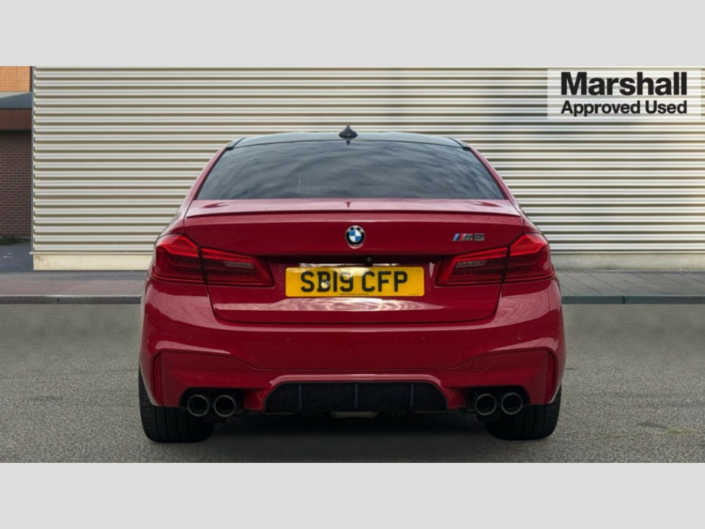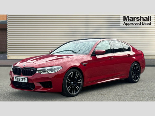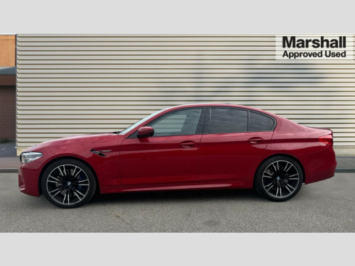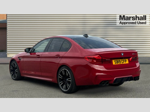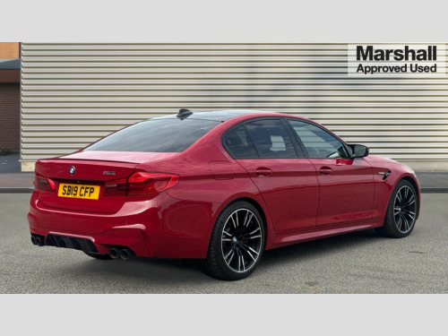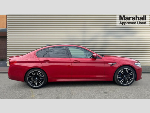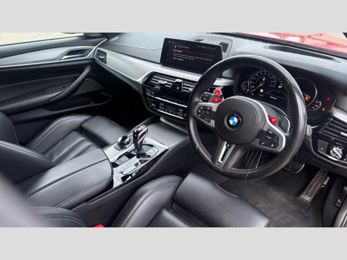 BMW M5 M5 4dr DCT 20GB Hard drive, Automatic bootlid operation, BMW Online services, BMW remote services, BMW Teleservices, Brake force display, City brake control, Comfort access system with smart opener, Digital cockpit, Enhanced bluetooth with wireless charging, Front/rear Parking distance control, Head up Display, iDrive controller and display with 10.2" colour display monitor, Lane departure and rear collision warning system, Navigation System Professional Multimedia, On board computer, On-board diagnosis - OBD, Outside temperature display, Park assist plus, Personal Profile, Real time traffic information, Rear cross traffic alert, Reversing camera, Service interval indicator, Servotronic PAS, Speed limiter, Voice control system, Wifi hotspot preparation, Adaptive drive with variable damper control, Anti-roll bars, Petrol Particulate Filter, BMW professional radio/DVD/MP3, DAB Digital radio, Gesture control for infotainment system, USB socket, Anti-corrosion treatment, Auto dimming door mirrors, Auto dimming rear view mirror, Body colour door handles, Body coloured bumpers, Body coloured door mirrors, Body coloured side sills, Chrome kidney grille with chrome fronted double black vertical slats, Dynamic brake lights, Electric folding and heated door mirrors, Electric front and rear windows with fingertip open/close + anti-trap all round, Follow me home headlights, Four chrome exhaust tailpipes, Heated windscreen washer jets, High beam assistant, Icon Adaptive LED headlights, Illuminated door handles, Individual door sill finishers, LED daytime running lights, M rear spoiler, M side gills with M5 logo, Rain sensor with auto light activation system, 12V power point front, 4 zone control automatic air conditioning, Additional 12V sockets in rear and luggage compartment + twin USB charging sockets, Alcantara headlining in anthracite, Ambient interior lighting, Anthracite Velour floor mats, Battery in luggage with jump start facility, Electric adjustable steering column, Front centre armrest with storage compartment, Front cupholders x 2, Front footwell lights, Front reading lights, Front/rear armrests within door panels, Gearshift paddles, Heated front seats, Illuminated glovebox with lock, Isofix rear child seat preparation, M leather steering wheel, M Sport multi-function front seats with electric lumbar support and driver memory, Multi-function controls for steering wheel, Rear centre armrest with 2 cupholders + storage, Rear footwell lights, Rear headrests, ABS/EBD, Automatic Stability Control (ASC), BMW emergency call, Brake assist function, Brake energy regeneration, Cornering brake control (CBC), Crash Sensor - activates hazard/interior lighting + unlocks doors, Door reinforcements, Driver/front passenger side airbags, Driver/Passenger airbags (Impact dependent), DSC - Dynamic Stability Control, DSC+, Dual horn, Dynamic brake control, Dynamic Traction Control - DTC, Electromechanical parking brake, Front and rear head airbags, Front head restraints with anti-whiplash, Front passenger airbag deactivation, Fuel cut off safety device, Hill start assist, Inertia reel front seatbelts+pretensioners, Motor Slip Regulation (MSR) - Engine Drag Torque Control, Side impact protection, Three inertia reel rear seatbelts, Tyre pressure monitoring system, Warning triangle and first aid kit, Automatic drive away locking facility, Engine immobiliser, Locking wheel bolts, Remote central locking, Remote control Thatcham category 1 alarm, Tyre mobility system