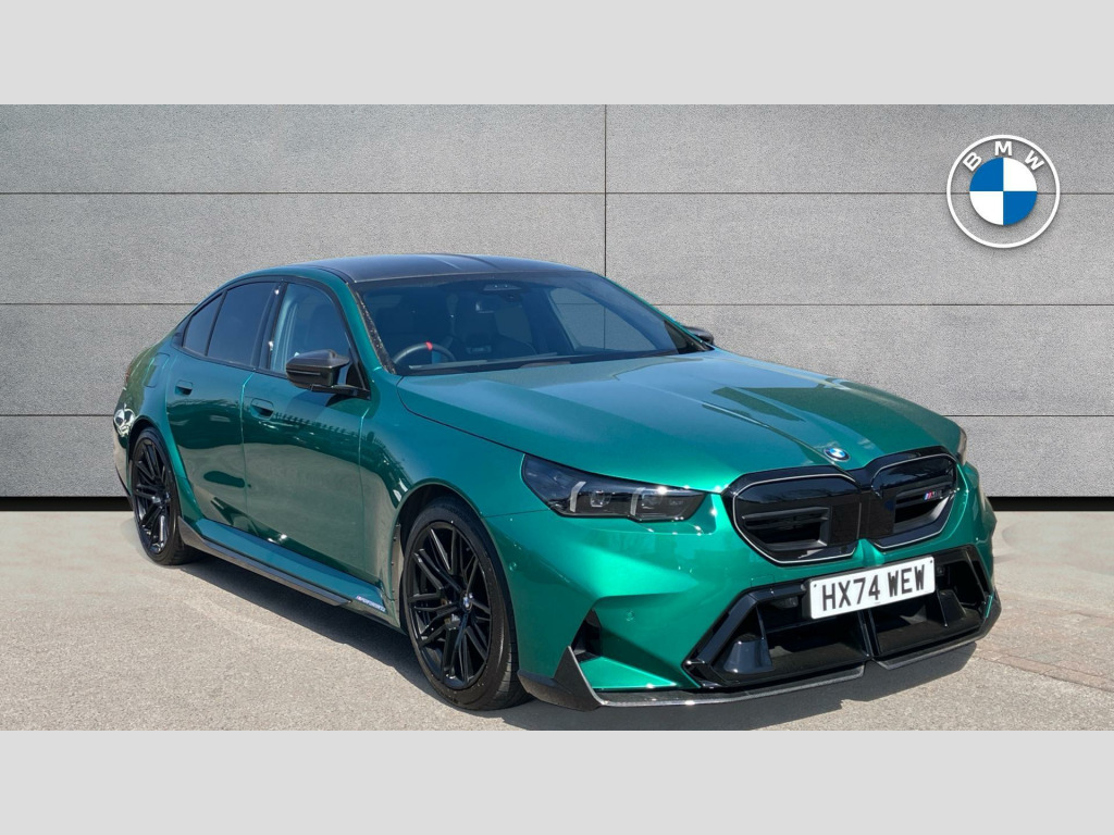 This BMW M5, registered in 2024, is a high-performance car that combines luxury with thrilling driving dynamics. It features a petrol plug-in hybrid powertrain and a 4.4-litre engine, delivering both power and efficiency. The car has had only one previous owner and boasts several desirable packages, including the Ultimate Package, M Drivers Package, and M Carbon Exterior Package. Rolling on eye-catching 20in-21in Alloy Wheels - M Light 951 M Black with Mixed Tyres, this M5 makes a statement wherever it goes. With its four-wheel-drive system, it offers enhanced stability and control in various driving conditions.