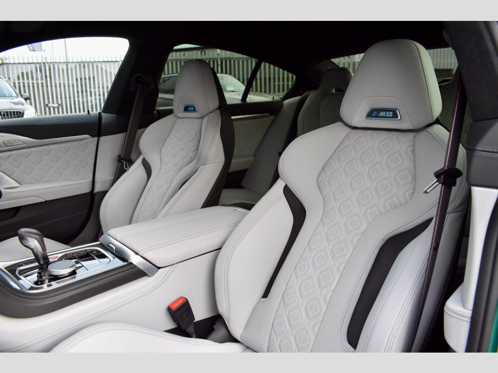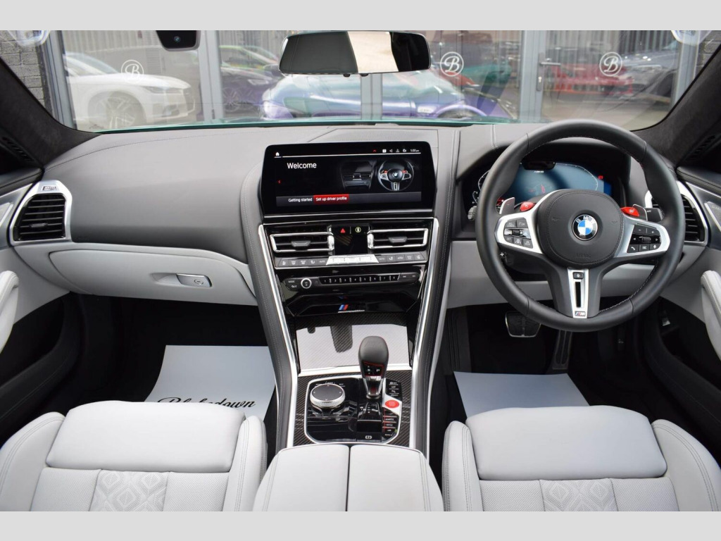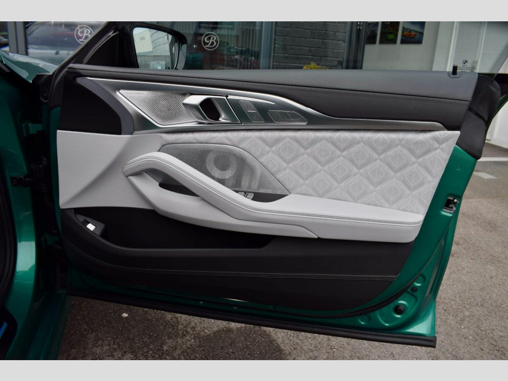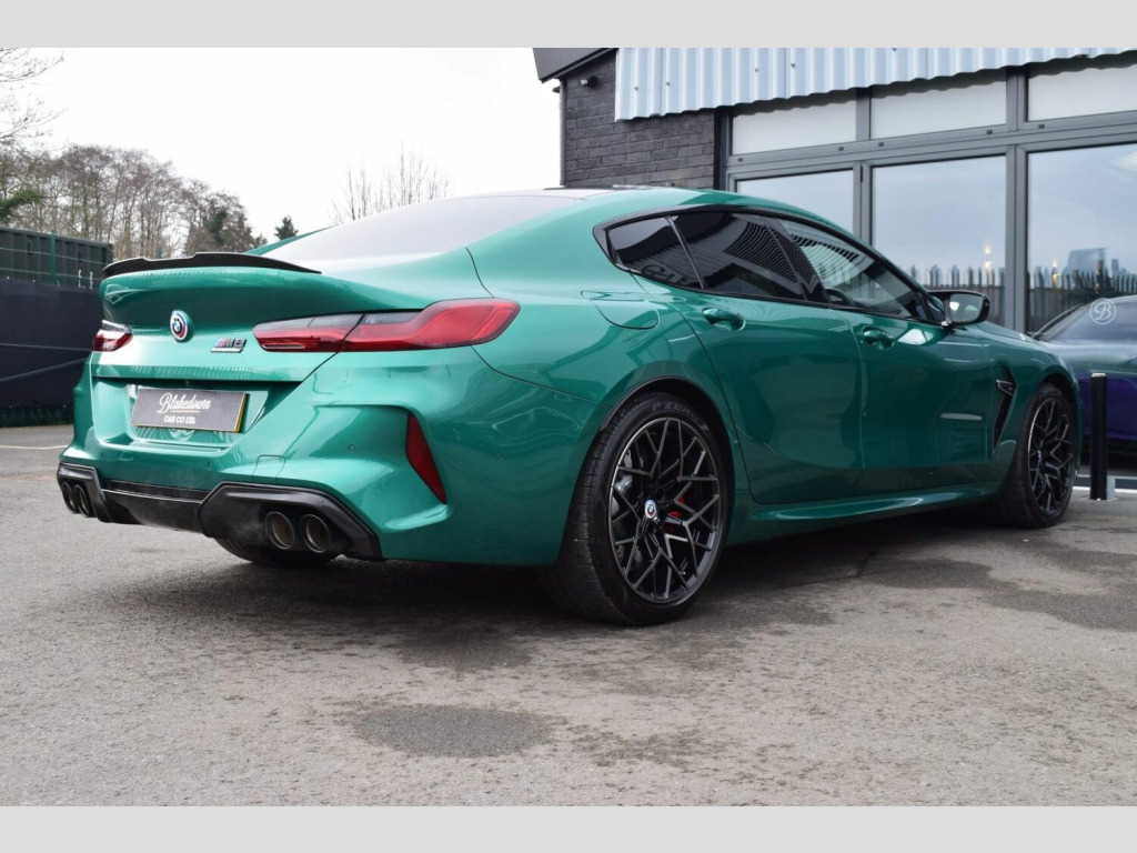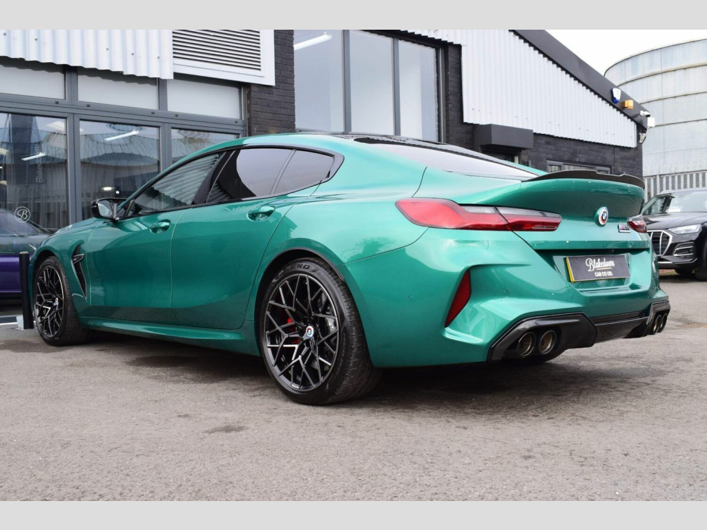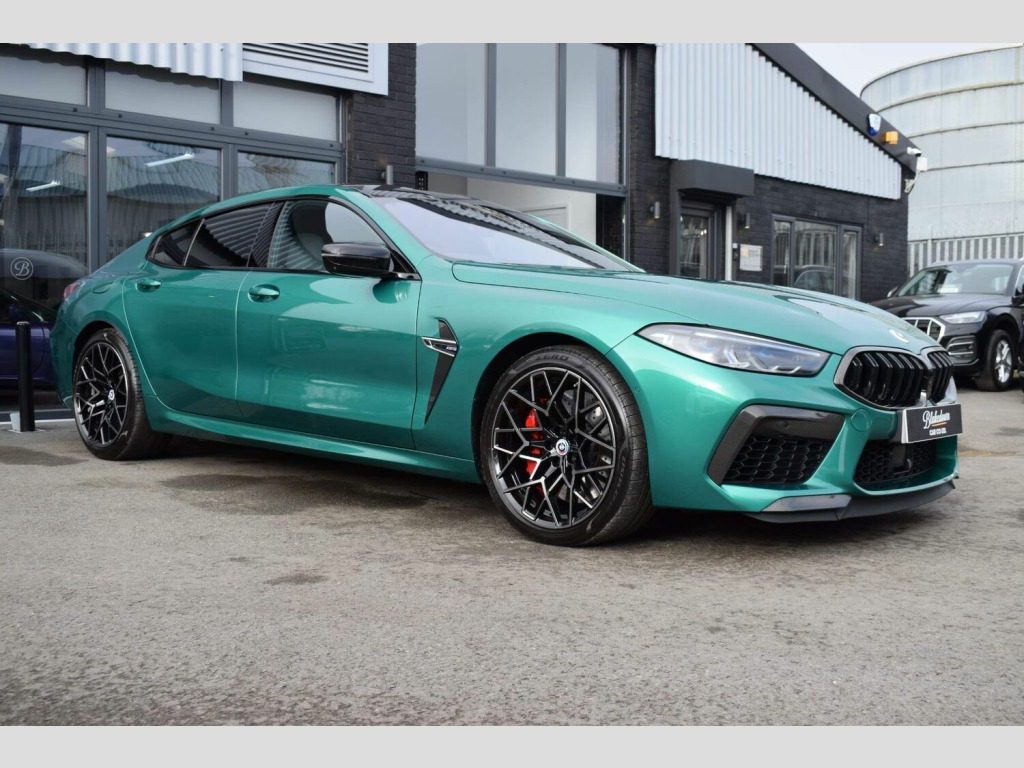 July 2022 22 BMW M8 Gran Coupe 4.4 M8i V8 Competition 4WD finished in Isle of Man Green Metallic with full Silverstone Merino leather interior. Just 6200 miles covered with running in service completed on 684 miles by Sytner BMW Coventry. Presented in flawless showroom condition, this M8 is boasting an excellent spec with a host of sought after option packages fitted including: Technology Plus Pack (Bowers & Wilkins Diamond Surround Sound System and Driving Assistant Professional, Comfort Plus Package (Active front seat ventilation, font Heat Comfort package, electric Sunblinds – rear windscreen, electric Sunblinds – rear side windows, Visibility Pack (BMW Laserlights inc three lighting levels and LED low and high-beam headlights, position lights, daytime driving lights, direction indicators, cornering lights, Adaptive headlights and BMW Selective Beam), BMW M 50 Year Badges and Full Merino Leather - Silverstone with Black Interior. Supplied with two keys and with the remainder of BMWs manufacturer warranty which extends until July 2025.