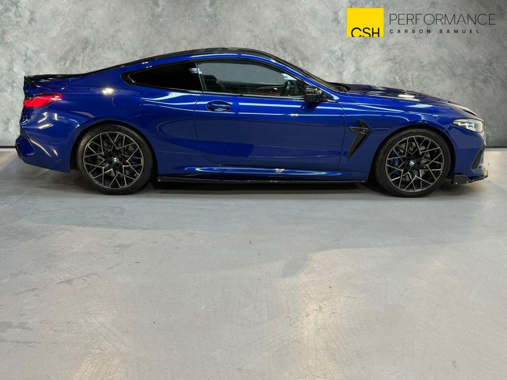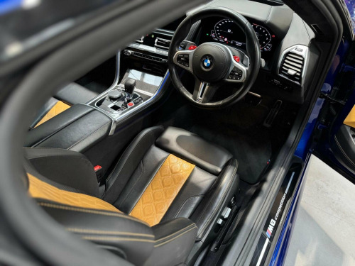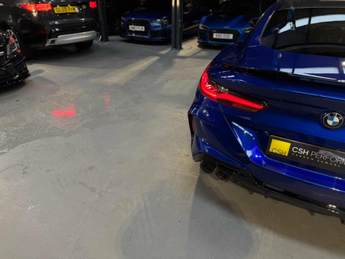 BMW M8 Competition finished in the signature San Marina blue metallic with 20 813M diamond cut alloys with smoked lacquer. From factory the car comes with a fantastic specification which includes head up display, 360 parking camera, parking sensors front & rear, carbon roof, carbon interior trims, car play, electric seats with driver memory function, heated seats, sun protection glazing, full merino leather with alcantara inserts and contrast midrand beige stitching which we think just looks amazing against the blue paint!, 2 keys, full service history including running in service. Maxton front splitter, side skirts & boot lip. At CSH Performance we offer extended warranties, immobilisers and tracking devices, ceramic coating, styling kits and more - enquire with , us today. All vehicles undergo comprehensive health checks and are sold with warranty packages. Contact us today to enquire - , appointment only due to multiple sites. Finance available. Part exchange welcome. 01484 94110