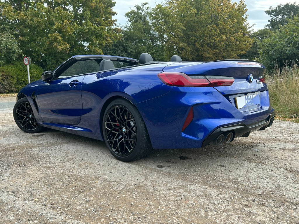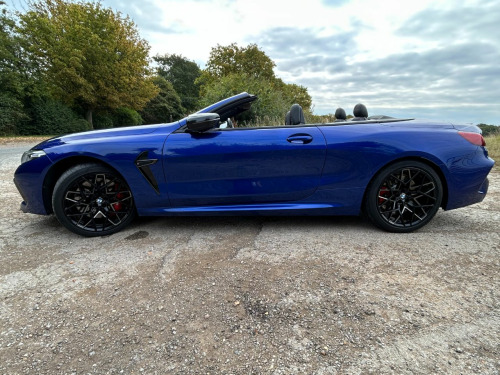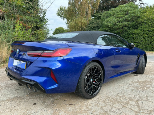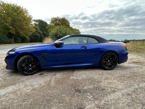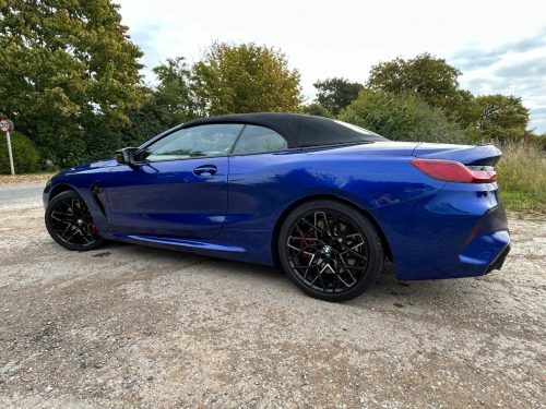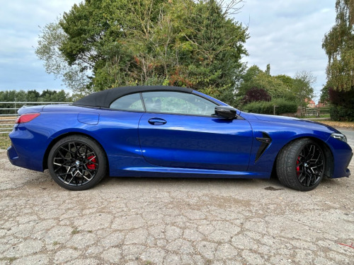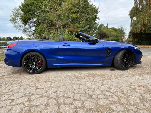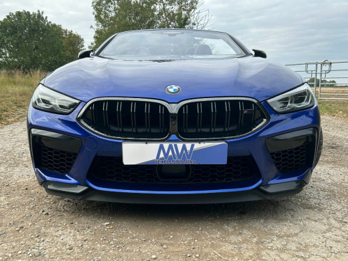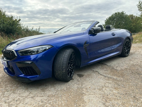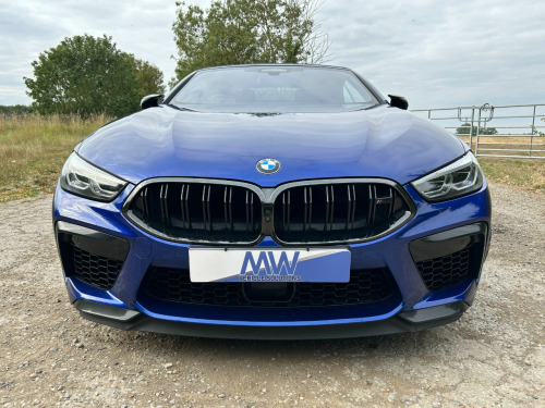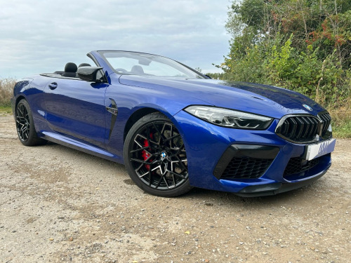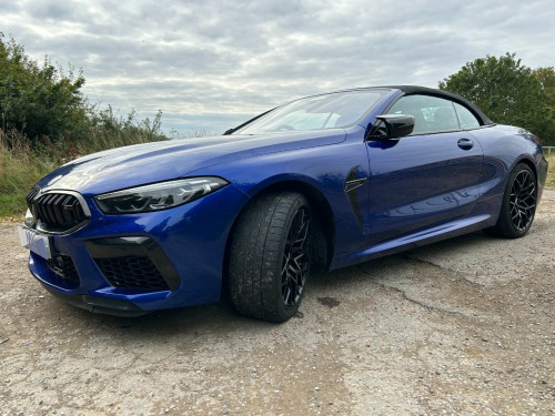For Sale - "The Ultimate Driving Machine" a beautiful BMW M8 Competition Convertible. This stunning top of the range car simply has to be viewed to fully appreciate its impressive specification and amazing head turning looks, Enjoy this summer weather in style!. Finished in San Marino Metallic Blue Paint with Luxury Quilted Black Leather Interior, this car has to be the best colour combination. The Specification of this example is incredible and includes 20 inch Gloss Black Alloy Wheels, Electrically Operated Soft Top, Electric Memory Front Seats that are also Heated and Ventilated, Head-Up Display, Cruise Control, Sat Nav, Bluetooth, Heated Steering Wheel and Paddle Shifts to Manually Control the Automatic Gearbox should you choose. The Sound and Power offered by the 4.4 litre V8 Petrol Engine are just next level and once again remind you constantly that you are in very very special car. The car is in stock with us near Hull in East Yorkshire and we welcome any viewings and inspections, as we are FCA approved we can also assist with finance if required. Contact us today for more information or to book an appointment to see the car for yourself.