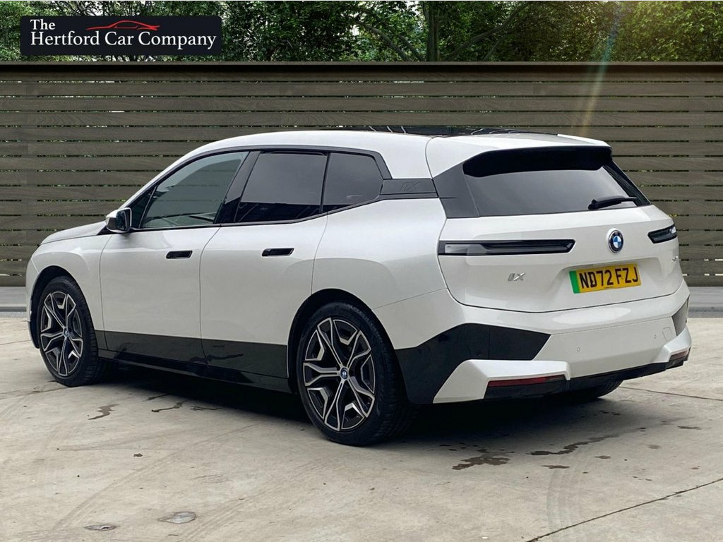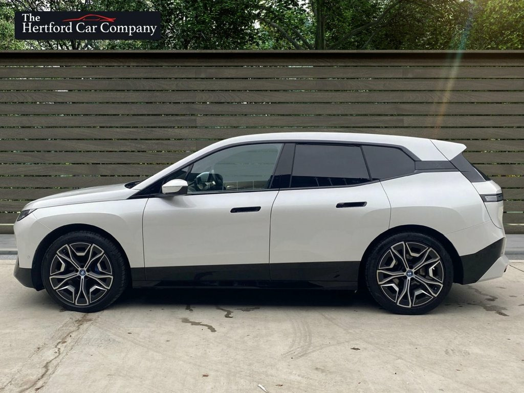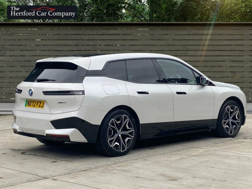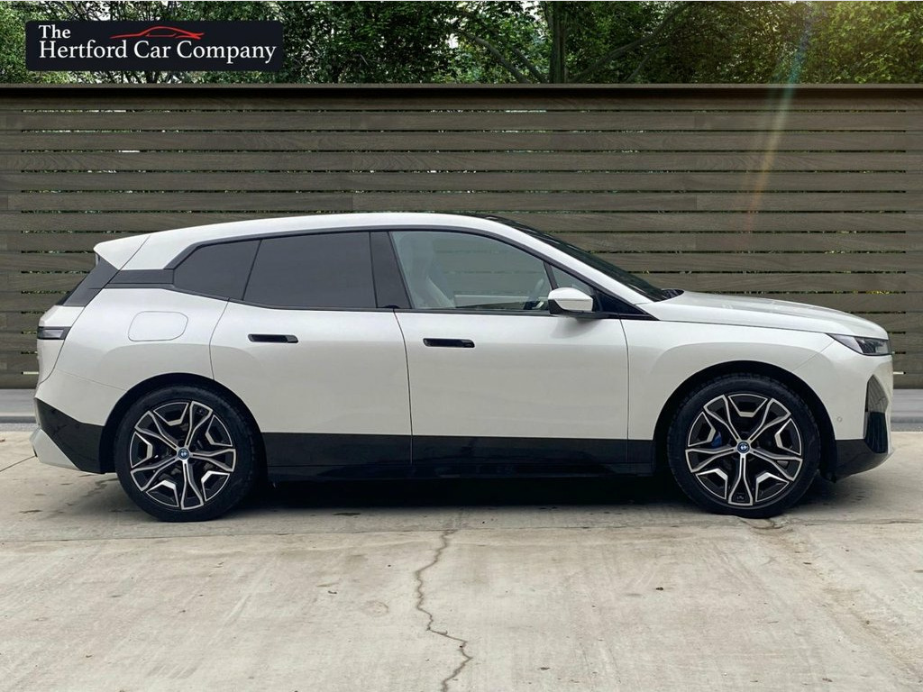 This 2022 BMW iX 40 M Sport Edition is a superb example, having had only one owner since new. This electric vehicle boasts a four wheel drive drivetrain and a 77 kWh battery, offering a maximum range of 256 miles when new. Charging is convenient, with a full charge at home on a 7kW charger taking approximately 10 hours and 45 minutes, while rapid public charging can take it from empty to 80% in just 34 minutes. This impressive model also features front electric seats with massage functions and memory, striking 22 inch Individual Aero alloy wheels, a Parking Assistant with a rear camera, and the BMW Live Cockpit Plus with Bluetooth connectivity. Powerful LED headlights complete the sophisticated exterior. Experience exhilarating performance with this BMW iX, capable of accelerating from 0 to 60mph in a swift 6.1 seconds. This capability, combined with its substantial 2500 kg towing weight, sets it apart from many other electric vehicles. The inclusion of features like the advanced Parking Assistant and the comprehensive BMW Live Cockpit Plus further enhance its appeal, demonstrating a commitment to both driver convenience and cutting edge technology. This iX 40 M Sport Edition offers a compelling blend of electric efficiency, dynamic driving, and premium comfort. 12V Power Socket - Centre Console, 12V Power Socket - Luggage Compartment, 21in Allow Wheels - Bi-Colour Aero - 101, 2x USB Type C - Charging on the Back Sid, 2x USB Type C - Charging-Data in Cuphold, ABS - Anti Lock Braking System, AC Charging up to 11kW, Acoustic Protection for Pedestrians, Active Protection, Air Conditioning - Automatic with Four Z, Airbags - Driver, Airbags - Driver and Front Passenger Sid, Airbags - Passenger, Alarm System, Ambient Lighting, Armrest - Rear Centre, Attentiveness Assistant, BMW Connected Package Professional, BMW ConnectedDrive Online Services, BMW Emblem on Engine Compartment Lid and, BMW Emergency Call, BMW ID, BMW Iconic Sounds - Electric, BMW Live Coc