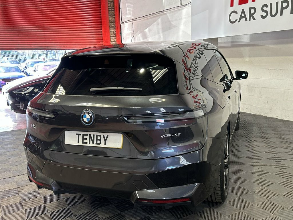 BMW IX 40 76.6kWh M Sport Edition SUV 5dr Electric Auto xDrive (326 ps), COMES WITH; -PANROOF WITH ELECTROCHROMIC SHADING -HARMAN KARDON AUDIO SYSTEM -REVERSE CAMERA -ELECTRIC TOWBAR -22 INCH ALLOYS -HIGH BEAM ASSIST -DIGITAL COCKPIT -FRONT HEATED SEATS -FRONT AND REAR PARKING SENSORS -DRIVE MODES -ELECTRIC TAILGATE -BLUETOOTH -DAB RADIO -FULL BLACK LEATHER SEATS -DUAL CLIMATE CONTROL -LEATHER STEERING WHEEL WITH PADDLES AND COMMANDS -AUTO WIPERS -AUTO LIGHTS -AUTO HOLD -AUTO FOLD MIRRORS -ULEZ FREE DISCLAIMER: THE MILEAGE OF THE CAR MIGHT INCREASE SLIGHTLY DUE TO TEST DRIVES Please note : We have completed a DVSA database check to establish whether any manufacturers' recall is pending on this vehicle. If a recall has been identified it is referred to in the vehicle description and we will use our best endeavours to ensure that the recall is completed before the time of sale. If there is no reference to a manufacturers' recall, it is based on the information supplied by the DVSA at the time of the check but customers are reminded that the DVSA database is only an indicative check and cannot be relied upon as wholly accurate. Customers are encouraged to independently verify the information before proceeding. Any recall detailed will in any event be dealt with by the manufacturer / manufacturers dealer free of charge. 12V Power Socket - Centre Console, 12V Power Socket - Luggage Compartment, 21in Allow Wheels - Bi-Colour Aero - 101, 2x USB Type C - Charging on the Back Sid, 2x USB Type C - Charging-Data in Cuphold, ABS - Anti Lock Braking System, AC Charging up to 11kW, Acoustic Protection for Pedestrians, Active Protection, Air Conditioning - Automatic with Four Z, Airbags - Driver, Airbags - Driver and Front Passenger Sid, Airbags - Passenger, Alarm System, Ambient Lighting, Armrest - Rear Centre, Attentiveness Assistant, BMW Connected Package Professional, BMW ConnectedDrive Online Services, BMW Emblem on Engine Compartment Lid and, BMW Emergency Call, BMW ID, BMW Iconic Sounds - Electric, BMW Live Coc