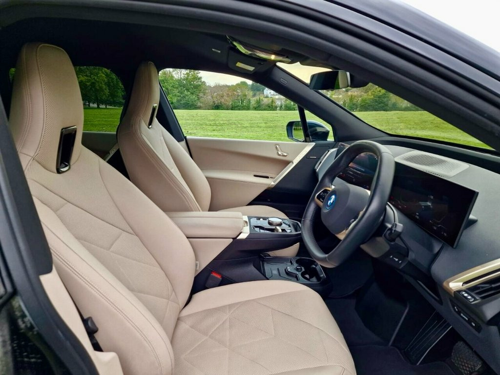 This 2022 BMW iX 40 M Sport offers an exceptional blend of electric performance and premium features. As a four wheel drive electric vehicle, it boasts a substantial 77 kWh battery, providing a maximum range of 257 miles when new. Charging is convenient, with a full charge taking approximately 10 hours and 45 minutes on a 7kW home charger, and a rapid 34 minutes to reach 80% capacity at a public charging station. This versatile SUV also features a towing weight of 2500 kg, making it suitable for a variety of needs. The iX 40 M Sport is equipped with notable features designed to enhance your driving experience. These include a towbar, the advanced BMW Live Cockpit Professional with Head Up Display, and the comprehensive Driving Assistant Professional package with adaptive cruise control. Comfort is assured with heated front seats, and visibility is excellent thanks to the LED headlights. Performance is a key highlight, with an impressive 0-60mph acceleration time of just 6.1 seconds, demonstrating its superior responsiveness compared to other vehicles in its class. 12V Power Socket - Centre Console, 12V Power Socket - Luggage Compartment, 21in Allow Wheels - Bi-Colour Aero - 101, ABS - Anti Lock Braking System, AC Charging up to 11kW, Active Protection, Air Conditioning - Automatic with Four Z, Airbags - Driver, Airbags - Driver and Front Passenger Sid, Airbags - Head - Front and Rear, Airbags - Passenger, Alarm System, Ambient Lighting, Armrest - Rear Centre, Attentiveness Assistant, Black Sapphire, BMW Connected Package Professional, BMW ConnectedDrive Online Services, BMW Emblem on Engine Compartment Lid and, BMW Emergency Call, BMW Iconic Sounds - Electric, BMW ID, BMW Live Cockpit Plus, BMW Live Cockpit Professional with Head-, BMW Natural Interac