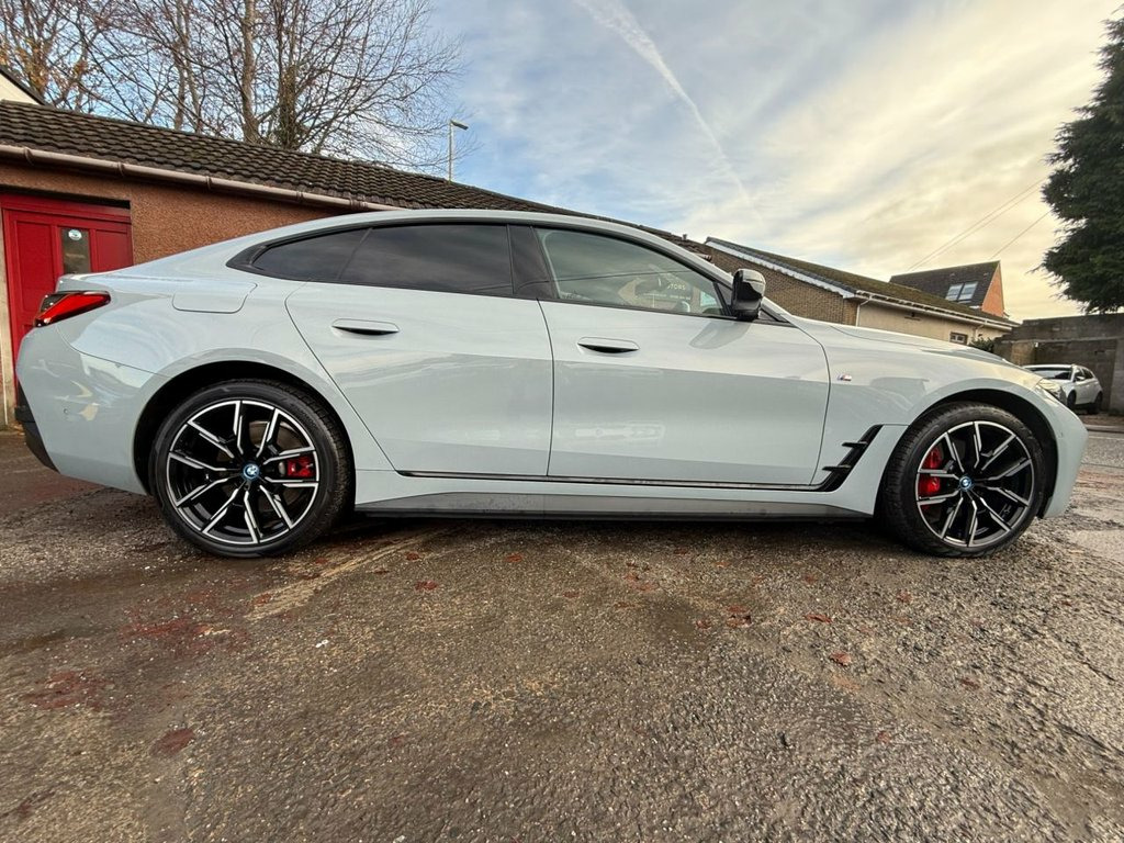 This 2022 BMW i4 40 M Sport is a superb example, having had only one owner since new. As an electric vehicle, it offers a smooth and quiet driving experience, complemented by its M Sport trim and striking 19in M Light Y-Spoke Style 859 M Bicolour alloy wheels with mixed tyres. You'll also benefit from LED headlights for clear visibility, a convenient storage area for wireless phone charging, and heated front seats for added comfort. The BMW Live Cockpit Plus, including Bluetooth connectivity, keeps you connected and informed on every journey. The i4 40 M Sport boasts an impressive battery maximum range of up to 351 miles, indicating its capability for longer trips. Charging is flexible, taking approximately 12 hours and 30 minutes at home using a 7kW charger, or a rapid 34 minutes from empty to 80% at a public charging station. This model also features a generous boot space, making it practical for everyday use and weekend getaways. Its performance is equally noteworthy, with an acceleration of 0-60mph in just 5.6 seconds, demonstrating its dynamic driving potential. This car will be serviced at BMW and come with a 6 month RAC warranty on the car, 1 year MOT and BMW battery warranty until 2030 or 100,000 miles whichever comes first. 12V Power Socket - Front, 12V Power Socket - Luggage Compartment, 18in Alloy Wheels - M Aerodynamic 858 M , 2x USB Type C in Front Centre Console, 2x USB Type C in Rear Centre Console, Active Guard Plus, Active Protection, Air Conditioning - Automatic, Airbags, Alarm System, Ambient Lighting, Armrest in the Centre Console with Stora, Attentiveness Assistant, Automatic Operation of Tailgate, Automatic Start-Stop Button, Automatically Dimming Rear View Mirror, BMW Badge on Bonnet and Tailgate with Bl, BMW Connected Package Professional, BMW ConnectedDrive Online Services, BMW Emergency Call, BMW ID, BMW Iconic Sounds - Electric, BMW Live Cockpit Plus, BMW Radiator Grille Partially with Blue ,