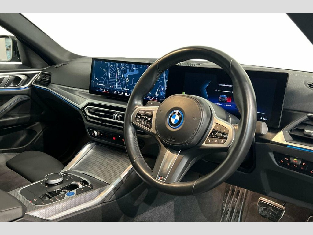 This 2023 BMW i4 40 M Sport is a superb example, having had only one owner since new and boasting an MOT valid until December 2026. As an electric vehicle, it offers a substantial battery capacity of 84 kWh, providing a maximum range of 352 miles when new. This impressive electric BMW also features the M Sport trim, enhancing its sporty appeal. Inside, you'll find the BMW Live Cockpit Plus with Bluetooth connectivity, automatic air conditioning with climate control, and heated front seats for added comfort. Parking is made easier with a reversing assist camera and the comprehensive Parking Assistant system. The highlights of this BMW i4 truly set it apart. Its electric powertrain delivers exhilarating performance, achieving 0 to 60 mph in just 5.6 seconds, demonstrating a responsiveness that surpasses many comparable vehicles. Furthermore, the generous boot space offers practicality for everyday use and longer journeys. Charging is convenient, with a full charge at home taking approximately 12 hours and 30 minutes using a 7kW charger, while rapid public charging can take you from empty to 80% in as little as 34 minutes, ensuring you can stay on the move with minimal downtime. 12V Power Socket - Front, 12V Power Socket - Luggage Compartment, 18in Alloy Wheels - M Aerodynamic 858 M , 2x USB Type C in Front Centre Console, 2x USB Type C in Rear Centre Console, Active Guard Plus, Active Protection, Air Conditioning - Automatic, Airbags, Alarm System, Alcantara-Sensatec - Black - Contrasting, Ambient Lighting, Armrest - Centre Console with Storage Co, Armrest - Front and Rear Integrated into, Attentiveness Assistant, Automatic Operation of Tailgate, Automatic Start-Stop Button, Automatically Dimming Rear View Mirror, Black Sapphire, BMW Badge on Bonnet and Tailgate with Bl, BMW Connected Package Professional, BMW ConnectedDrive Online Services, BMW Emergency Call, BMW