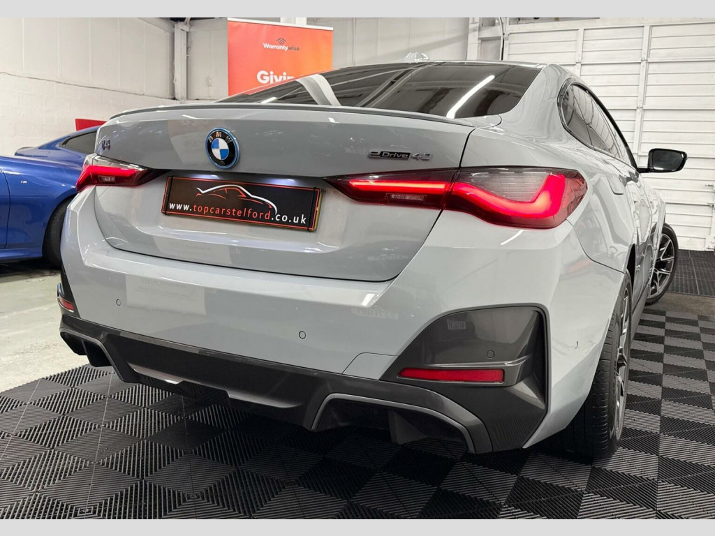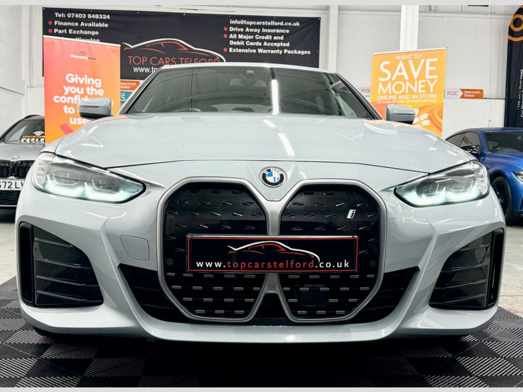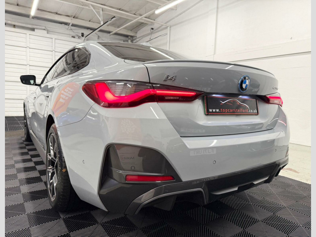 1 OWNER FROM NEW , FULL SERVICE HISTORY , 2 KEYS, G26 EDITION , PRE DELIVERY INSPECTION PRIOR TO SALE , NEW VEHICLES FIRST MOT ON SALE , NATIONWIDE WARRANTY , NATIONWIDE DELIVERY , £0 DEPOSIT LOW-RATE FINANCE FROM AS LITTLE AS 7.9%APR SUBJECT TO APPROVAL VERY COMPETITIVE RATES HP/PCP AVAILABLE , FCA APPROVED DEALER , GERMAN SPECIALISTS , M-PERFORMANCE BODYSTYLING&DETAILING SPECIALISTS, PLEASE ENQUIRE FOR EXTRAS THAT CAN BE ADDED TO YOUR VEHICLE TO ENHANCE THE LOOK , TOP CARS TELFORD (Delivering Dreams on Drives), Family run business for over 15 Years , , , This 2022 BMW i4 40 M Sport is a superb example, having had only one owner since new. As an electric vehicle, it offers a smooth and quiet driving experience, complemented by the sporty M Sport trim. Inside, youll find comfortable front heated seats, automatic air conditioning for perfect cabin temperature, and the advanced BMW Live Cockpit Plus with Bluetooth connectivity. For convenience and safety, it includes a reversing assist camera and the comprehensive Parking Assistant system. The i4 40 M Sport boasts an impressive battery maximum range of 351 miles, indicating its capability for longer journeys. Its electric powertrain delivers brisk acceleration, reaching 0-62mph in just 5.7 seconds, a performance that sets it apart from many other vehicles in its class. Furthermore, it offers generous boot space for all your needs. Charging is also efficient, with a full charge at home taking approximately 12 hours and 30 minutes, while rapid public charging can take you from empty to 80% in as little as 34 minutes.