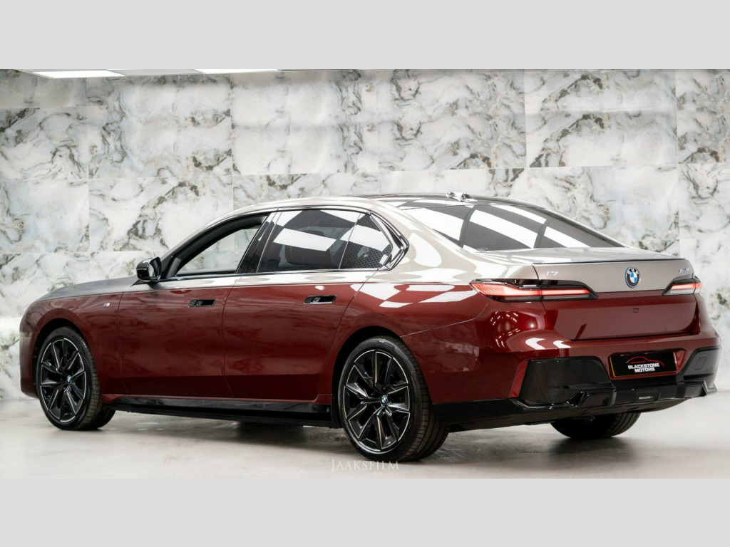 A RARE opportunity to own this BMW i7 finished in Individual Two-Tone Oxide Grey Metallic paint with Aventurine Red. It benefits from a FULL BMW dealer service history and has recently been serviced in September 2025. It is also still under BMW manufacturers warranty until September 2026.The high specification of this BMW includes:- Ultimate Package- BMW Theatre Screen- Executive Drive Pro- Iconic Glow Crystal Headlights- 21in Alloy Wheels - 909 M Aero- Driving Assistant Professional- Automatic Front and Rear Doors- Headlining - Anthracite Alcantara- Glass Application - Crafted Clarity for Interior Elements- Travel and Comfort System- M Sport Brakes with Black Calipers- BMW Individual Merino Leather - Black- Technology Plus Pack- Skylounge Pack- Rear Comfort Pack- M Sport Pro Pack- Front Comfort Pack- Executive Pack- Parking Assistant Pro- Sun Protection Glass- Flexible Charger8.9% Low rate finance packages available, HP available, LP available, ****Apply for finance on our website for an instant decision****, 5 days driveway insurance available.Take advantage of our full bespoke in house detailing package to suit your needs, inclusive of Paint Protection Film (XPEL), Paint Correction, Nano Ceramic Coating, Trackers, Immobilisers and Bodykits. All of our work can be found on our social media Instagram blackstonemotorsuk & limitlessdetailinguk timate package, bmw theatre screen, executive drive pro, iconic glow crystal headlights, 21in alloy wheels - 909 m aero, driving assistant professional, automatic front and rear doors, headlining - anthracite alcantara, glass application - crafted clarity for interior elements, travel and comfort system, m sport brakes with black calipers, bmw individual merino leather - black, technology plus pack, skylounge pack, rear comfort pack, m sport pro pack, front comfort pack, executive pack, parking assistant pro, sun protection glass, flexible charger, 12v power socket - front x2, 12v power socket - rear x2, 20in alloy wheels - 907 m aerodynamic, abs - anti lock braking system including cbc - cornering brake control, ac charging professional, acoustic protection for pedestrians, active guard, active protection, adaptive 2-axle air suspension, adaptive led headlights, air conditioning - automatic with four zone control, airbags - central - drivers seat, airbags - front - steering wheel rim-driver and front passenger, airbags - head - front and rear, airbags - side - driver and passenger, alarm system, ambient light, attentiveness assistant, automatic tailgate, bmw id, bmw iconicsounds electric, bmw individual interior world, bmw interaction bar, bmw live cockpit professional, bmw natural interaction, bmw touch command, bmw idrive, bmw xdrive, badge - front and rear, bowers and wilkins surround sound system, brake assist, brake system, charging cable - mode 2 for home socket, climate comfort windscreen, closing system with central locking, comfort access system, condition based service, connected package professional, connecteddrive services, crash sensor, cruise control with braking function, dab radio, dsc - dynamic stability control - stabilises the vehicle in extreme situations - controls traction, door handles flush with the door surface, driving assistant, driving assistant plus preparation, driving control panel, electric front seat adjustment with memory, electric windows - front and rear, entry sills, expanded exterior mirror package, exterior lighting, exterior trim - high-gloss shadowline, flat tyre monitor - indicates tyre pressure loss by measuring the wheel speeds, floor mats in velour, footrest and pedals in black plastic, front armrest with integrated control panel, front centre console decorative trim, front-rear bumper panel, grab handles - in roof lining x4, headliner - cloth, high-beam assistant, iconic glow illuminated kidney grille, instrument panel joint diffuser - black, interior lighting, interior mirror, interior trim - fine wood oak mirror finish, legal emergency call, locking wheel bolts, locking of doors after driving off, luggage compartment, m leather steering wheel, m sport brakes with dark blue calipers, m sport exterior styling, m sport interior styling, m sport package, multifunctional front seats, my modes, number plate panel, pc ibrake, panoramic glass sunroof, parking assistant plus, rear seats, roof aerial housing - black, seat heating - front and rear, seat heating for driver and front passenger, soft close doors, speed limiter, speed-dependent variable power steering, standard charge cable - 5 metres, stationary cooling, storage compartment - rear centre console, storage options, sun visors with illuminated vanity mirrors and insert tab for driver and passenger, teleservices, through-loading system, trailer stabilisation logic, tyre pressure sensors, tyre repair kit, usb connection - 2x type c for charging only - rear centre armrest, usb connection - 2x type c for charging and data - front centre armrest, vehicle key, visibility functions, warning triangle and first aid kit, wireless charging tray