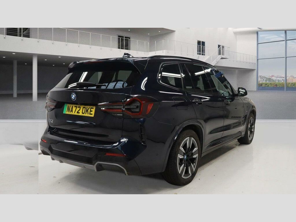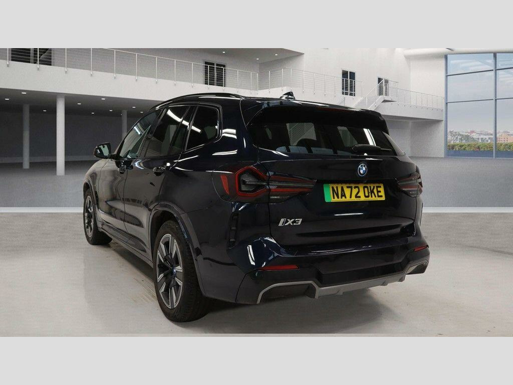 This 2022 BMW iX3 M Sport offers an exceptional ownership history, having been meticulously maintained by a single owner with a full service history, most recently serviced on 31st October 2025 at 61,961 miles, and comes with a clear vehicle history check. As an electric vehicle, it boasts an impressive battery total capacity of 80 kWh, providing a maximum range of 285 miles when new. This M Sport model is equipped with a range of desirable features, including Parking Assistant with rear camera and sensors, heated seats for the driver and front passenger, and Driving Assistant Professional with adaptive cruise control. Further enhancing the driving experience are the panoramic glass sunroof with opening function and adaptive LED headlights.The BMW iX3 M Sport stands out with its substantial 285 mile maximum range from new, indicating excellent efficiency for an electric vehicle of its class. Its full charging time at home using a 7kW charger is approximately 11 hours and 20 minutes, while rapid public charging can achieve an 80% charge from empty in just 32 minutes, offering convenience for longer journeys. The vehicle also benefits from a large boot space, providing ample practicality for everyday needs and travel. A 12 month MOT will be provided on purchase, and the vehicle comes with a 3 month warranty for your peace of mind.12-24 Months AA Warranty Upgrade Available. All Cars, Vans Come with 12 Months Mot Service and Safety checked.. 19in Alloy Wheels - Aerodynamic - Jet Black with Bi-Colour Inserts, Active Protection, Adaptive LED Headlights, Adaptive Suspension, Air Breathers with BMW i Logo, Air Conditioning - Automatic, Airbags - Driver, Airbags - Front Side for Driver and Passenger, Airbags - Head - Front and Rear, Airbags - Passenger, Ambient Lighting, Attentiveness Assistant, BMW Connected Package Professional, BMW ConnectedDrive Online Services, BMW Legal Emergency Call, BMW Live Cockpit Professional, BMW TeleServices, Blue Ring Around BMW Logos, Brake Energy Regeneration, Brake Pad Wear Indicator, Bumper System Front and Rear - Replaceable Deformation Elements for Impacts Up to 15kmh, Central Locking Switch for All Doors - Fuel Filler Cap - Luggage Compartment, Charging Cable - Mode 3 - 5m, Check Control Warning System, Child Seat ISOFIX Attachment - Rear, Childproof Locking System - Rear Doors, Condition Based Service, Crash Sensor, Cruise Control with Brake and Speed Limiting Function, DSC - Dynamic Stability Control Plus, Deletion Lumbar Support-Width Adjustment Passenger Side, Door Handles - Body Colour, Driving Assistant Professional, Electric Memory Seats, Electric Windows - Front, Enhanced Bluetooth with Wireless Charging, Extended Storage, Exterior Mirrors - Electrically Folding with Anti Dazzle, Exterior Trim - High-Gloss Shadowline, Front Bumper - M Sport with iX3 Specific Design with Blue Contents, Front and Rear Parking Sensors, Galvanic Embellisher for Controls, Headlining - M Anthracite, Headrests - All Seats, Heat Protection Glazing with Green Tint, Heated Seats for Driver and Front Passenger, Heated Steering Wheel, High-Beam Assistant, Instrument Panel in Sensatec, Integrated Owners Handbook, Interior Rear-View Mirror with Automatic Anti-Dazzle Function, Interior Trim - Aluminium Rhombicle with Pearl Chrome, Luggage Compartment Lights, M Aerodynamic Exterior, M Badging on Front Side - Left and Right, M Sport Leather Steering Wheel, M Sport Package, Model Logo - Tailgate - Left, Model Specific Design Elements, Panoramic Glass Sunroof, Parking Assistant, Personal Profile, Power Socket - 12V, Power Steering - Electric, Preparation for Adaptive M Suspension, Rear Centre Armrest including Two Cupholders, Rear Diffuser in Blue, Rear Window Wiper, Reversing Assist Camera, Roof Rails - Black, Roof Rails - Shadow Line High Gloss - Black, Safety Battery - Terminal Clamp, Seat Backrest Adjustment for Rear Seats, Seat Backrest with Width Adjustment, Seats - Front Sports, Side Impact Protection, Split Folding Rear Seat, Sun Protection Glass, Sun Visors with Vanity Mirrors and Ticket Holder, TPMS - Tyre Pressure Monitoring System, Third Brake Light Using LED Technology, Three-Point Seat Belts - All Seats, Two Tone Horn, Tyre Repair Kit, Visible VIN, Warning Triangle, Welcome Lighting, eDrive Exterior Sound, Vernasca Leather - Black with Blue Contrast Stitching. Full service history